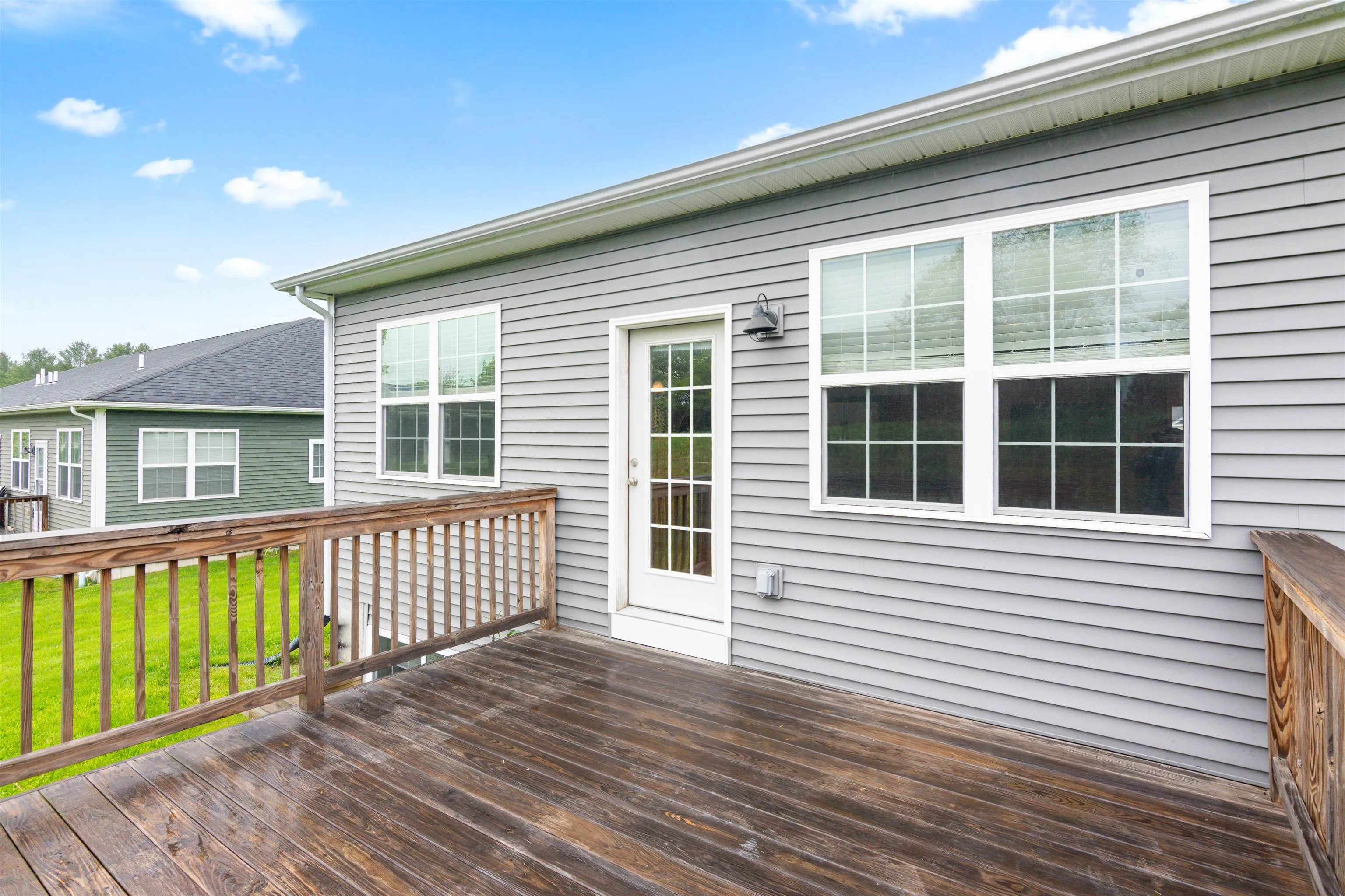 +"PublicRemarks": "Nestled in the heart of Fairfax, this charming 2-bed, 2.5-bath one-level condo offers comfort and convenience. Attractive curb appeal gives a warm first impression, leading to a spacious, light-filled open-concept living area with beautiful hardwood floors. Just off the main living space, a private back deck offers the perfect spot to unwind or entertain on warm Vermont days. The updated eat-in kitchen features granite countertops, and stainless steel appliances, making it as functional as it is stylish. Down the main hallway, discover a large primary bedroom with an ensuite 3/4 bathroom complete with a step-in shower and granite vanity. A second well-sized bedroom and a full bath offer additional space and comfort. A convenient half bath, laundry area, and access to the attached two-bay garage complete the main level. Downstairs, a full unfinished basement with an egress window provides exciting potential for additional finished living space or ample storage. Outdoor enthusiasts will love the exclusive access to 26 acres of common land just for Paige Estates residents, including scenic walking trails that lead to the peaceful Lamoille River. The HOA also takes care of plowing, landscaping, and exterior maintenance, and is pet-friendly! Located just minutes from local schools, and a short 20-minute drive to Milton or Essex for shopping, dining, and recreation, this home offers all the charm of small-town living while still being convenient!"