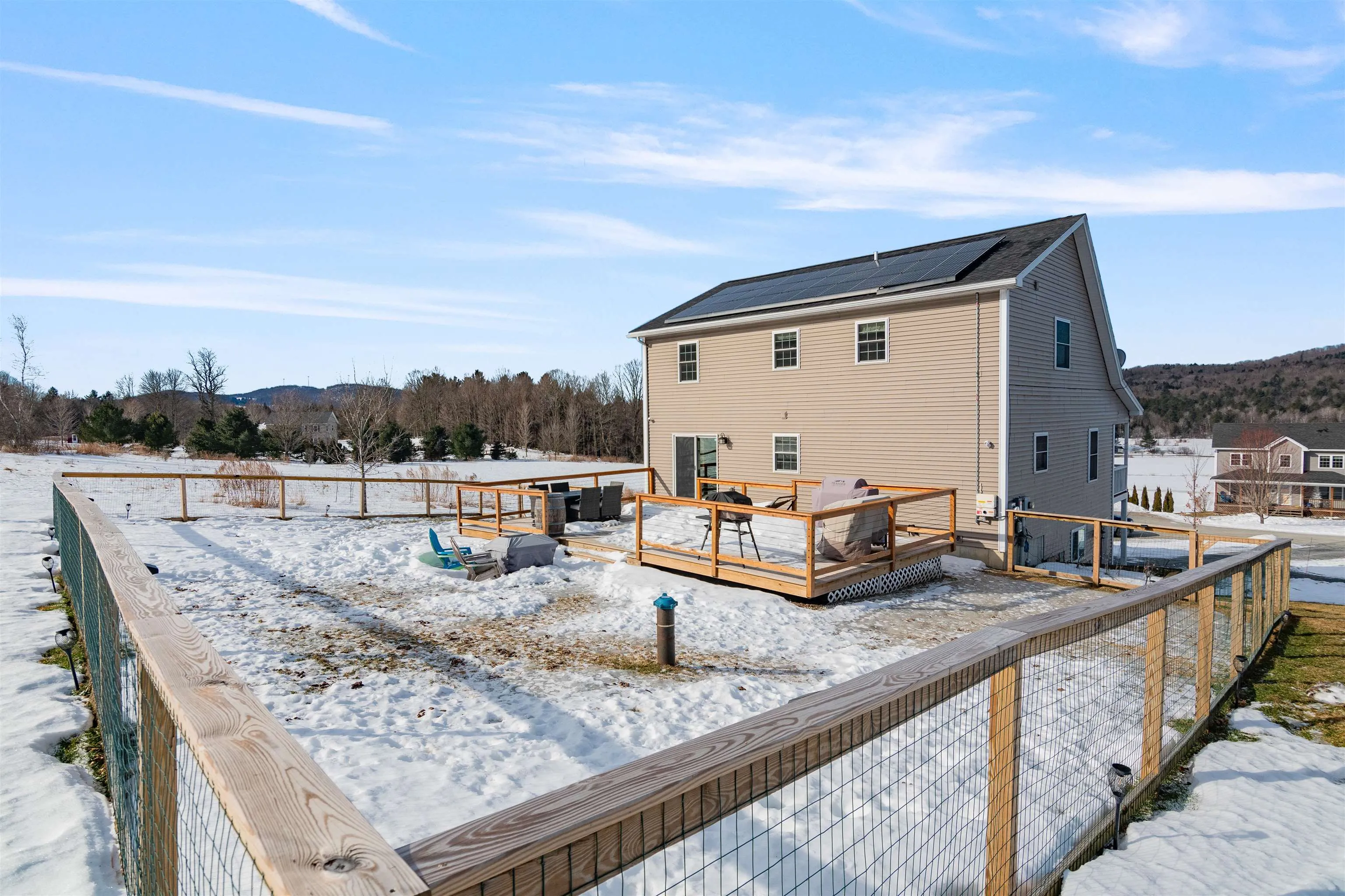 +"PublicRemarks": "Welcome to this wonderful property, situated on a lot that offers birds eye views of pastoral land and mountains, making you feel secluded in nature. The 13 acres of common land offers trails to explore! Heading inside... The open kitchen/dining area is perfect for entertaining. The kitchen has a warm tone subway tile backsplash, solid hickory cabinets, and tile flooring that transitions to hardwood in the dining area. The living room is open to a bonus room with slider door to the new expansive back deck and fully enclosed back yard. Upstairs is a spacious primary ensuite with nooks for sitting areas, 2 additional bedrooms, and full guest bath. For additional space, head down to the finished lower level. You can enter this directly from the garage or interior stairs. The property is at the end of a private cul-de-sac with sunsets to be savored from your covered porch. The location is close to schools, hospital, I89, and downtown St. Albans. Showings to begin on Fri, March 21st."