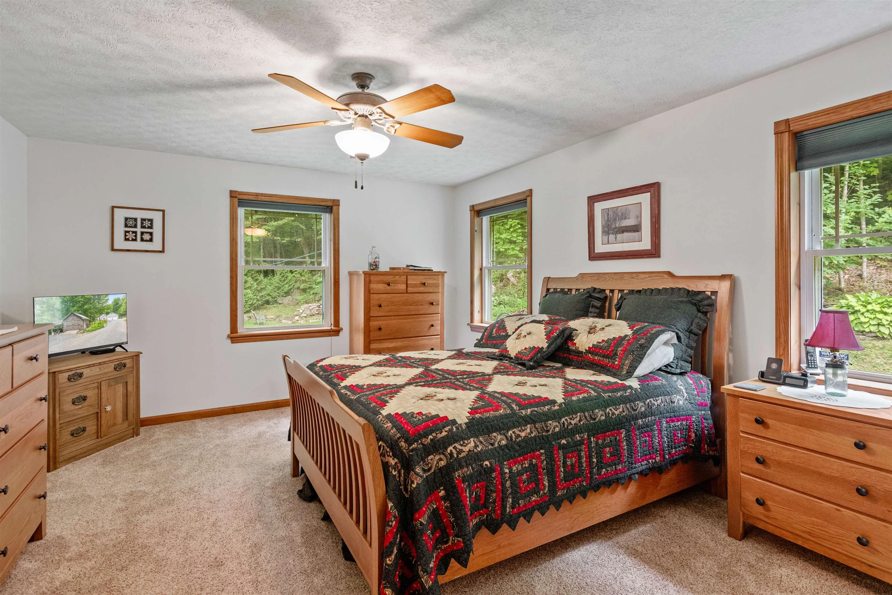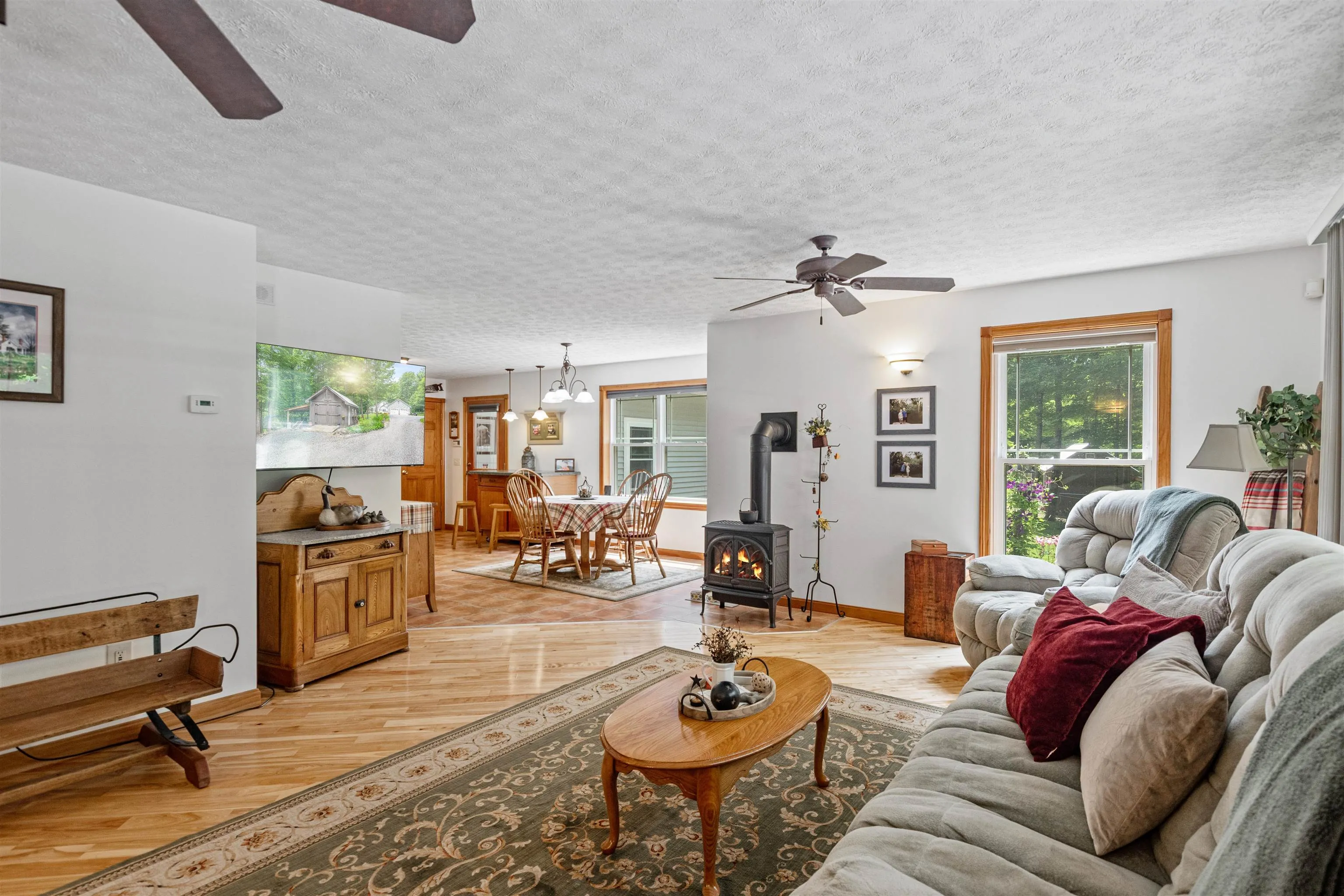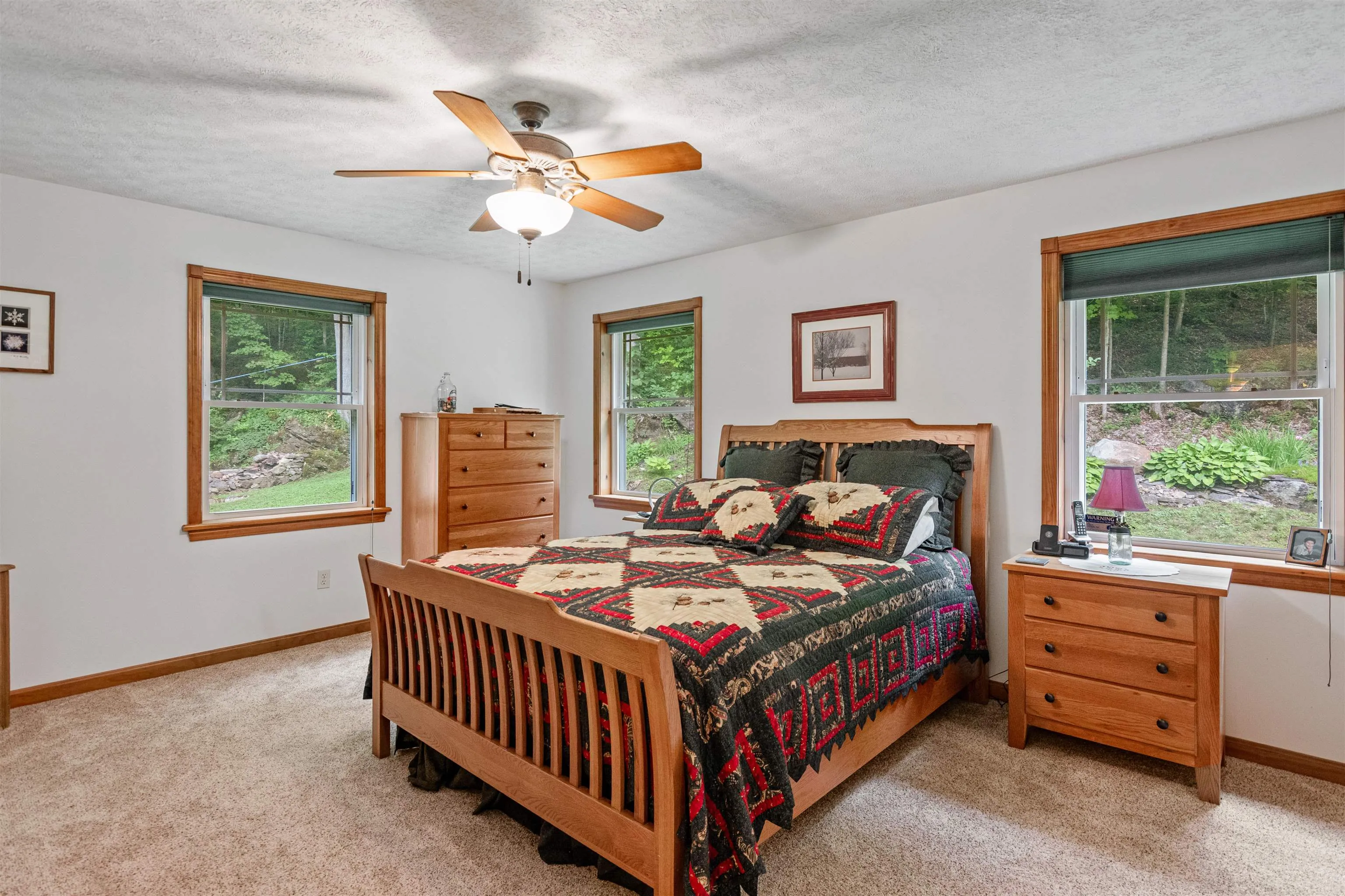 +"PublicRemarks": "Tucked away at the end of a peaceful dead-end road, this open concept, meticulously maintained, ranch on 6.42 acres offers the perfect balance of private living with quick access to amenities. Located in Fairfax, you’ll enjoy the benefits of the countryside while being just 4 miles from downtown St. Albans & I-89, making commuting to Burlington or visiting Montreal a breeze. The kitchen features a breakfast bar with pendant lighting, ample cabinetry, and a dedicated dining area that flows seamlessly into the sunlit living room. Large glass windows bring in abundant natural light from the generous front deck, perfect for indoor-outdoor living throughout Vermont’s beautiful seasons. Stay warm with the gas stove in the living room and the radiant floors throughout the first floor and basement. The primary suite includes its own private three-quarter bath and walk-in-closet, while two additional bedrooms share a large full bath that also doubles as a spacious laundry room. The full, unfinished basement offers a world of possibilities; finish it off to nearly double your living space! The attached, heated two-car garage provides additional storage and convenience. Outside, the property continues to impress with a beautifully landscaped lot including space for gardening. A nearby shed is perfectly designed for a small maple sugaring hobby, with 500+/- maple trees on the land. Don't miss your opportunity to call Fairfax home!"