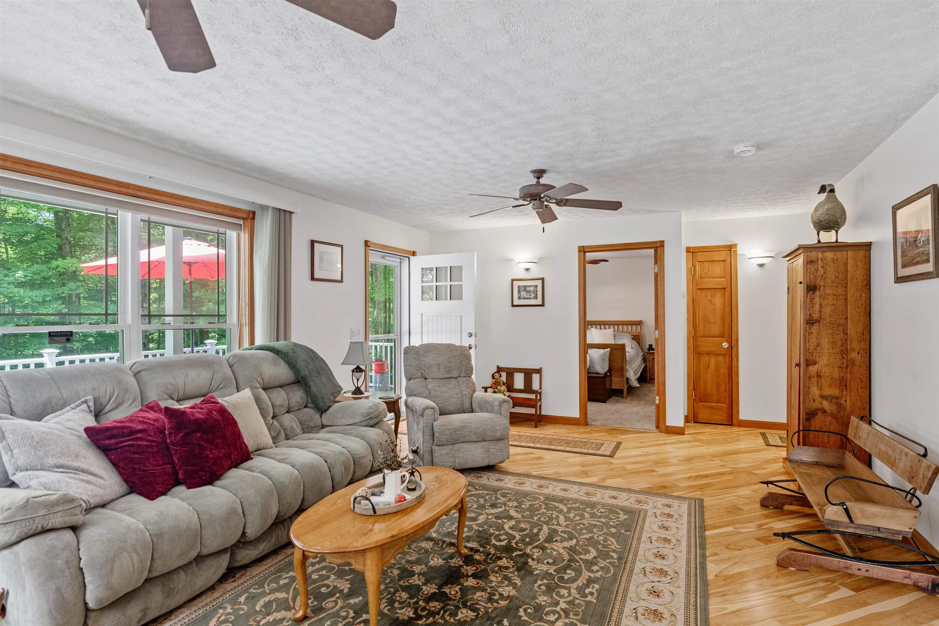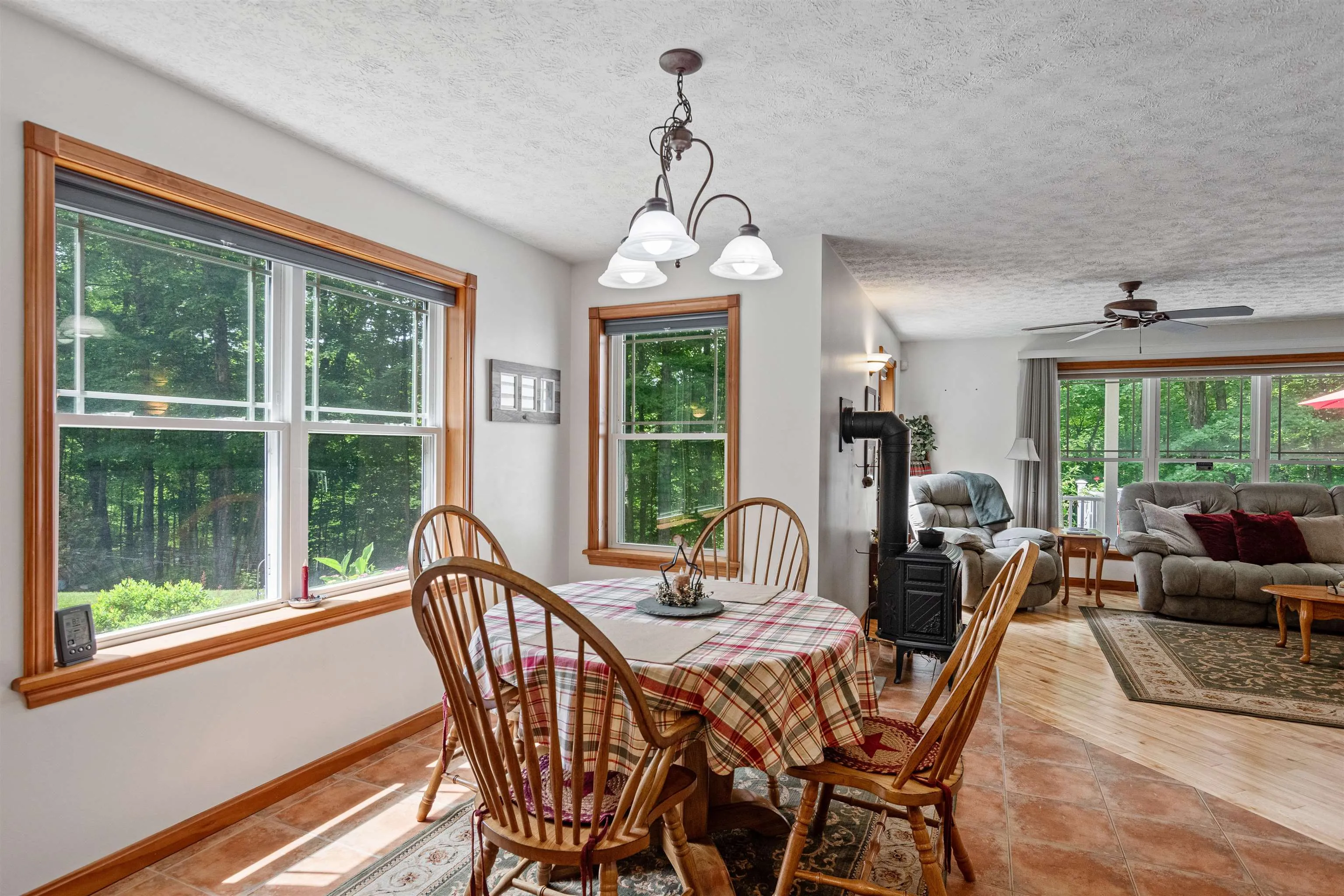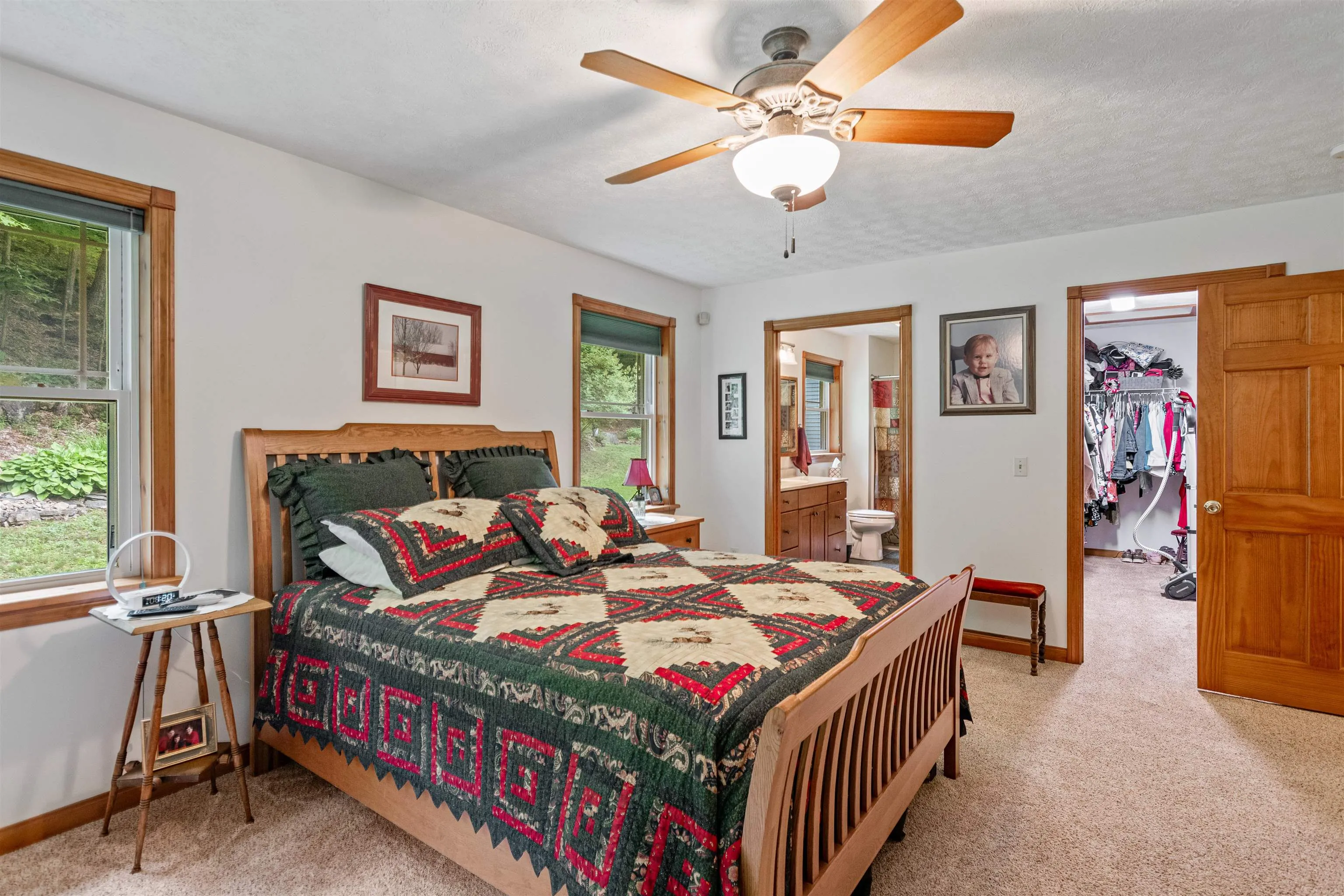 +"PublicRemarks": "Tucked away at the end of a peaceful dead-end road, this open concept, meticulously maintained, ranch on 6.42 acres offers the perfect balance of private living with quick access to amenities. Located in Fairfax, you’ll enjoy the benefits of the countryside while being just 4 miles from downtown St. Albans & I-89, making commuting to Burlington or visiting Montreal a breeze. The kitchen features a breakfast bar with pendant lighting, ample cabinetry, and a dedicated dining area that flows seamlessly into the sunlit living room. Large glass windows bring in abundant natural light from the generous front deck, perfect for indoor-outdoor living throughout Vermont’s beautiful seasons. Stay warm with the gas stove in the living room and the radiant floors throughout the first floor and basement. The primary suite includes its own private three-quarter bath and walk-in-closet, while two additional bedrooms share a large full bath that also doubles as a spacious laundry room. The full, unfinished basement offers a world of possibilities; finish it off to nearly double your living space! The attached, heated two-car garage provides additional storage and convenience. Outside, the property continues to impress with a beautifully landscaped lot including space for gardening. A nearby shed is perfectly designed for a small maple sugaring hobby, with 500+/- maple trees on the land. Don't miss your opportunity to call Fairfax home!"