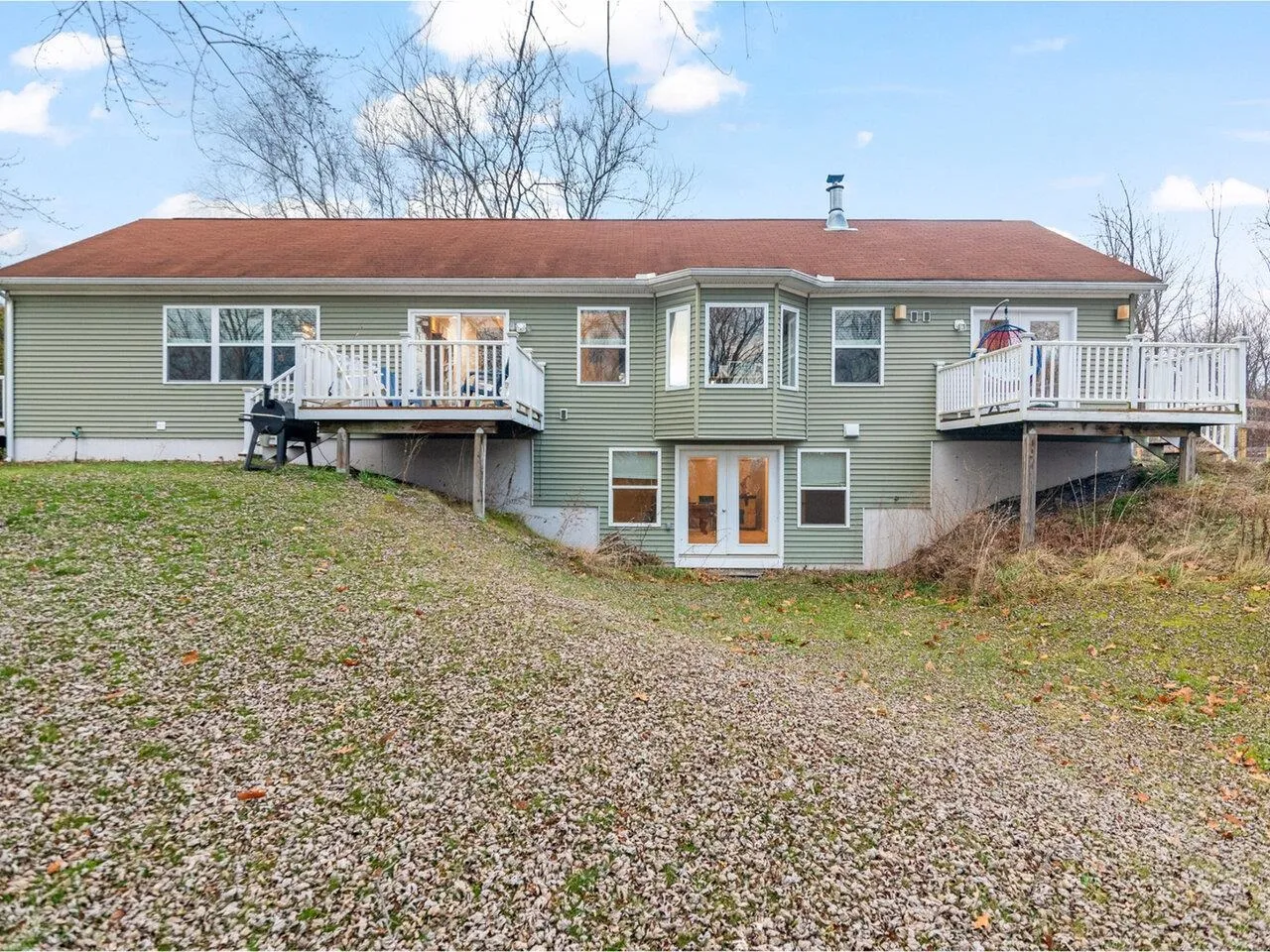 +"PublicRemarks": "Is the water calling you? Welcome to 1499 Sand Road, Ferrisburgh, Vermont where you will enjoy 240 feet of Otter Creek frontage and access to Lake Champlain from your backyard! This open concept ranch with four bedrooms and three baths feels extra spacious with vaulted ceilings and finished walkout basement. Enjoy the river view from one of the decks during nice weather, or from the large windows while feeling cozy next to the new pellet stove insert in a beautiful hearth. Three of the four bedrooms have an attached bathroom, one with a jetted tub, which makes this home perfect for hosting guests. The finished basement has a huge bonus room and an unfinished area currently being used as a home gym. A brand new 5-foot livestock fence has been installed to ensure your favorite animals safety outdoors. This fence is horse safe and perfect for large dogs. Two cattle gates are installed for convenience. A two-car garage is close to the home with a side door for easy access. The dock provides easy access to the river. Vergennes is close by and has much to offer as the smallest city in the USA! Restaurants, shopping, farmers markets, and the Vergennes Opera House within 3 miles. Burlington International Airport is a 45 minute drive. Come take a look!"