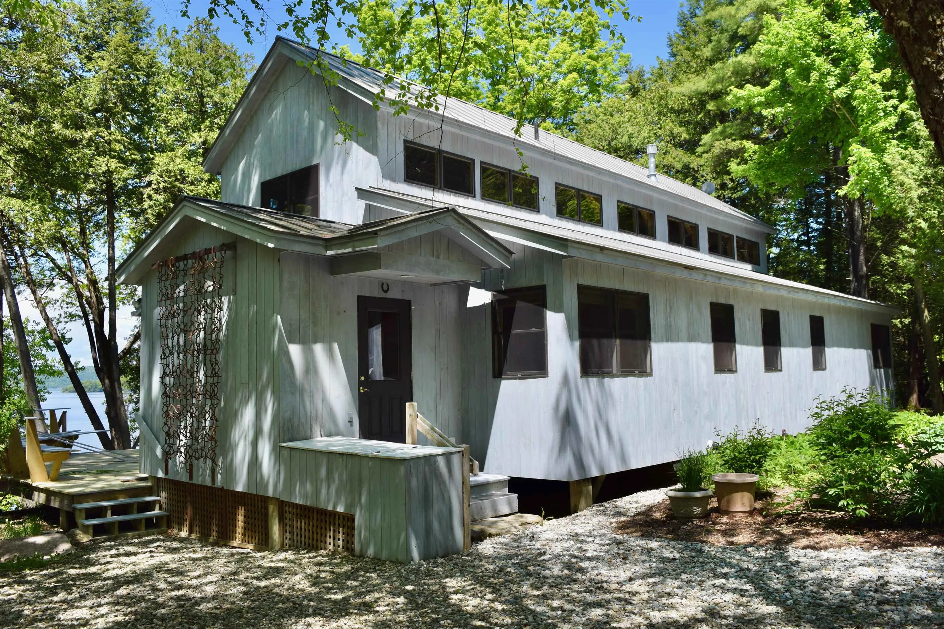 +"PublicRemarks": "This extraordinary lakefront estate with 260 feet of Lake Champlain shoreline embodies the joy of Vermont living with a rare blend of rustic artistry and timeless post and beam architecture. At its heart you will find a soaring timber-framed great room with expansive windows that frame the beauty of Lake Champlin and the high peaks of the Adirondacks beyond. The open-concept layout flows from the kitchen to a sunlit dining area and cozy living spaces. Step outside to the covered porches, including a large screened area to enjoy al fresco dining, games, reading, and relaxation. Designed as a true family compound, this property has multiple outbuildings that create a private lakeside retreat for generations to gather, connect, and make lasting memories. The main house, the guest house, the large barn with attached office space and the 4-car garage present plenty of space and endless possibilities. The nearby vibrant Little City of Vergennes, the center of our community, is just 10 minutes away for shopping, dining, and the weekly farmer’s market. Just up the road, the beautiful Basin Harbor Club offers golf, restaurants, and weekly summer concerts. There are limitless local options for hiking, biking, or boating. Whether you’re seeking quiet reflection or lively summer gatherings and activities, you will find it all here. Available fully furnished and move-in ready just in time for summer at the lake! Make your appointment to see this special property today!"