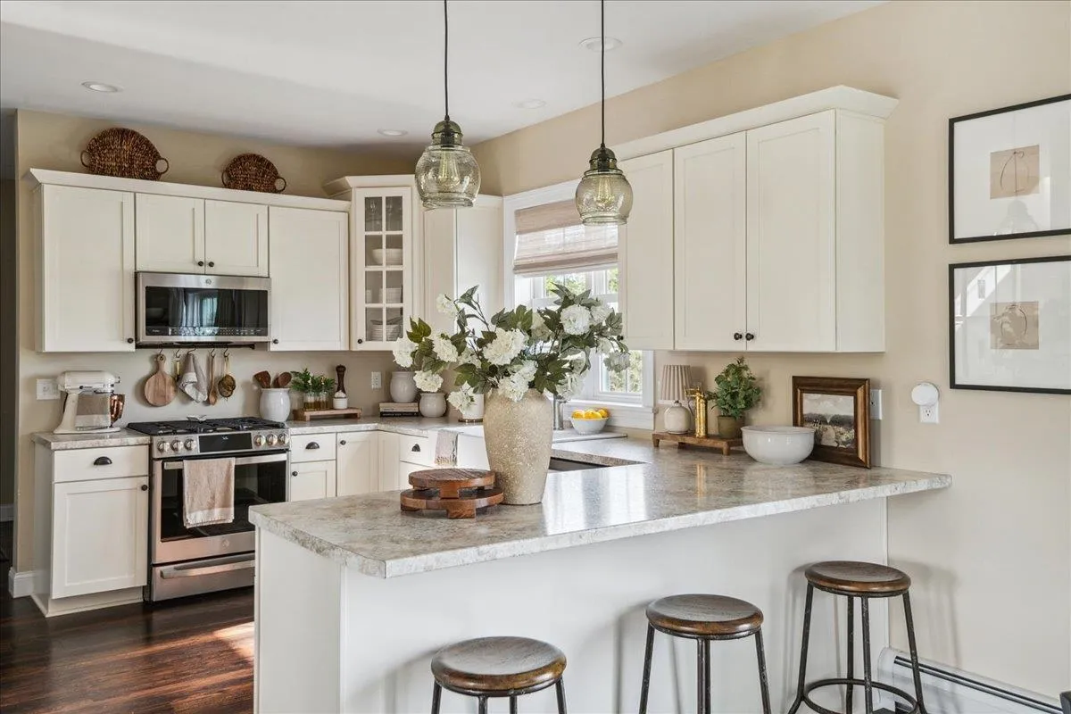 +"Remarks-Public": "Well maintained 2 bed, 1.5 bath Colchester townhome with private deck, full basement, and separate enclosed carport. Enjoy easy, low-maintenance living just minutes to Burlington, Lake Champlain, the bike path, local schools and so much more. The main level features a bright and spacious living room with large windows and an easy flow into a dedicated dining area—ideal for both everyday living and entertaining. The kitchen offers a breakfast bar, ample space with laminate flooring, gas range, refrigerator, dishwasher, microwave, and pantry storage. Sliding doors lead directly to a private rear deck with a natural gas hookup—perfect for grilling and outdoor relaxation. A tiled entryway with coat closet and a convenient half bath complete the first floor. Upstairs, you’ll find two generously sized bedrooms along with a full bath featuring tile flooring. Mini-split systems provide efficient heating and cooling in both bedrooms and the living area, while a vaulted stairway ceiling adds an open and airy feel. The full basement offers excellent storage space and includes a washer and dryer, along with room for a workshop, home gym, or additional flex space. Additional features include some newer windows, a private deck, and a detached carport garage unit for covered parking and extra storage. Conveniently located near shopping, dining, and local amenities with an easy commute to Burlington, this home offers a great opportunity for comfortable, affordable living in Colchester!"