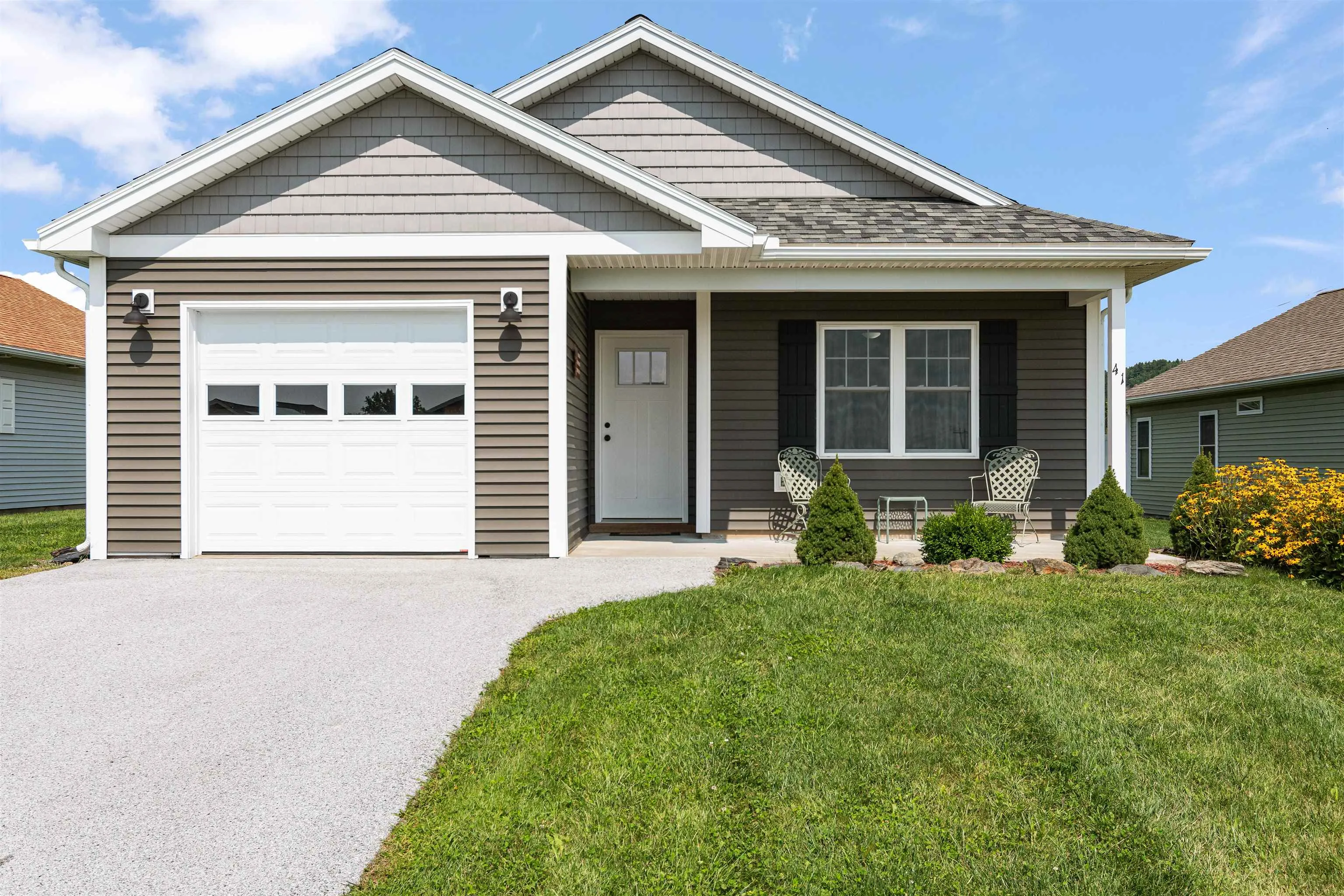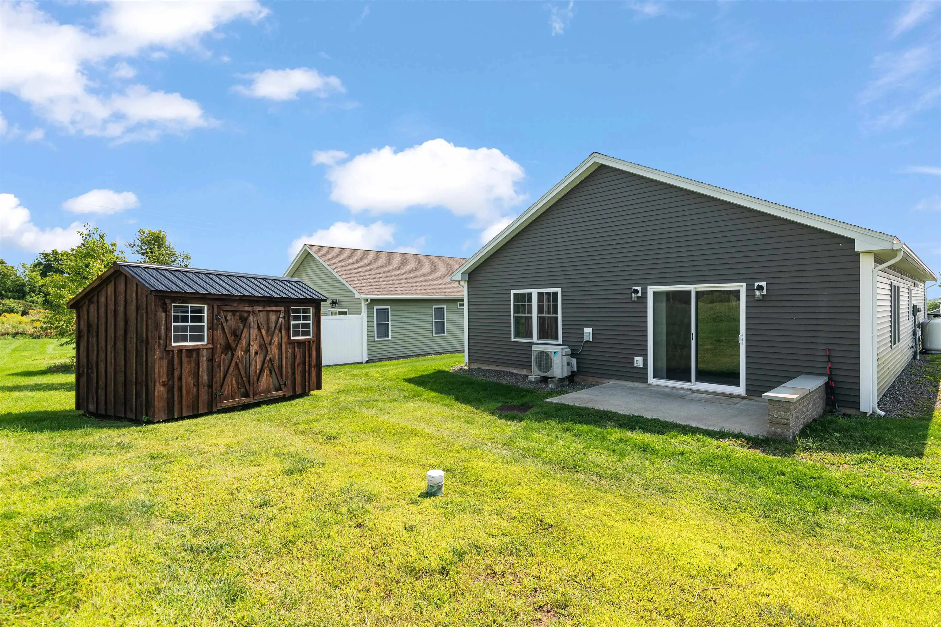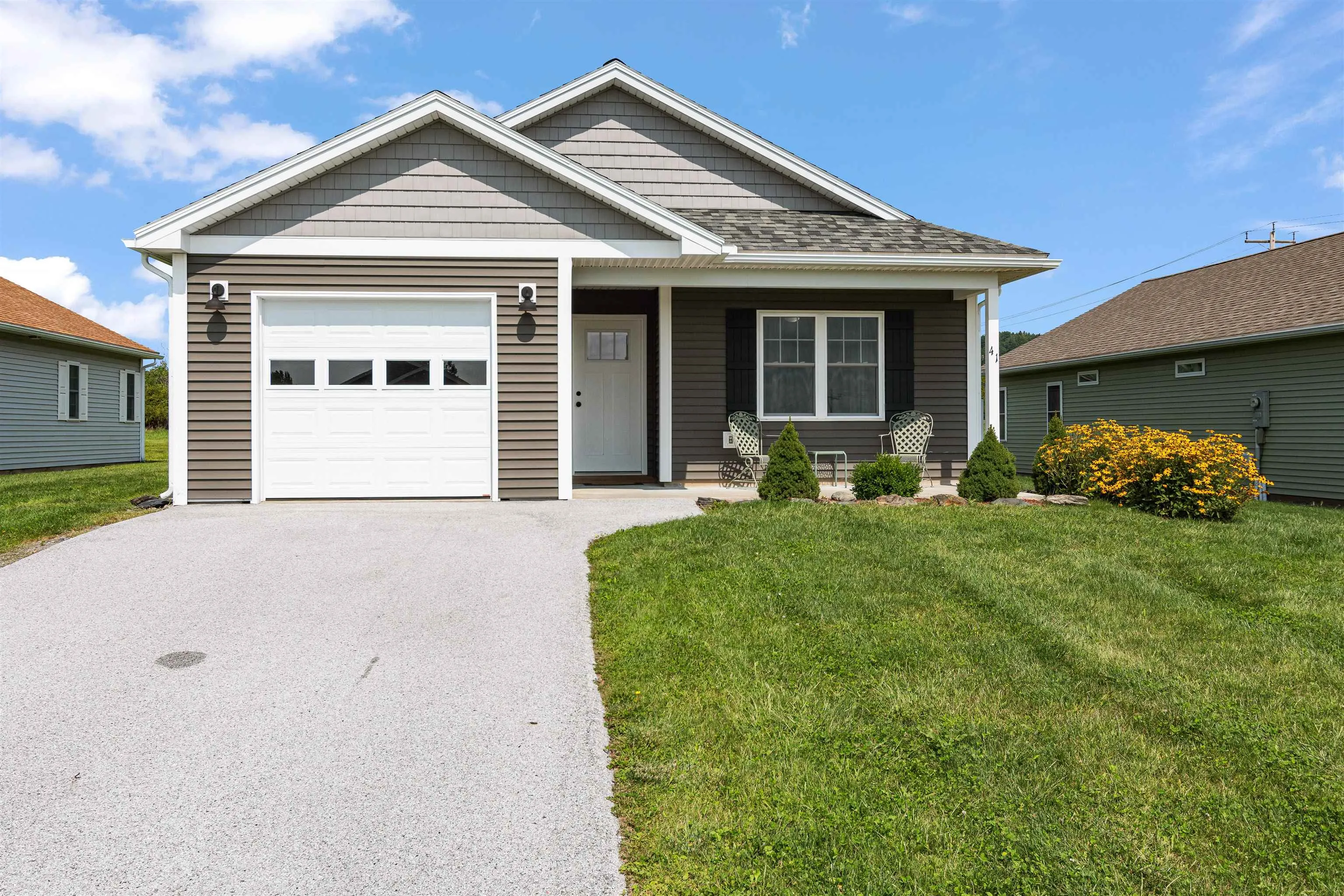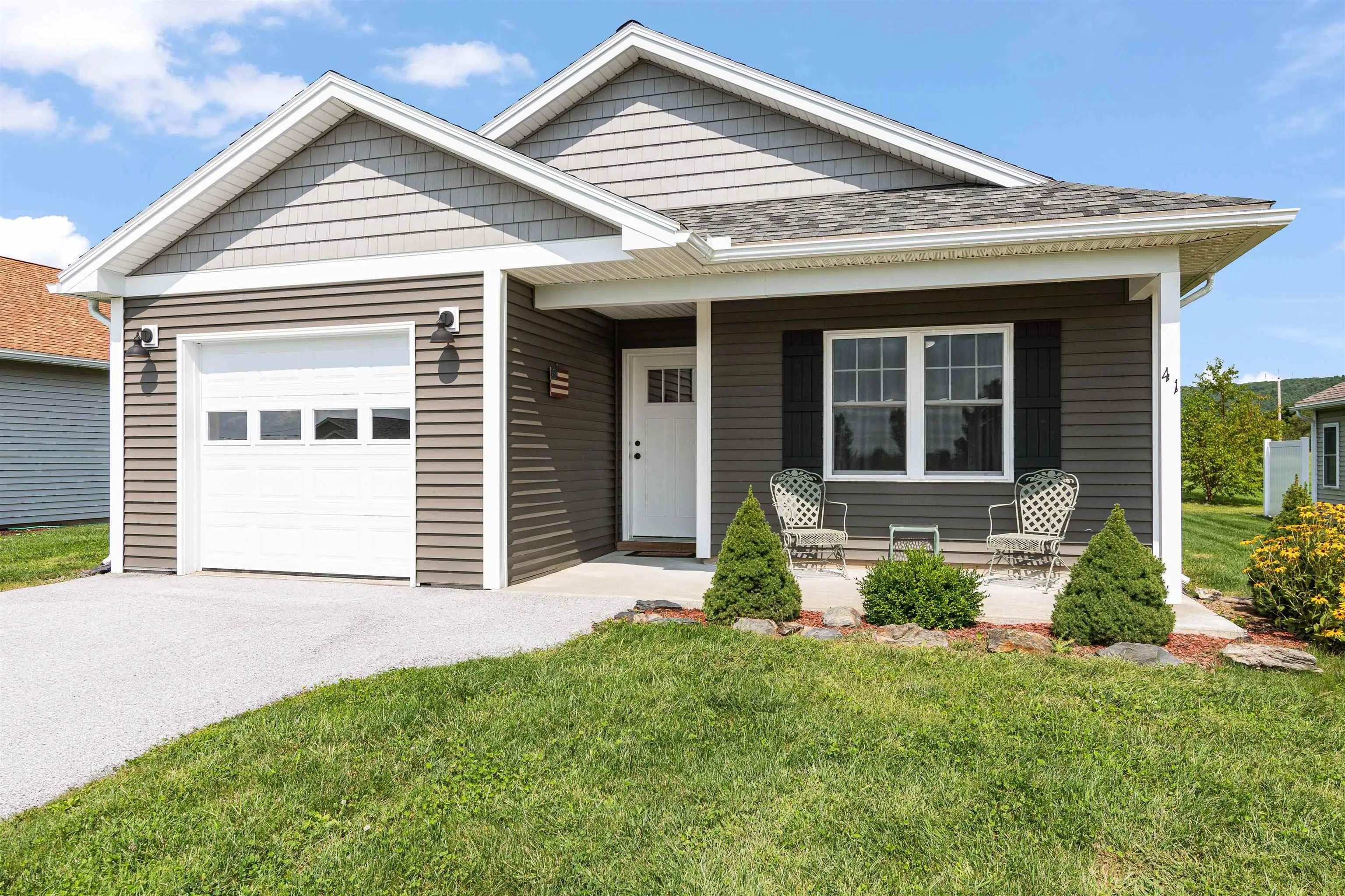 +"PublicRemarks": "Check out this newly-built single family home located on Dewey Drive in Georgia - the perfect place to call home in a highly sought after 55+ community. This home is one level, with radiant floor heat, supplemented by energy efficient mini-split units that offer heating and cooling for the hot summer months. Tastefully appointed – your new 2 bedroom 2 bathroom home features a stunning primary suite with large closets and en-suite bathroom. The hand stained sliding barn doors and the custom country kitchen cabinetry make for a lovely primitive look. The back slider off from the living room walks out to a level patio area great for grilling or enjoying the evening sunsets. An attached one car garage walks into the mudroom area. This home has beautiful curb appeal and a well maintained neighborhood. The association fees are $120 a month and include mowing, plowing for the road, garbage and master insurance policy. There are also 11 acres of common land. Check out your new home today!"