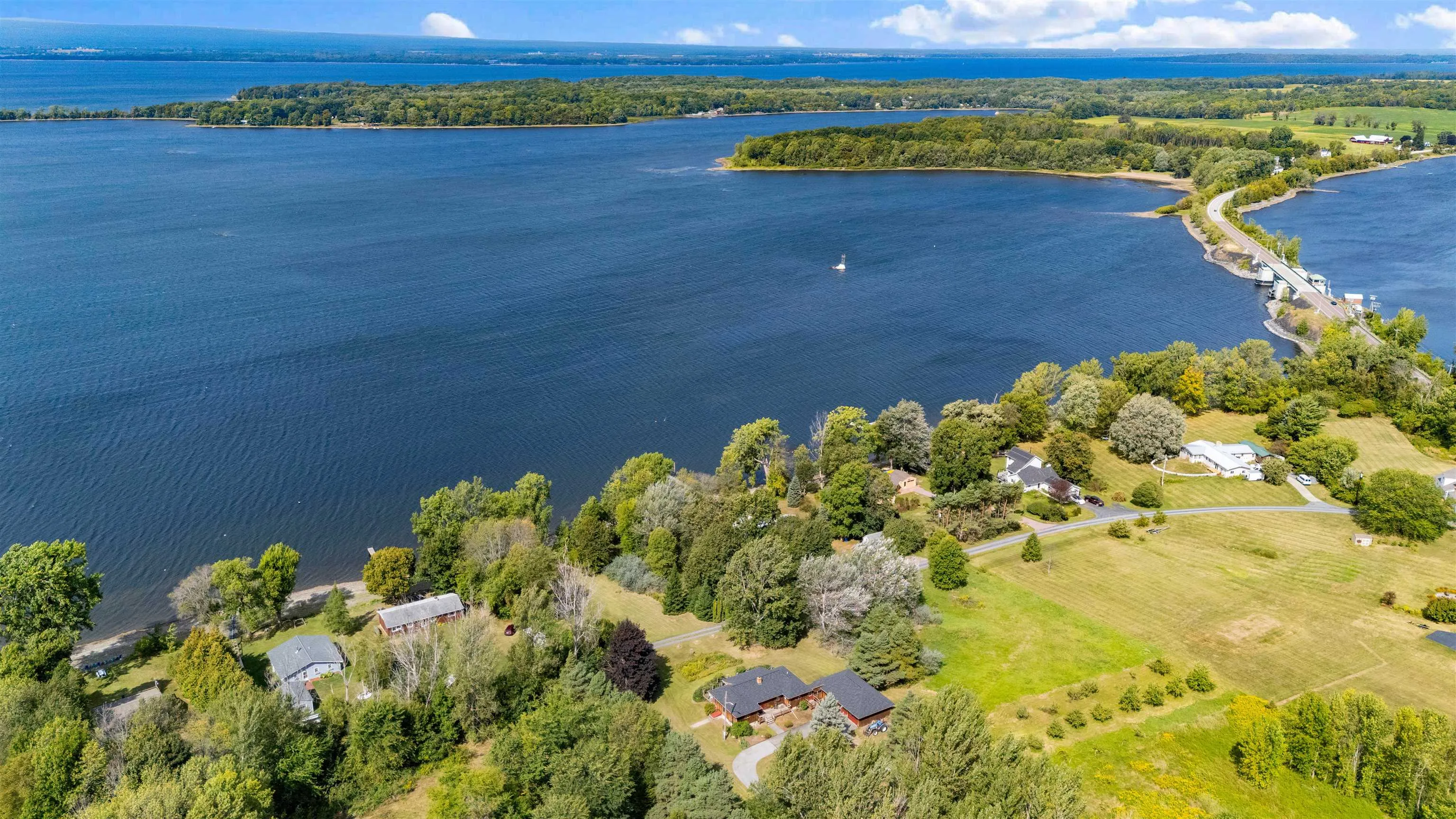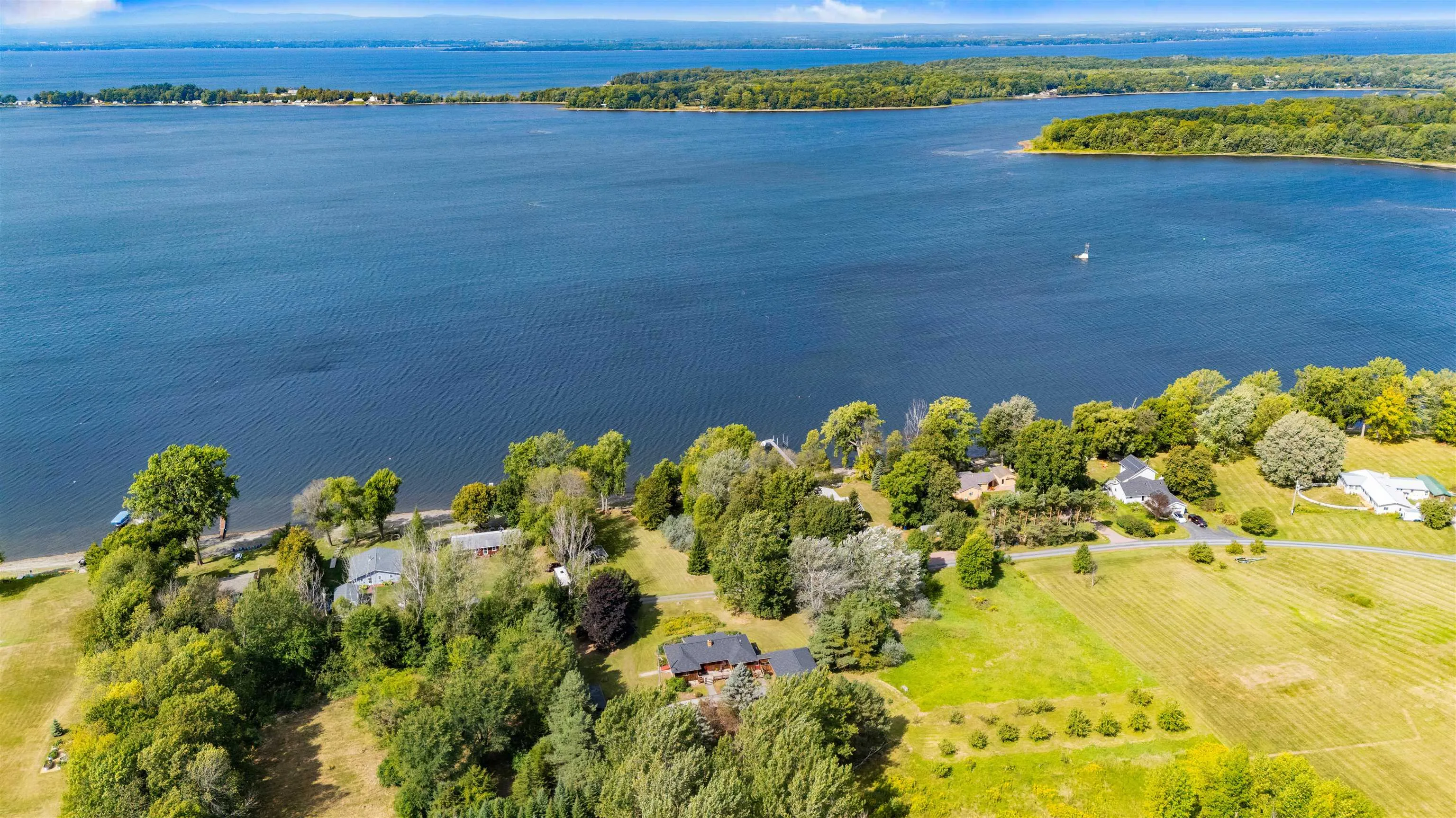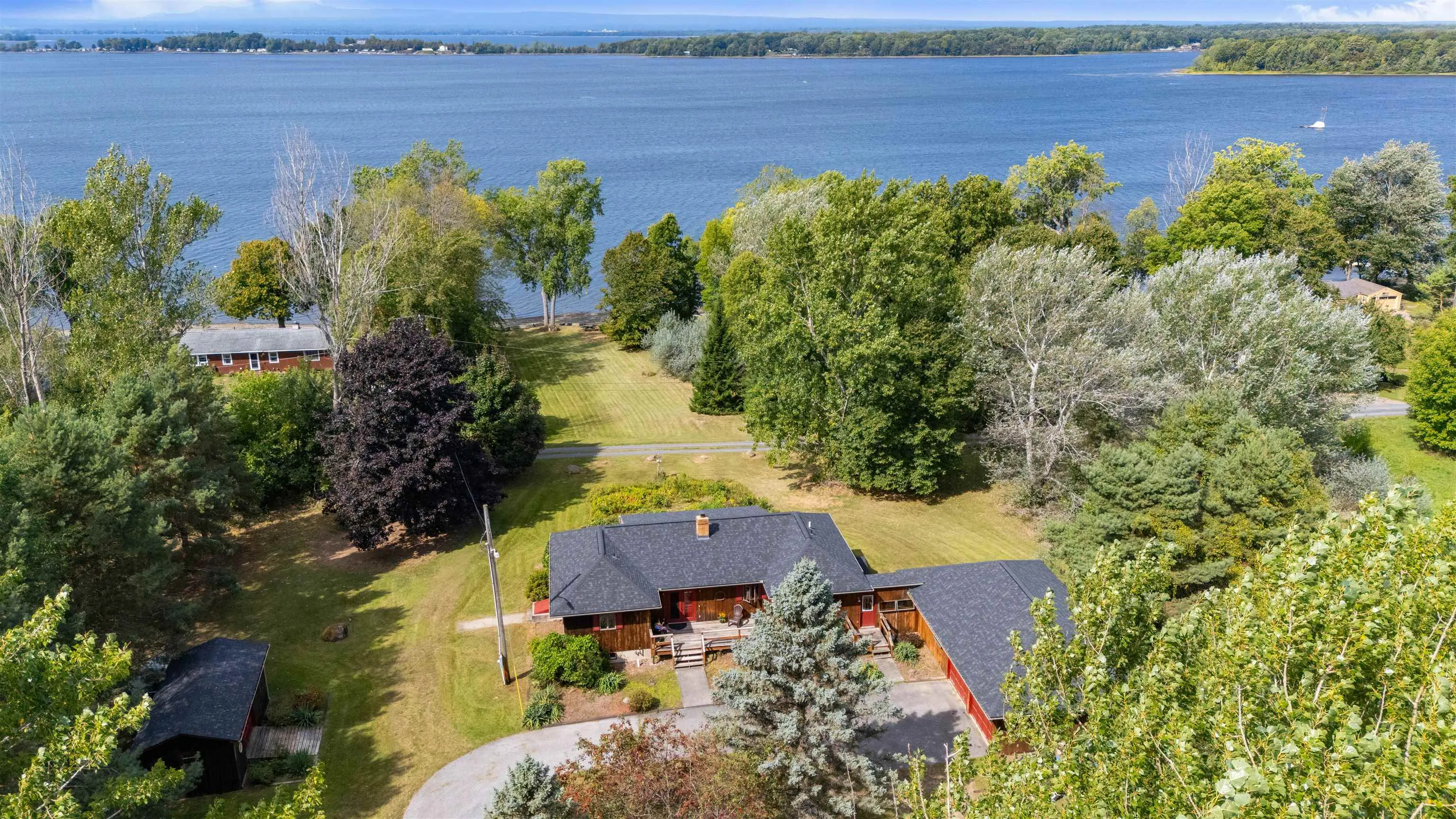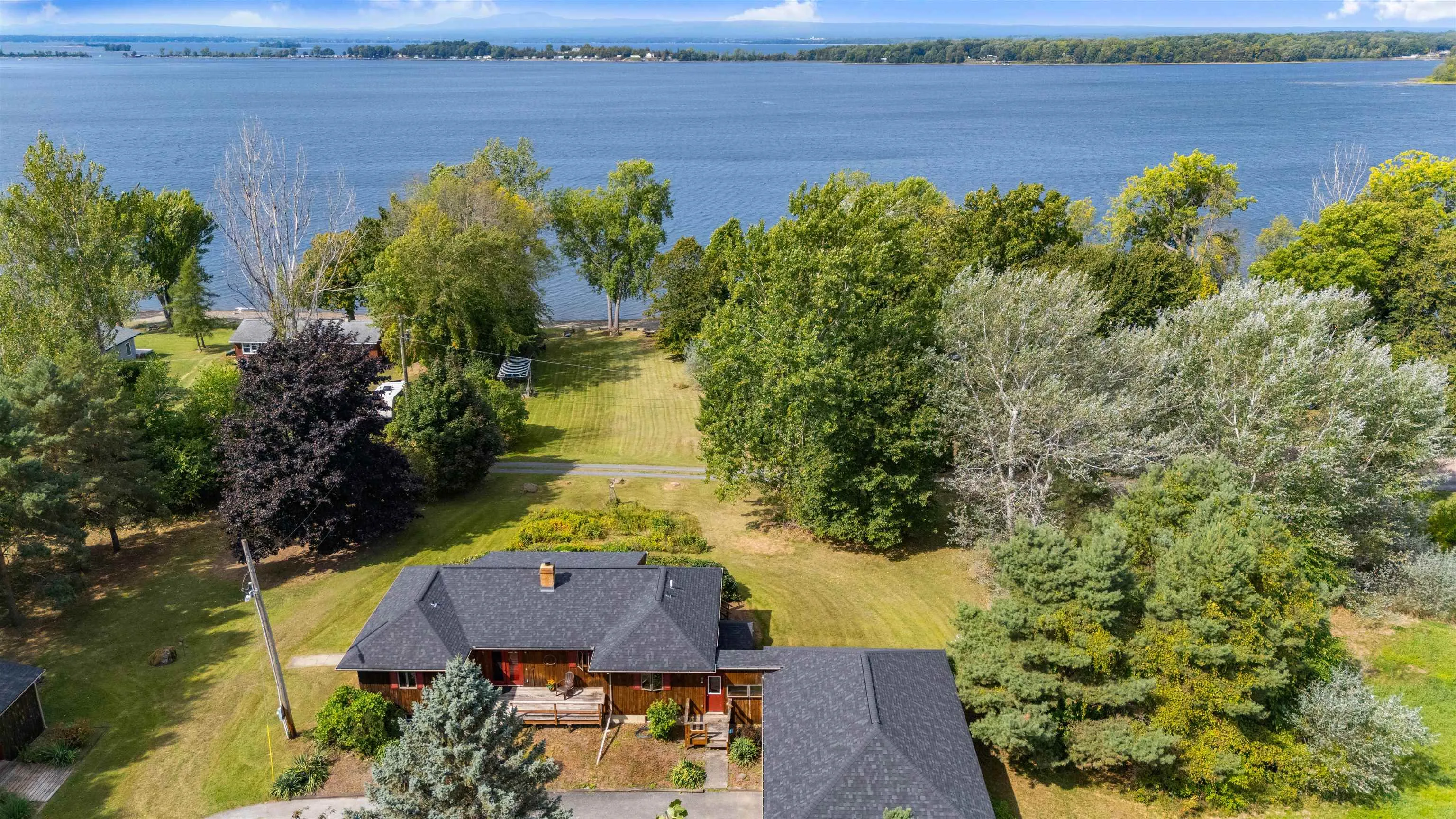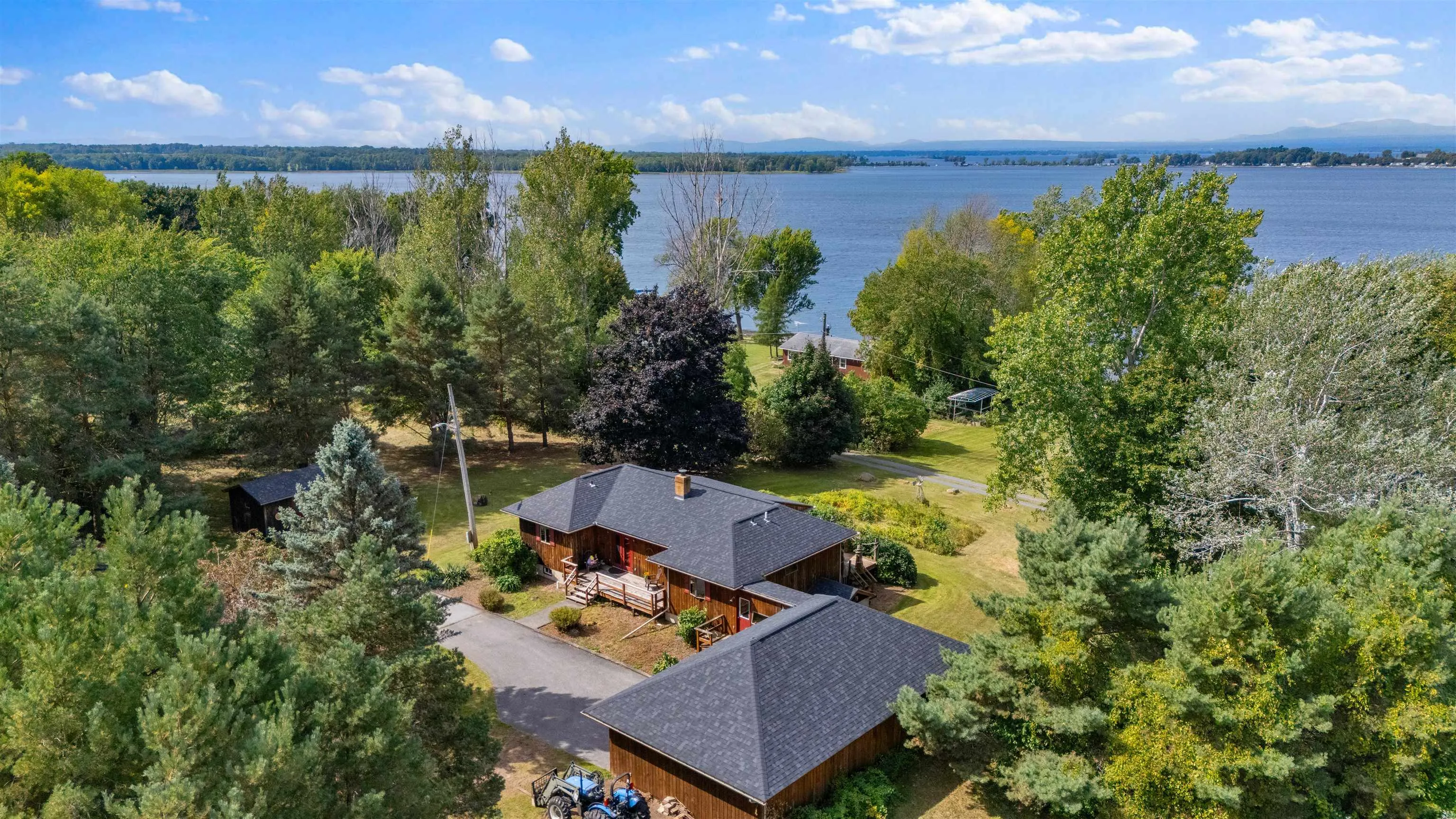 +"PublicRemarks": "Rare Lake Champlain Waterfront home with 6.55 acres. This private retreat offers 170 feet of direct Lake Champlain frontage and a lifestyle that’s nearly impossible to find. Originally purchased on 5 acres, the property now spans 6.55 acres with two additional lots purchased for unmatched privacy. A long driveway welcomes you past landscaped apple orchards and perennial gardens, setting the stage for a truly special home. Inside, enjoy one-level living with hardwood floors throughout. Two bedrooms feature en-suite baths, while a third bedroom is designed with four custom built-in bunks, perfect for guests. A dry, full basement offers expansion potential, and the attached two-car garage keeps everything convenient. The Anderson windows and new roof will give you complete peace of mind. Step outside to soak up sunsets and panoramic water views from the deck or wander to your own gradual beach and private shoreline. A large shed with two boat lifts, doc and extra storage space makes it easy to enjoy boating, fishing, and swimming right from your backyard. This property blends seclusion with accessibility. Easy ride to Burlington, the airport, and the Canadian border. Explore Grand Isle’s state parks, hiking trails, farmers’ markets, historic landmarks, and vibrant local arts scene right nearby. Possible subdivision, minimum 1 acre lot. Don't miss your chance to own your own slice of heaven in Vermont!! OPEN HOUSE 9/13 10am-12pm."