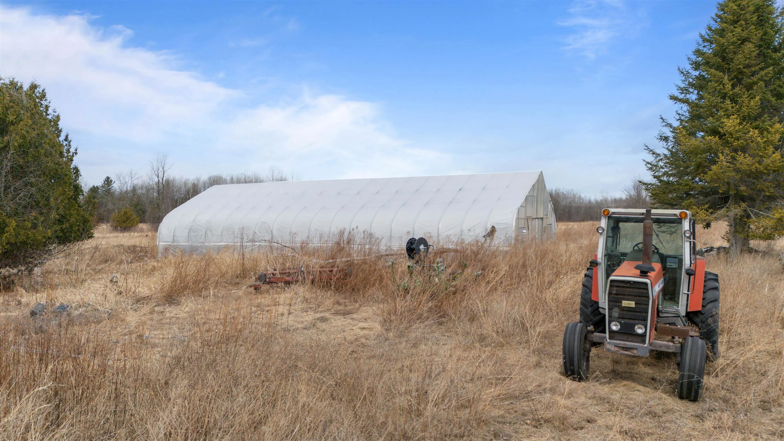 +"PublicRemarks": "Imagine the possibilities on this sprawling 25+ acre parcel, a unique blend of residential and agricultural zoning. This picturesque landscape features fertile farmland, expansive meadows, a tranquil pond, and mature trees, creating a serene and versatile setting. Benefit from an existing well, simplifying development. With approximately 850 feet of paved road frontage on Allen Rd. (Rt. 314) and three driveway access points, accessibility is assured. Included in the sale: a substantial 30x70 ft greenhouse, planter, 2 bed riser, 3 prong plow, harrow, Massey Ferguson tractor, and fertilizer solution in storage tanks. This exceptional property offers the canvas for your dream estate, a thriving agricultural venture, or a thoughtfully designed residential community."