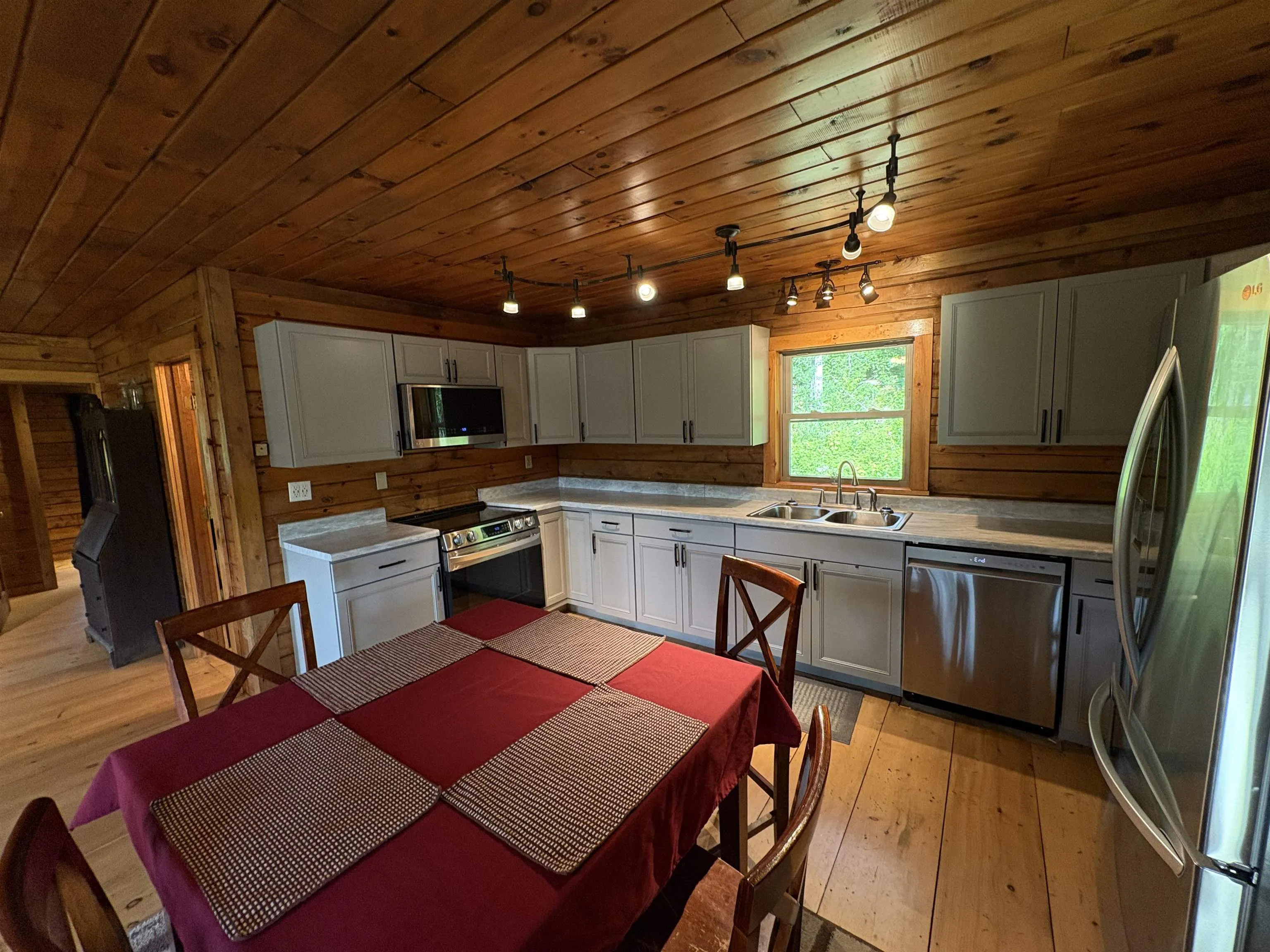 +"PublicRemarks": "Welcome to your private oasis in the woods. Imagine settling into a comfortable porch chair, you take a deep breath of crisp, fir-scented air and your eyes rest upon the miles of green forest and rolling hills stretching before you. It's a feeling of quiet solitude, where time slows and nature's gentle sounds are your only company. This bright and clean 2-bedroom log home exemplifies simple living, completely surrounded by nature. Step inside and discover a newly updated kitchen boasting modern appliances, complemented by fresh paint and new windows that fill the space with natural light. You'll find many other thoughtful upgrades throughout the home, ensuring comfort and convenience. The property offers even more versatile space with two finished rooms in the basement, currently serving as a dedicated home office and gym. Outside, a charming fire pit awaits, ready for evenings spent under the stars, perfect for gathering with loved ones or simply enjoying the peaceful solitude. Just a short stroll down the hill, the Lamoille River provides an idyllic spot for fishing or a refreshing dip on hot summer days."