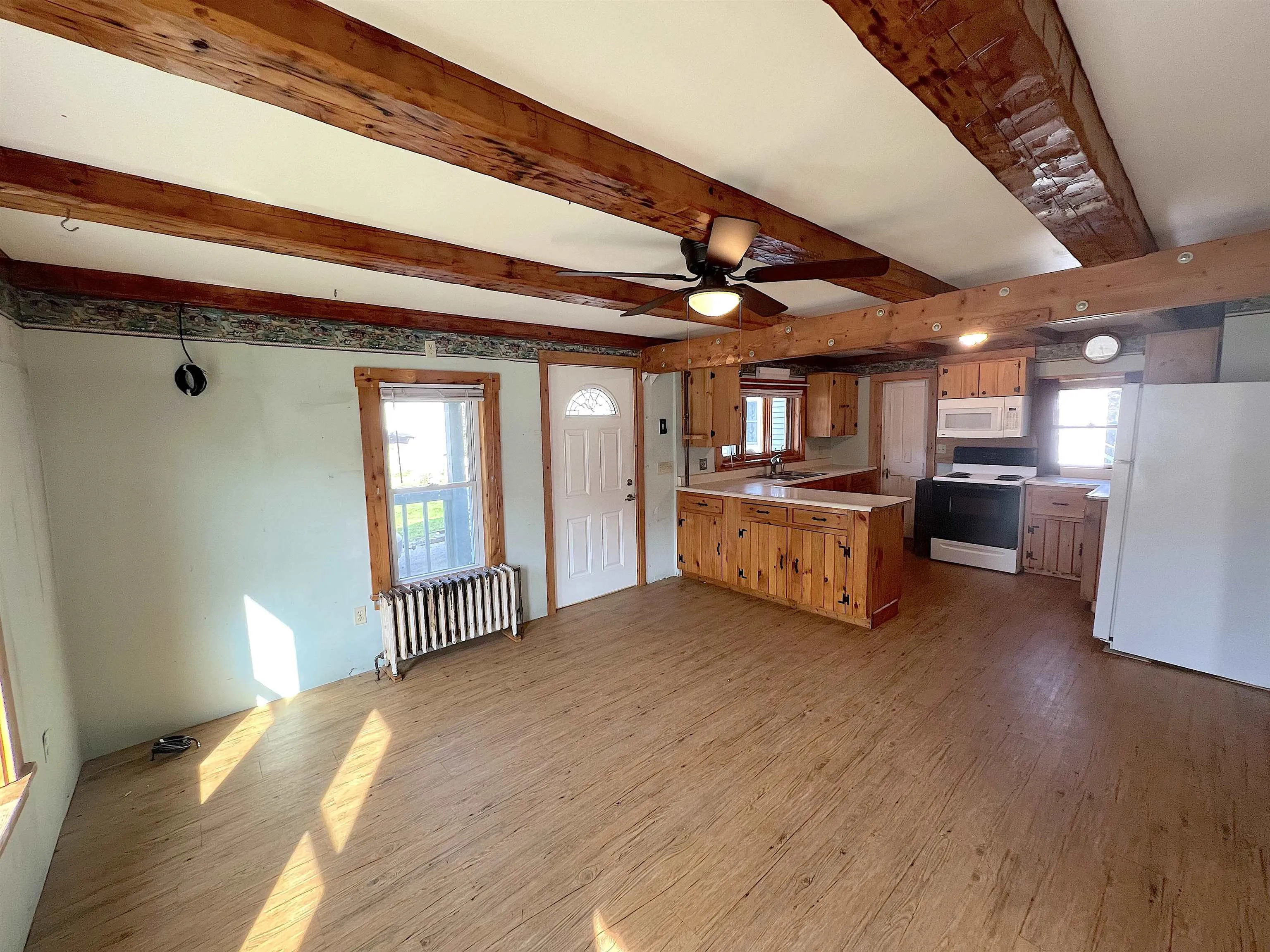 +"Remarks - Public": "Welcome to historic Greensboro Bend, where the trains picking up milk used to turn around, marking it the furthest point north for the trains running along the Lamoille Valley. Those tracks have been transformed into the Lamoille Valley Rail Trail today, which connects the Bend to 93 miles of biking and walking trails. This affordable home is ready to rock, boasting four bedrooms and a full bathroom on the second floor, and spacious living and dining areas on the first floor. The original hand hewn beams still exist today and are in mint condition, further complimented by other natural woodwork upgrades. There is a massive 40 x 34' attached barn with some heated shop space and huge screened in porch on the back of the house. A small fenced in area and tool shed also compliment the home. A handicap accessible bathroom and laundry room was added approximately 12 years ago on the back of the house off of the existing 1st floor bathroom. Located 8 miles from Hardwick, 3 miles from the Willey's Store and Caspian Lake, and two minute walk to Smith's Grocery. BACK ON THE MARKET due to buyer exigent circumstances, no inspections or appraisal were performed by the buyer."