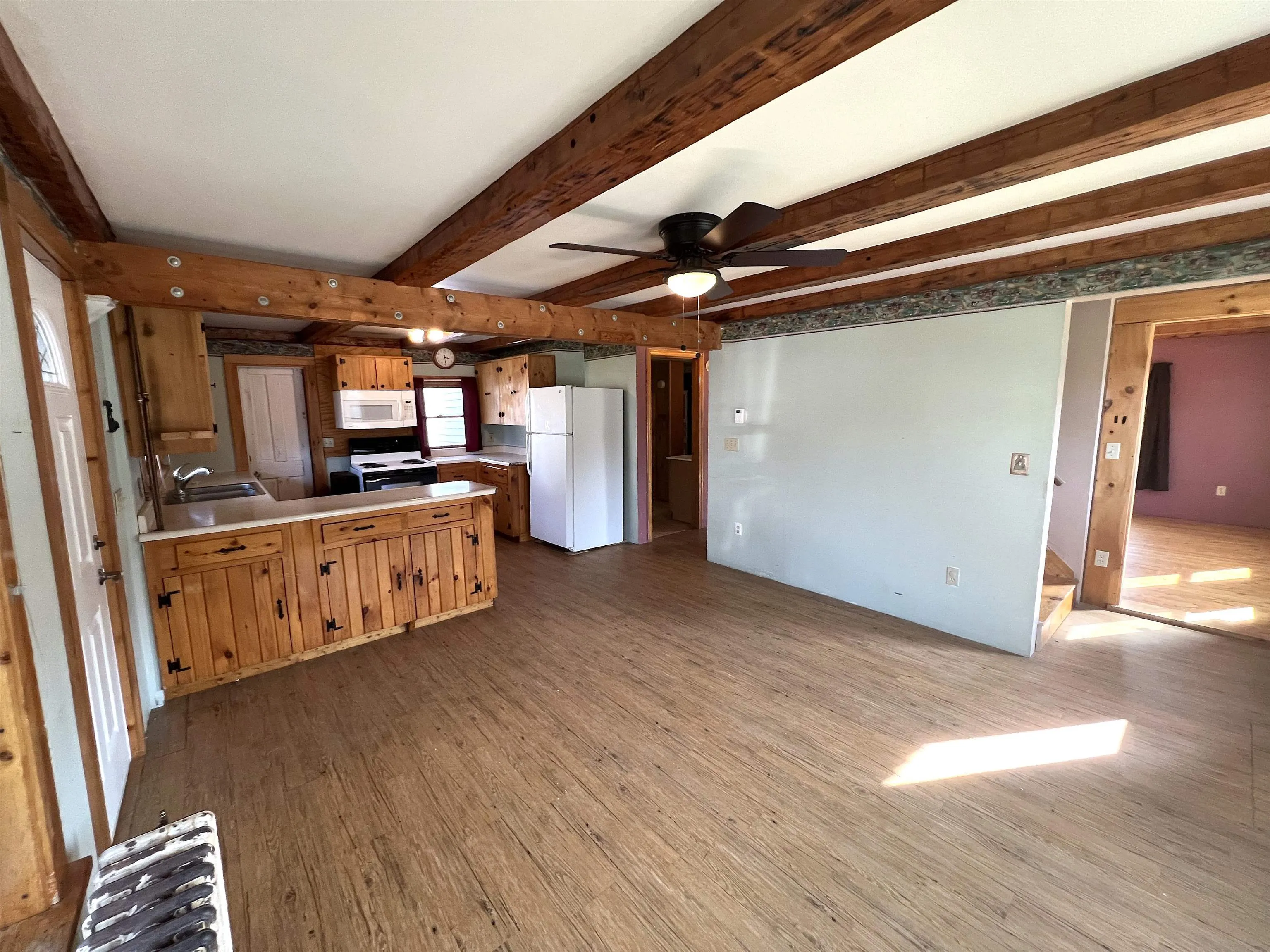 +"PublicRemarks": "Welcome to historic Greensboro Bend, where the trains picking up milk used to turn around, marking it the furthest point north for the trains running along the Lamoille Valley. Those tracks have been transformed into the Lamoille Valley Rail Trail today, which connects the Bend to 93 miles of biking and walking trails. This affordable home is ready to rock, boasting four bedrooms and a full bathroom on the second floor, and spacious living and dining areas on the first floor. The original hand hewn beams still exist today and are in mint condition, further complimented by other natural woodwork upgrades. There is a massive 40 x 34' attached barn with some heated shop space and huge screened in porch on the back of the house. A small fenced in area and tool shed also compliment the home. A handicap accessible bathroom and laundry room was added approximately 12 years ago on the back of the house off of the existing 1st floor bathroom. Located 8 miles from Hardwick, 3 miles from the Willey's Store and Caspian Lake, and two minute walk to Smith's Grocery. BACK ON THE MARKET due to buyer exigent circumstances, no inspections or appraisal were performed by the buyer."