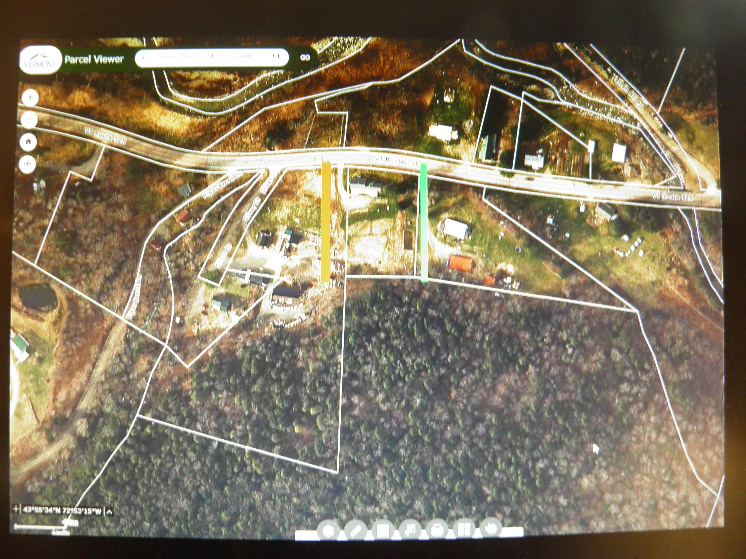 +"Directions": "Route 100, take a right onto Rte 125, proceed up until you see silver Street on left. Hillside behind homes is the parcel. No sign."
