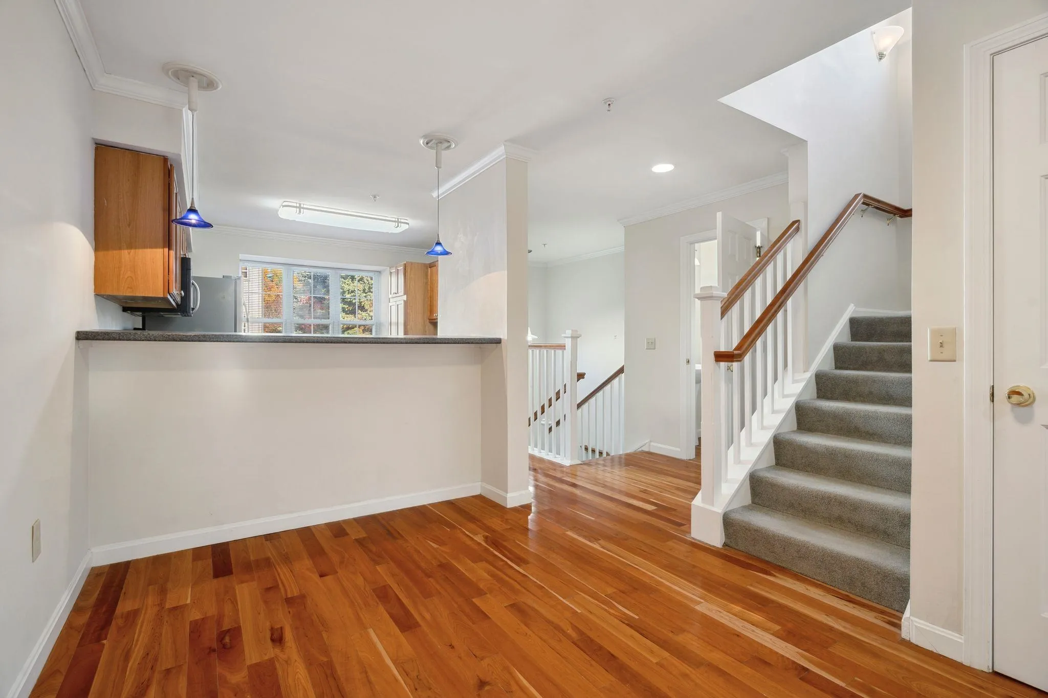 +"PublicRemarks": "Welcome to your serene retreat in the quiet back corner of Stony Creek! This spacious move-in ready 2-bedroom, 2.5-bath end unit condo boasts 1646 square feet of living space, complemented by a full basement and an attached garage. Step inside to discover beautiful hardwood floors that grace the kitchen, dining, and living areas, as well as the half bath and both upstairs bedrooms. The open floor plan features elegant crown molding in the main living area and a cozy gas fireplace, perfect for relaxation. The eat-in kitchen showcases a functional U-shaped design, offering ample storage, stainless steel appliances, and a convenient high-top breakfast bar—ideal for casual meals or entertaining. Each upstairs bedroom features its own ensuite bathroom, ensuring privacy and comfort, while a half bath on the main level adds convenience. With lots of closets and storage throughout, you’ll find everything you need for organized living. The versatile bottom-floor flex room, complete with a closet, can easily be transformed into a third bedroom, office, family room, or workout space. This condo is not only a great investment opportunity but it also has a welcoming community with nice neighbors. Enjoy easy access to Hanover, Lebanon, White River Jct, and Norwich, with an Advance Transit bus stop right in front and a bike path that runs through the community. Don’t miss this fantastic opportunity to add your personal touch and make this condo your dream home!"