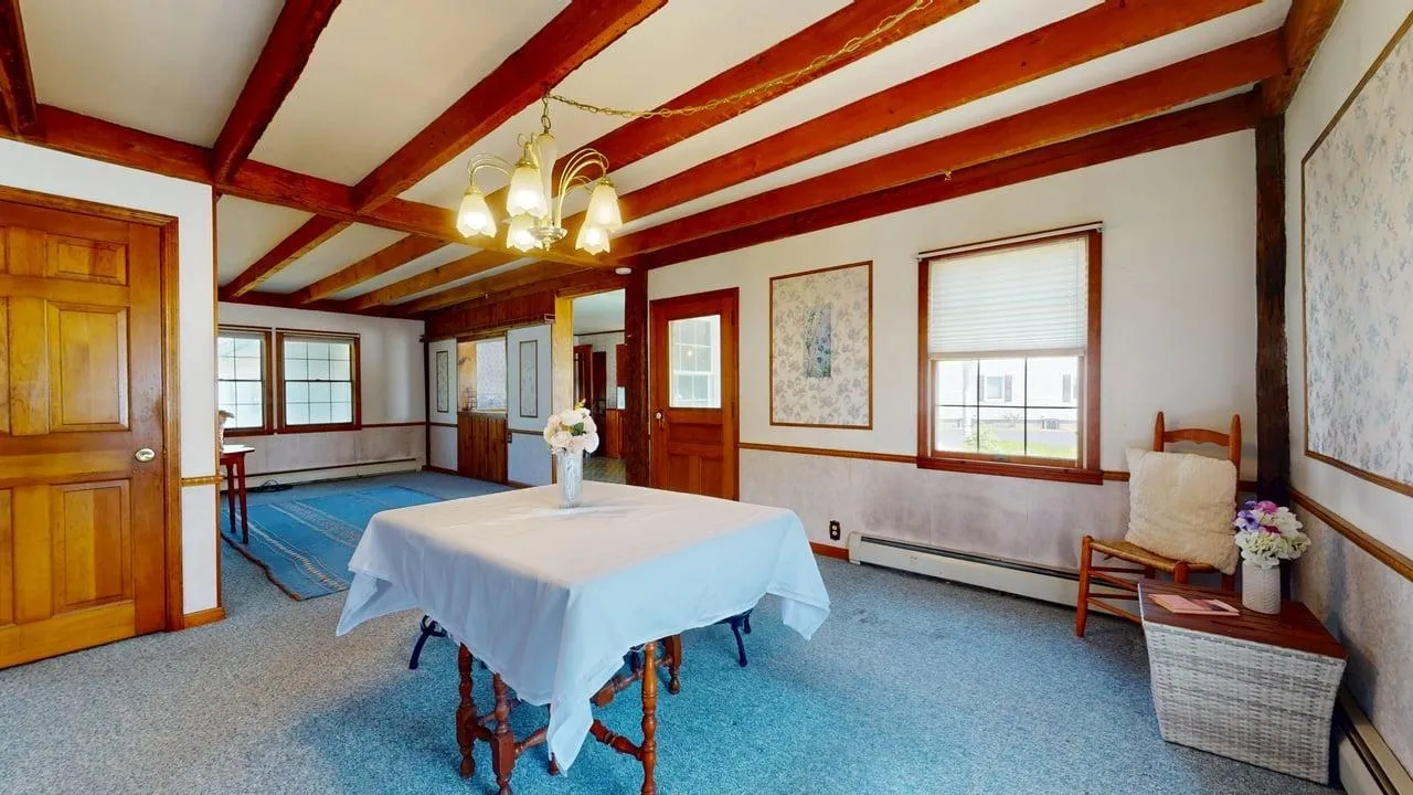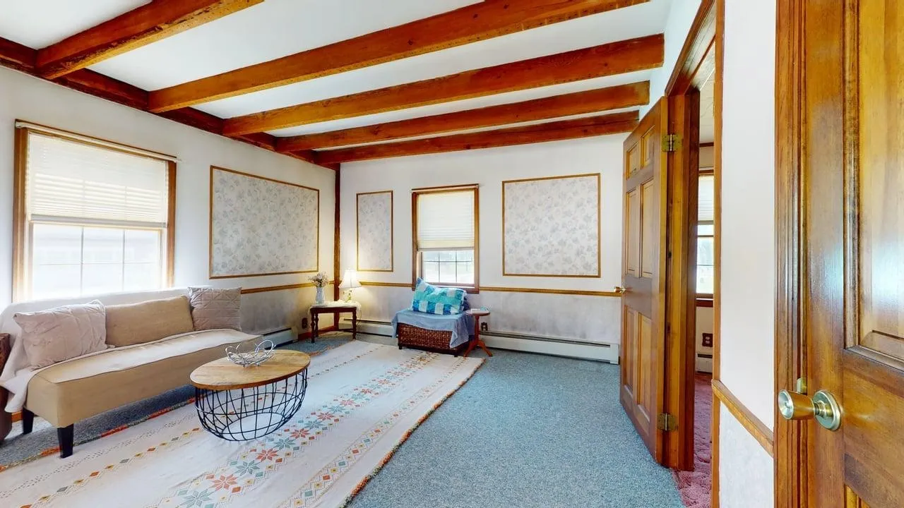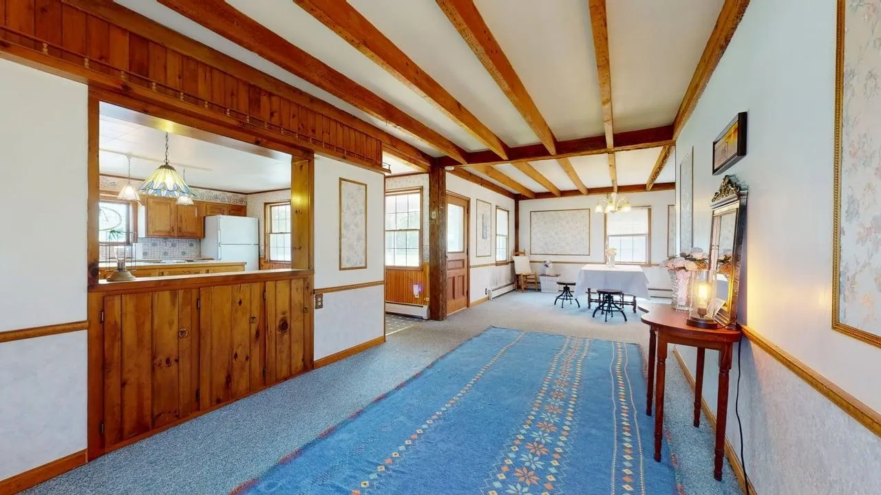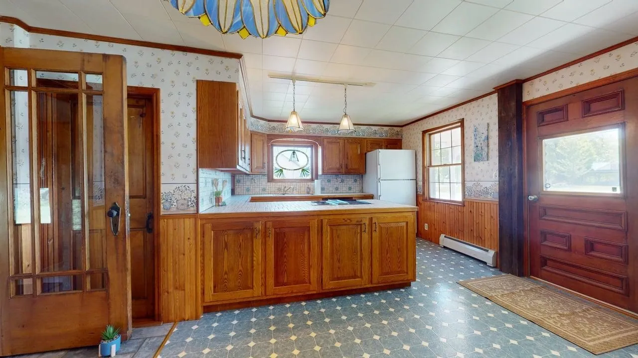 +"PublicRemarks": "Beautiful village home with custom stained glass, post and exposed beam features, gorgeous original hardwood doors and cabinets. Older home with great bones, renovated in the 1980's with insulation and electrical updates throughout the home. Newer furnace with a large open yard for play or garden. The school, grocery store, library and park nearby. Spacious four bedroom with a one on the first floor with a full bath and first floor laundry. Three additional bedrooms and an office space as well upstairs. Three season porch and attached garage with auto door. An additional shop is attached. Paved driveway that in circular style for easy. Natural Gas and on demand system! Easy commute to I-89 minutes away! This home is must see!!!"