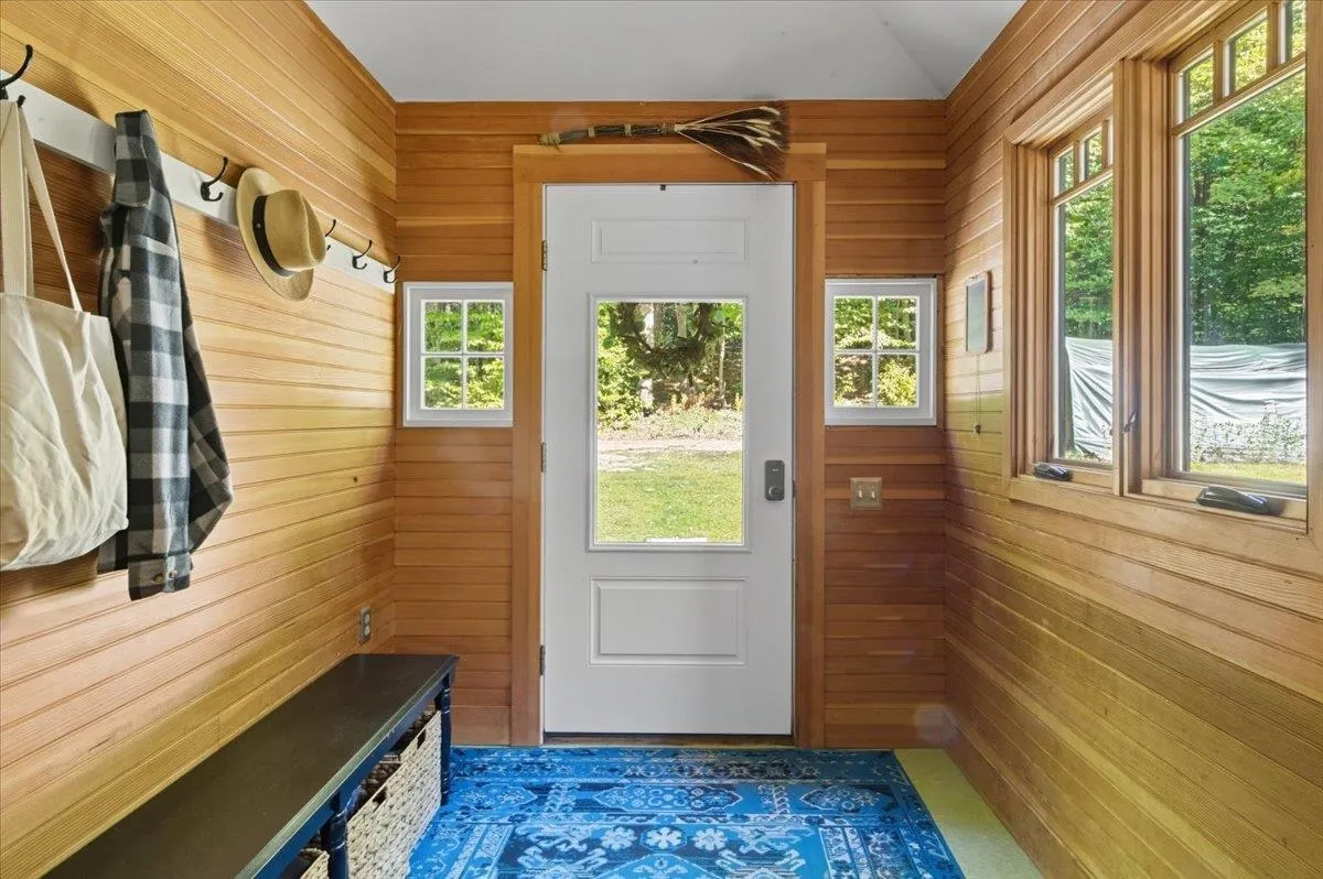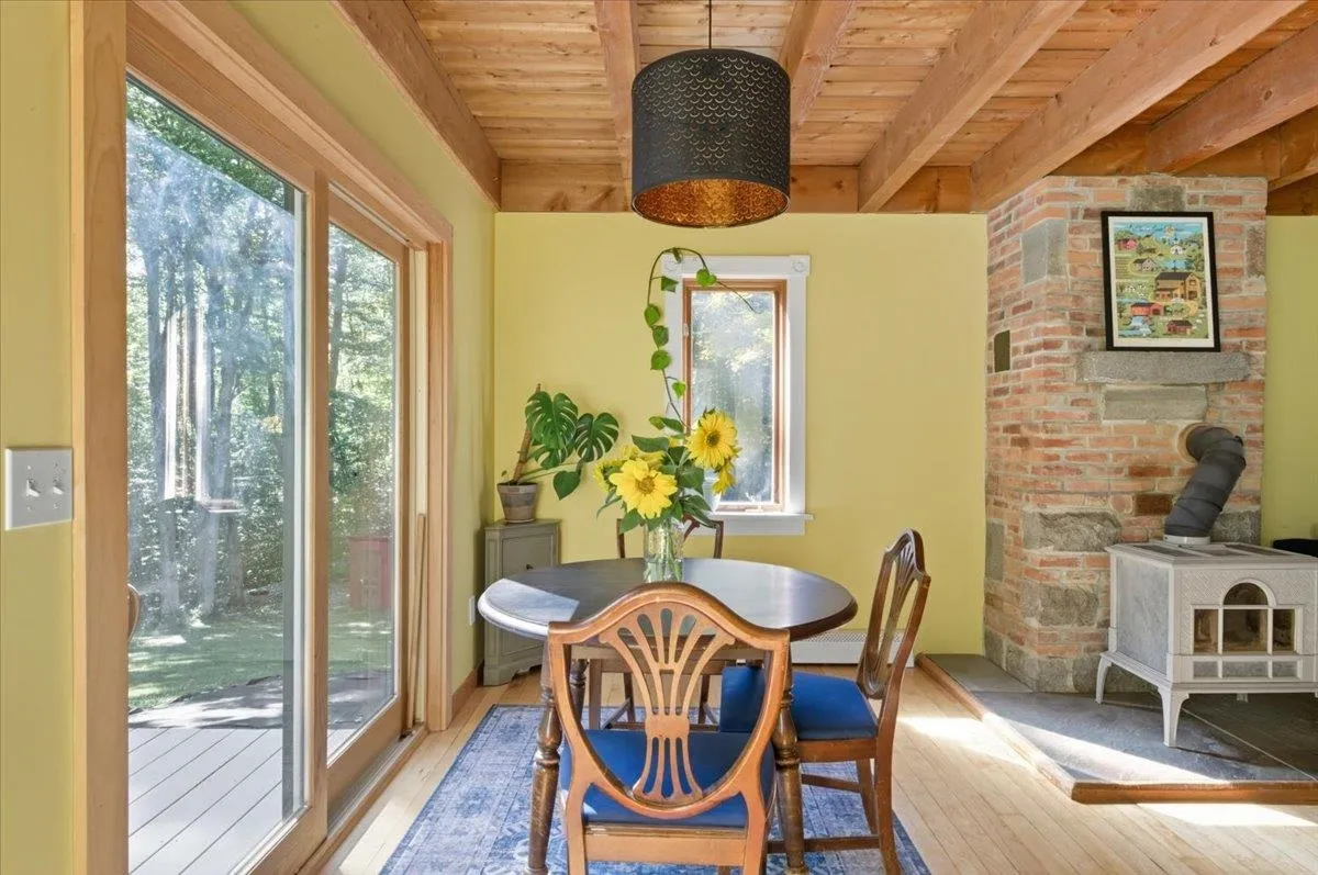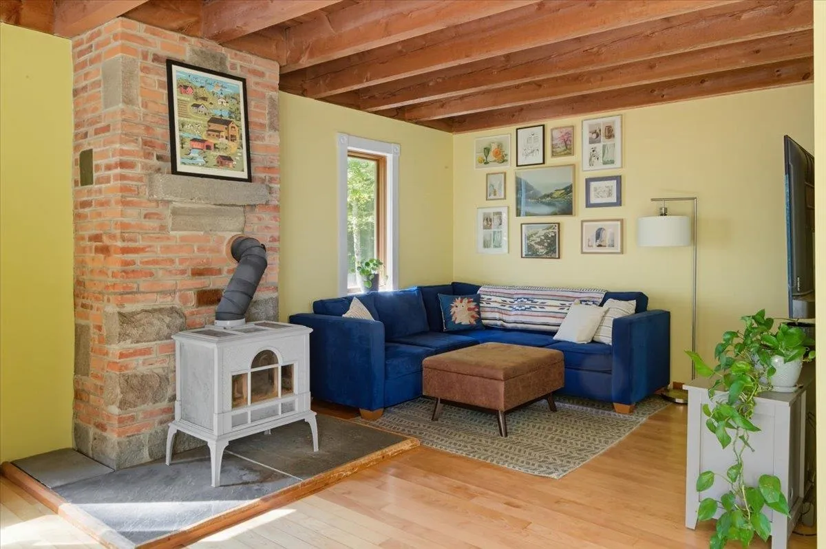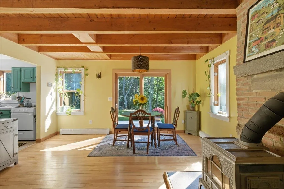 +"PublicRemarks": "Tucked along a private wooded road, this arts and crafts post and beam home is just minutes to Hinesburg amenities and still comes with 3 acres, a perfect combination of convenience and space. This 3 bedroom home has character galore with exposed beam ceilings in the living room, warm hardwood flooring, a bright kitchen and a central wood stove as a secondary heat source. The first floor has a generous full bathroom with clawfoot soaking tub and laundry facilities. The upstairs has 3 bedrooms and an additional bathroom. Special details like luxury laminate plank flooring, newly carpted staircase, wainscoating accents and fresh paint make the upstairs move-in ready! The walkout basement has plenty of storage space, a new heat pump water heater, as well as a dedicated workshop area. With a large yard, matures trees for privacy, and multiple garden beds ready for next spring, the outdoor space at this home checks a lot of boxes. This special place is ready for you to call home this fall!"