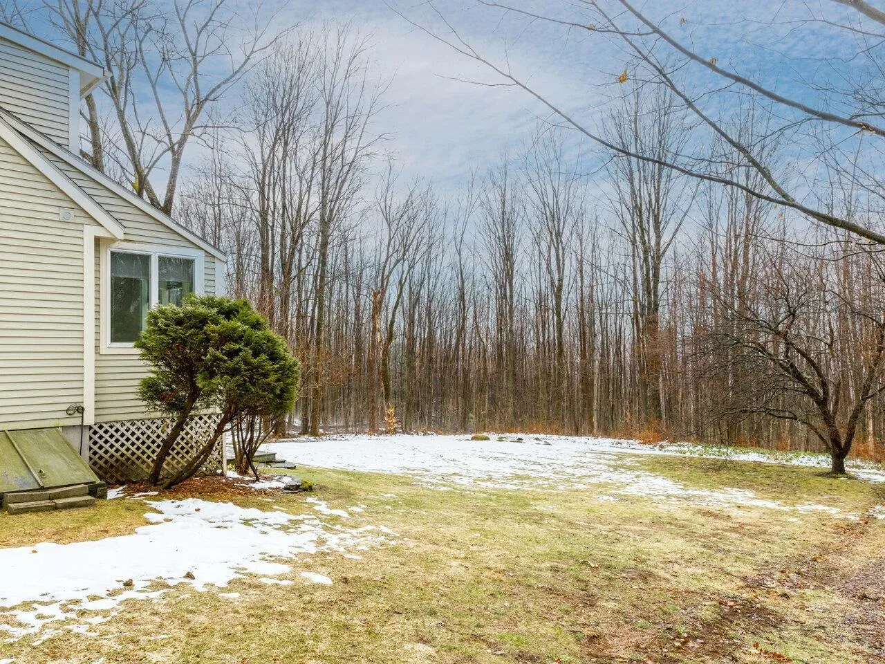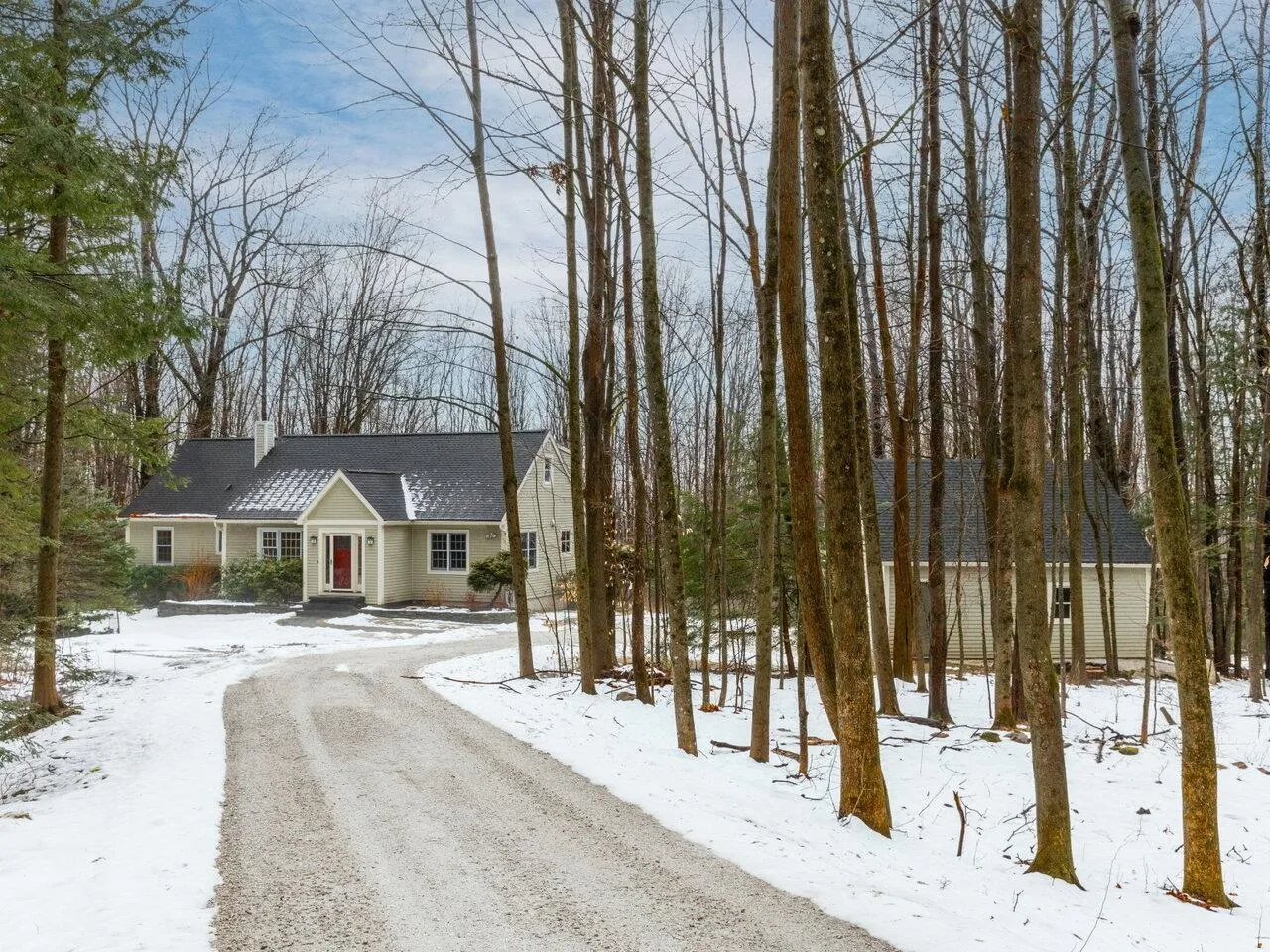 +"Remarks - Public": "This charming Hinesburg cape sits on a private 3-acre lot. Pride of ownership radiates with quality finishes throughout. The spacious eat-in kitchen is the heart of the home, equipped with skylights, generously proportioned island, and a temperature controlled wine room, all complemented by a walk-in pantry with extra counter space and cabinetry. The main level features a bedroom suite with a full bath and den. The bright living area opens to a back deck through French doors. Upstairs, the large primary suite includes a full bath and oversized walk-in closet with built-ins. A third bedroom, currently an office, can easily be converted back to a bedroom. Lots of storage options with a full basement and detached two-car garage with attic. The backyard offers plenty of open space while the mature forest creates a private cocoon. Just a few minutes to Hinesburg Village and 25 minutes from downtown Burlington and the airport, the perfect combination of country living and convenience."