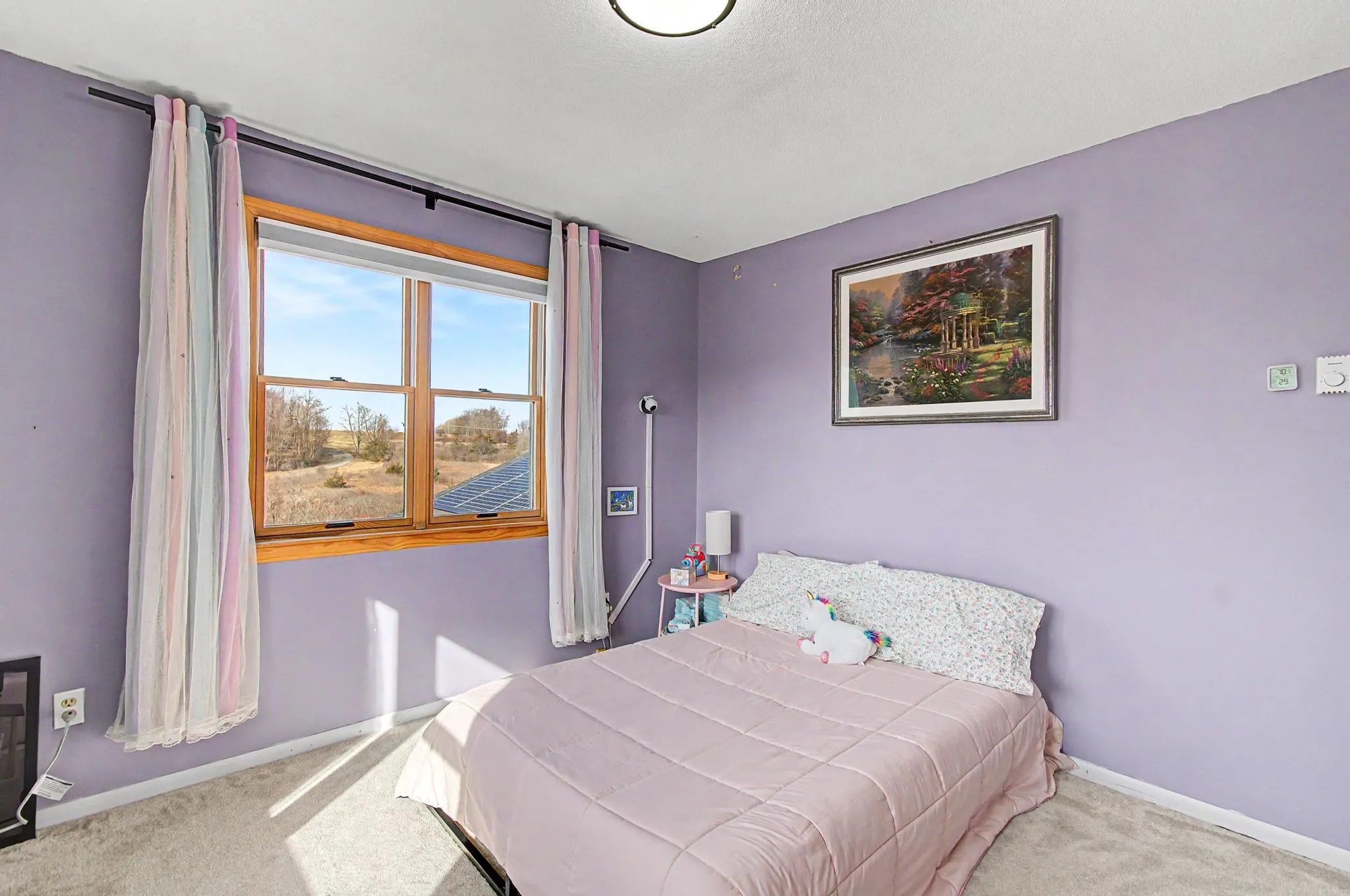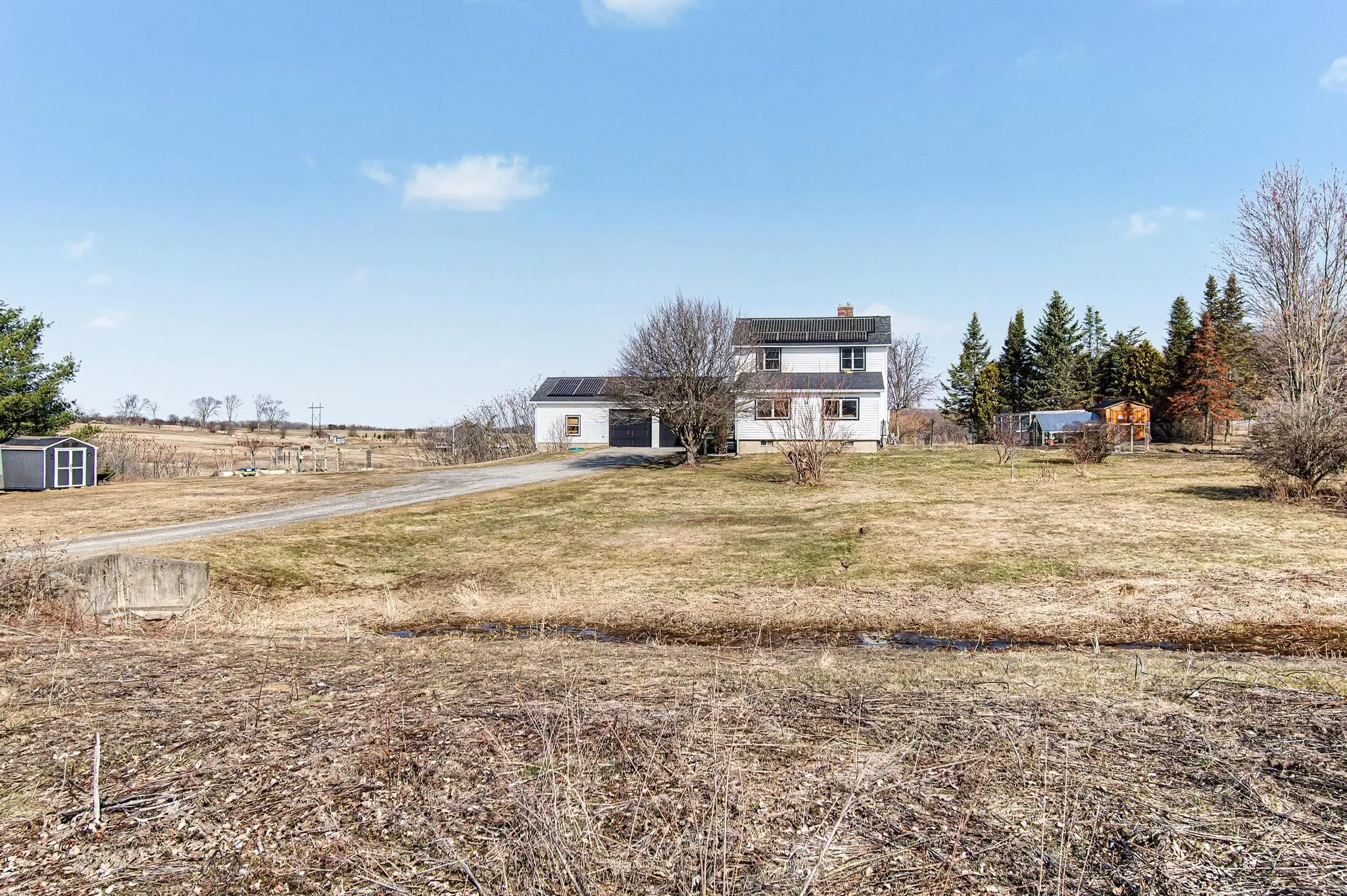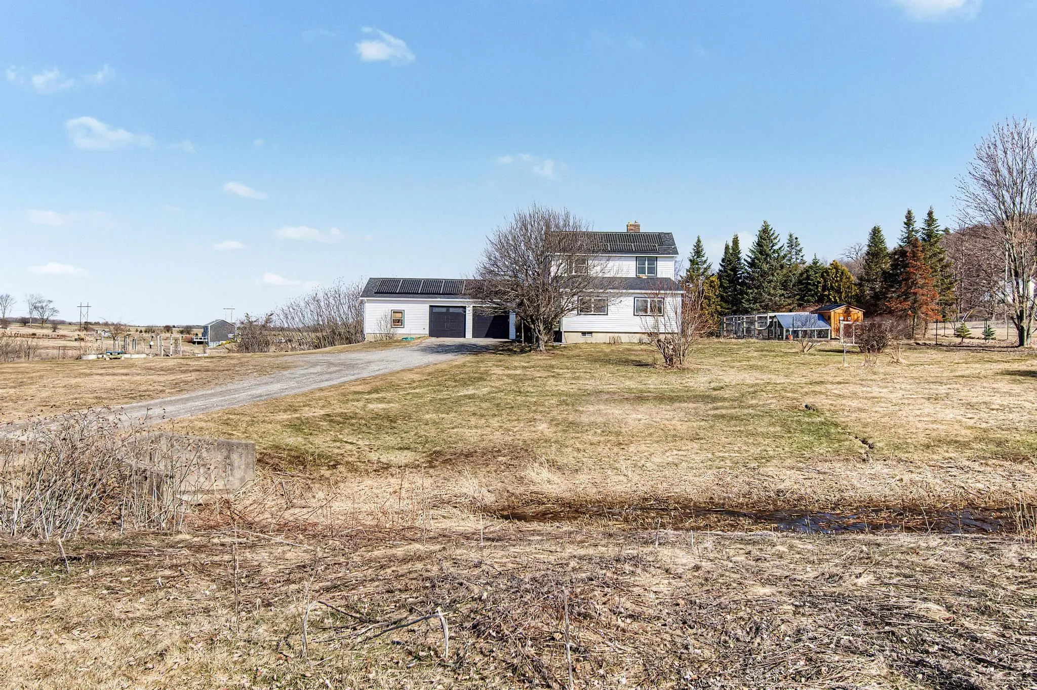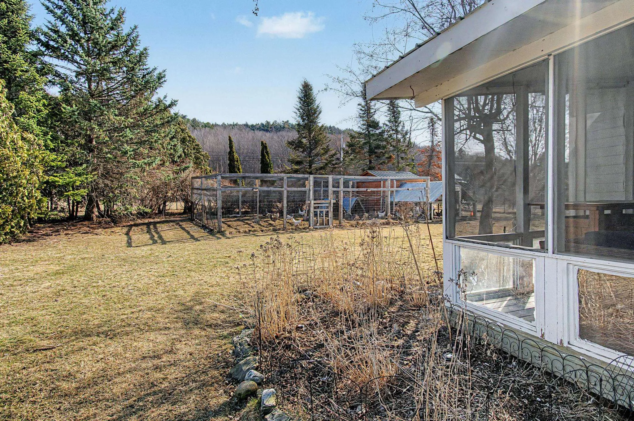 +"PublicRemarks": "Set on 11.1 picturesque acres, this inviting 3-bedroom, 2-bath home offers the perfect blend of space, comfort, and Vermont charm. This property boasts mature fruit trees, fruit bushes, and endless perennials throughout the property. Along with the endless gardens you will also find a custom built chicken coop and a flock of layers that lay 1-2 dozens fresh eggs a day! Inside, the home features a warm and functional layout designed for both daily life and gathering. The kitchen is well-appointed with ample cabinetry, quality finishes, and a layout that flows seamlessly into the dining and living areas. A gas stove creates a cozy focal point, adding both character and efficiency during the colder months. The dining area is filled with natural light and overlooks the surrounding landscape, creating a welcoming setting for meals and entertaining. A standout feature is the vaulted living space with exposed wood beams, offering a bright, airy feel and a connection to the natural surroundings. Upstairs and throughout, the bedrooms are comfortably sized with good natural light, while two full baths offer convenience and functionality. The oversized attached, and heated, three and a half car garage is a major bonus, offering exceptional space for vehicles, storage, equipment, or workshop use—ideal for those needing room for hobbies, tools, or recreational gear. The property itself is equally compelling. A screened-in porch provides the perfect spot to enjoy warm evenings, while the expansive acreage offers endless opportunities for gardening, recreation, or simply enjoying the quiet setting. With open yard space, mature trees, and room to grow, this is a property that truly embraces the Vermont lifestyle. With many updates in throughout in the last five years including, but not limited to, a brand new roof/ owned solar panel system, brand new vinyl exterior siding, brand new energy efficiency windows and a brand new septic tank (2025)."