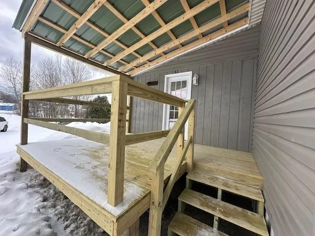 +"PublicRemarks": "Charming Newly Renovated Double-Wide in North Hyde Park Discover this beautifully renovated 1996 double-wide mobile home, nestled on a .25-acre lot in the peaceful countryside of North Hyde Park. This spacious and light-filled home offers 3 bedrooms and 2 bathrooms, thoughtfully updated with brand new kitchen and floors throughout the house. Step inside to find large windows that bring in abundant natural light, an inviting open layout, and fresh renovations throughout. Enjoy the brand-new covered porch, perfect for relaxing and taking in the scenic surroundings. A new detached shed provides extra storage for all your outdoor gear. Located in a prime spot for outdoor enthusiasts, this home is situated between three ski areas and offers easy access to ATV and snowmobile trails. Just 10 minutes from Morrisville, you will have the convenience of nearby amenities while still embracing the beauty of Vermont's countryside. Don't miss this move-in-ready gem!! Schedule a showing today! Property is being sold AS-IS."