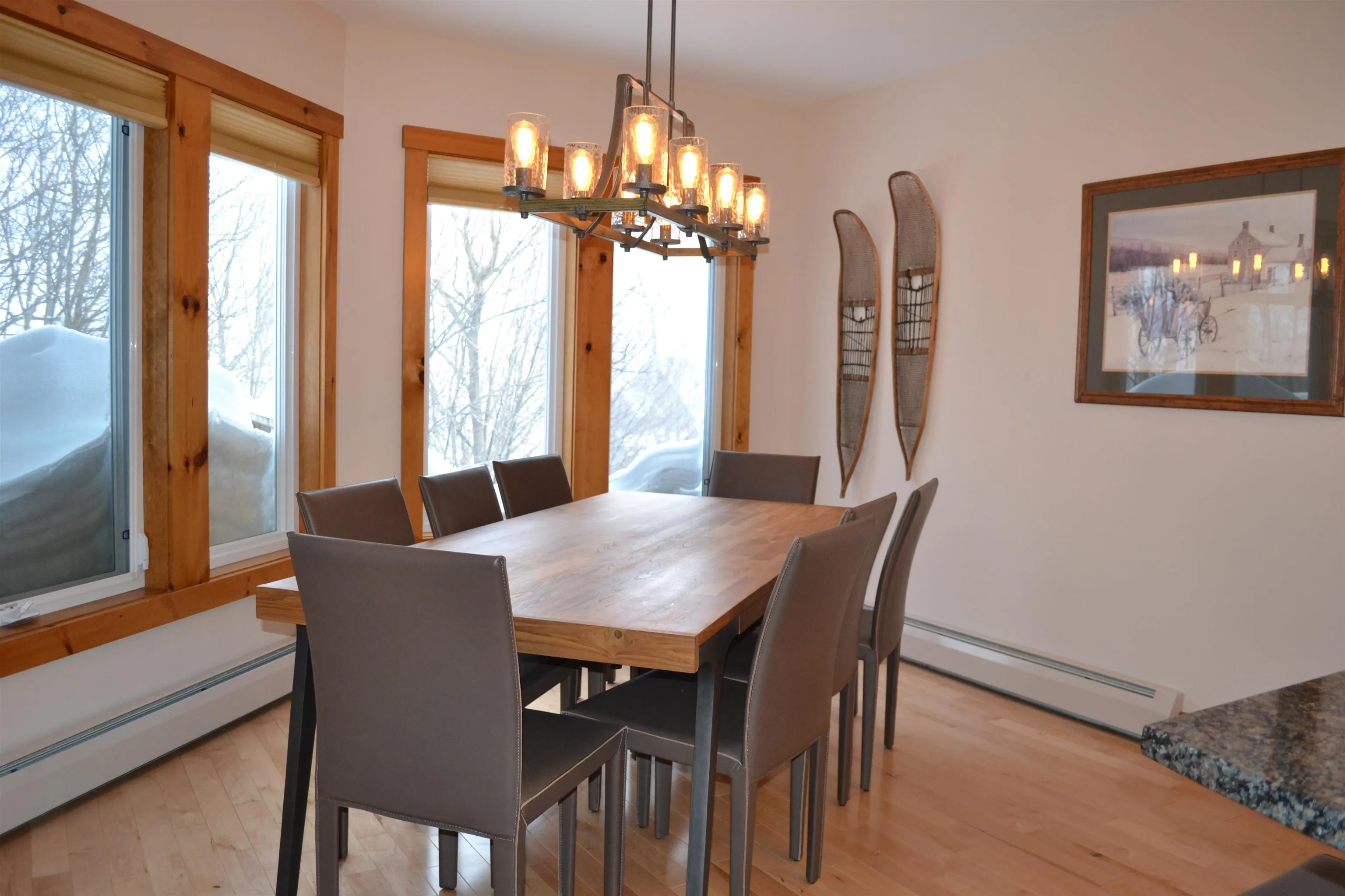 +"PublicRemarks": "Luxurious ski in/out Townhouse at Jay Peak Resort. Experience the pinnacle of mountain living in this exquisitely renovated 4-bedroom, 4-bath townhouse nestled at the heart of Jay Peak Resort. Boasting modern design and high-end finishes, this spacious home seamlessly blends comfort and elegance. Four beautifully appointed bedrooms, each offering plush comfort and ample natural light with beds for up to 12 people. The two ensuite bathrooms have been renovated with tiled step in showers, high end fixtures and custom glass doors leaving the other two bathrooms with tubs for young children.The main floor offers an open concept living space featuring a cozy fireplace, perfect for unwinding after a day on the slopes. A gourmet kitchen with stainless steel appliances, granite countertops, and a breakfast bar that opens to the living and dining area. Located on the Grammy Jay trail, just step out of your back door and snap into your skis and you are off and skiing. The resort offers several amenities including a water park, golf course, and a variety of dining options. Whether you’re seeking a serene retreat or a vibrant base for mountain adventures, this townhouse provides the perfect setting. Discover the ultimate blend of luxury and convenience at Jay Peak Resort."