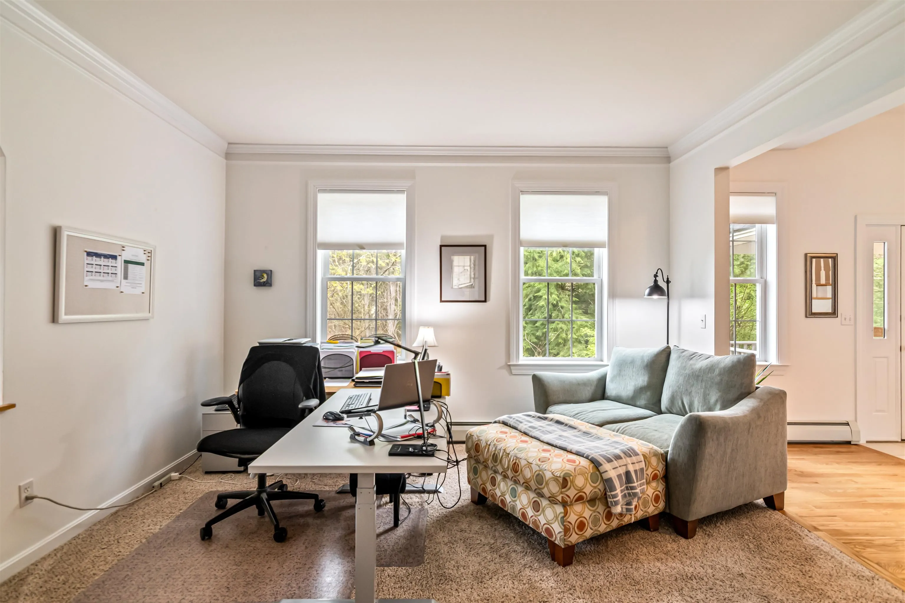 +"PublicRemarks": "Charming 3-bedroom, 4-bath Cape-style home set on nearly 2.5 private acres on a quiet, private road. This inviting home is full of character, featuring arched doorways, high ceilings, and abundant natural light throughout. The large kitchen offers an oversized center island, perfect for cooking, entertaining, or gathering with family. The spacious primary bedroom includes a ¾ en suite bath with a glass shower, while two additional well-sized bedrooms provide space for guests, family, or home office needs. A partially finished walkout basement adds flexible living space, ideal for a rec room, gym, or studio. Enjoy the peaceful wooded surroundings from the three-season porch or step out onto the beautiful flagstone patio for outdoor dining or relaxation. Mature trees offer privacy and a natural buffer, making the property feel like a secluded retreat. Located just minutes from I-89, the home offers the best of both quiet living and commuter convenience. A rare find combining charm, functionality, and a desirable location."