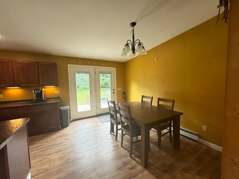 +"PublicRemarks": "Charming Ranch in a beautiful country setting! This 2-BR home sits by itself just down a short road from several other houses in a small neighborhood. The approximately 1.23 acre level lot is a little slice of paradise to enjoy in all seasons. The fenced-in garden area is a playground for those with a green thumb, excellent for growing whatever your heart desires. Step inside this one-level home to the designated mudroom- the perfect drop spot for outdoor gear. Enjoy the expansive and open floor plan. The large kitchen is truly the heart of the home, with an abundance of counter space to whip up culinary delights. Down the hall you will find two large bedrooms. The primary has two closets, including a walk-in and en suite bathroom. The basement, with a pellet stove in place, is just waiting for your finishing touches. A low-maintenance property with plenty of room for entertaining and on a lovely level lot- it sounds like a wonderful place to call home!"