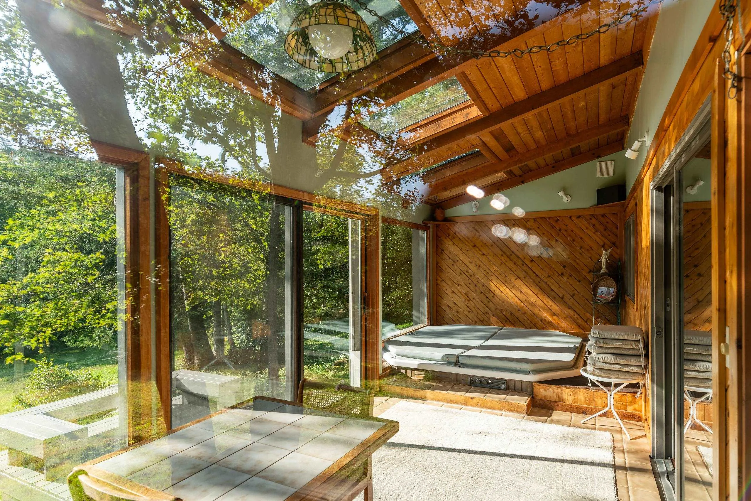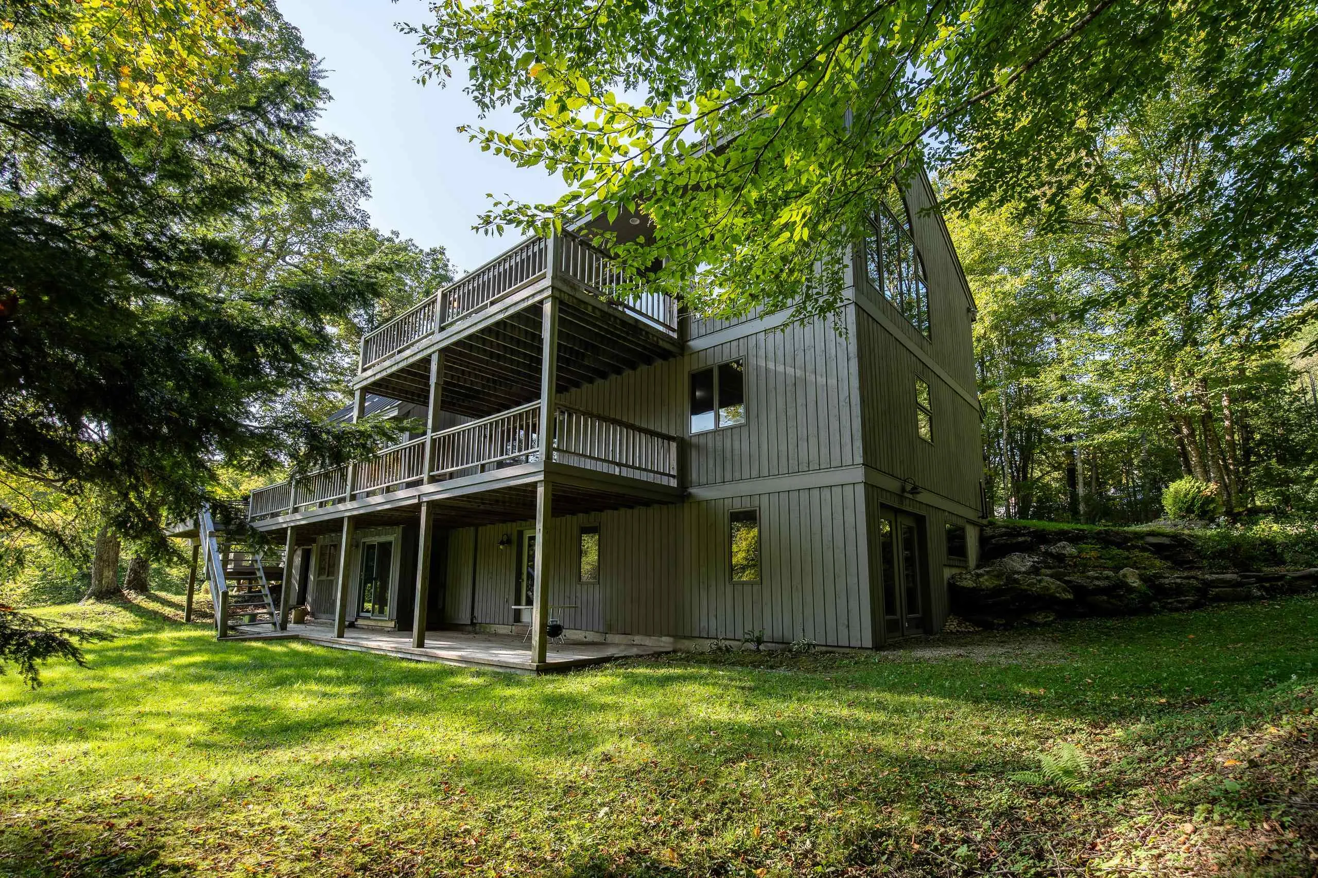 +"PublicRemarks": "Tucked away at the end of a quiet drive, this stunning Killington property is situated at the confluence of the Ottauquechee River, Roaring and Brimstone Brooks. Surrounded by nature on all sides, it’s no surprise that this inspiring spot served for years as the home & studio of a beloved local artist. Gaze out from a comfortable chair on one of the spacious decks or the brook-side bench, listen to calming sounds of falling water, and you might just be inspired to pick up a paintbrush too. Inside, the scenery is just as special. The timber-framed home boasts big, high-ceiling living areas with impressively large windows for natural light and pleasing views. Tongue and groove pine ceilings and paneling as well as a cozy wood stove lend a comfortable, rustic feel to the space. The glass-walled hot tub room is breathtaking, as is the upstairs studio space, complete with floor to ceiling windows, a bathroom, and a utility sink. The home is permitted for three bedrooms, but there are plenty of other rooms to use as you choose, from office spaces to workout/game rooms and storage. The walkout basement is a handyman’s dream, with large work areas and plenty of storage space, along with another living area with a wet bar, the 4th bathroom & laundry room. A tidy attached 2-car garage keeps the vehicles safe from the Vermont elements. A paragraph or two and a list of amenities simply won’t suffice to describe this beautiful property – you’ll want to experience it for yourself."