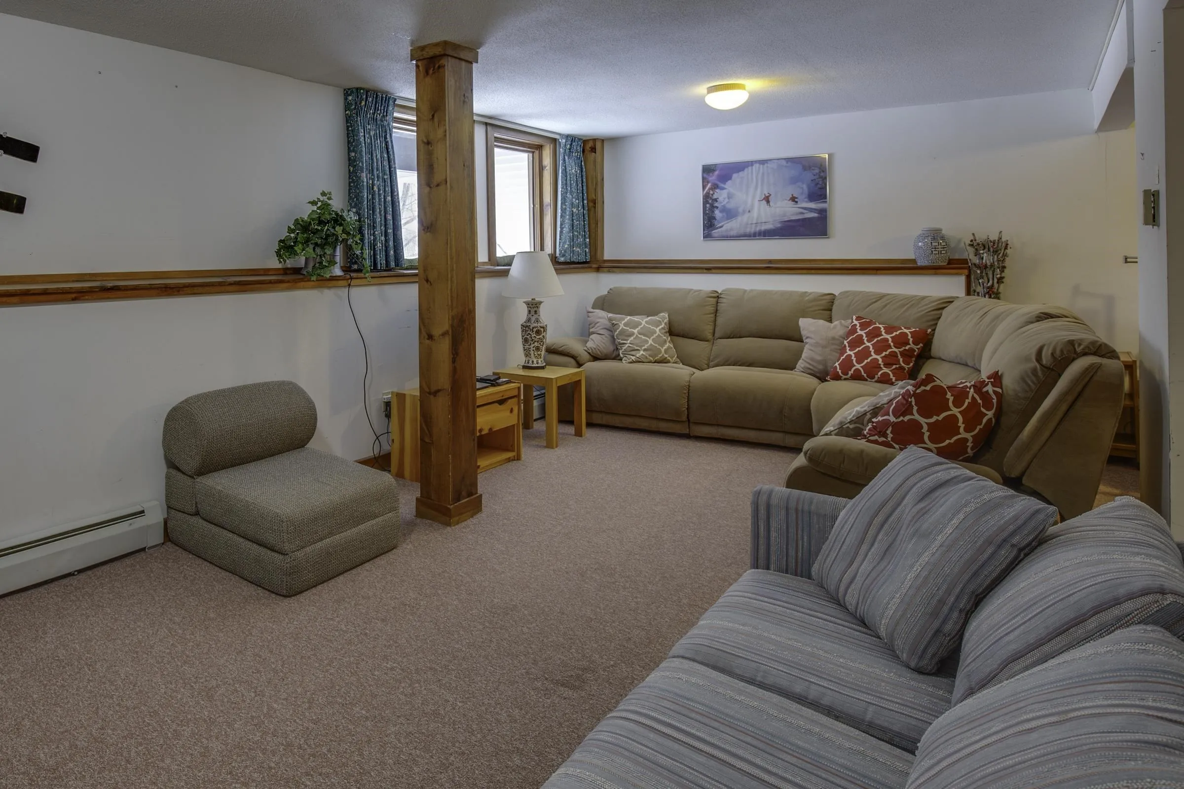 +"Remarks - Public": "This ski in ski out townhouse is spacious and comfortable. Don't be fooled by the 2-bedroom description, except that it allows for lower association fees and taxes than comparably sized 3- and 4-bedroom units! In addition to the master suite on the upper level and nice size bedroom on the entry level, each with their own bath to use, there is a large bonus room in the finished "basement." Use it as your needs see fit. Additionally, there is an extra room on the upper level with egress window allowing more flexibility in the use of space. Sunrise amenities include indoor and outdoor pools, fitness room, indoor and outdoor hot tubs, a sauna, steam room, on-site winter seasonal restaurant and loaner x-country and snowshoe equipment on the adjacent network of trails. This property offers the full complement of summer and winter fun."