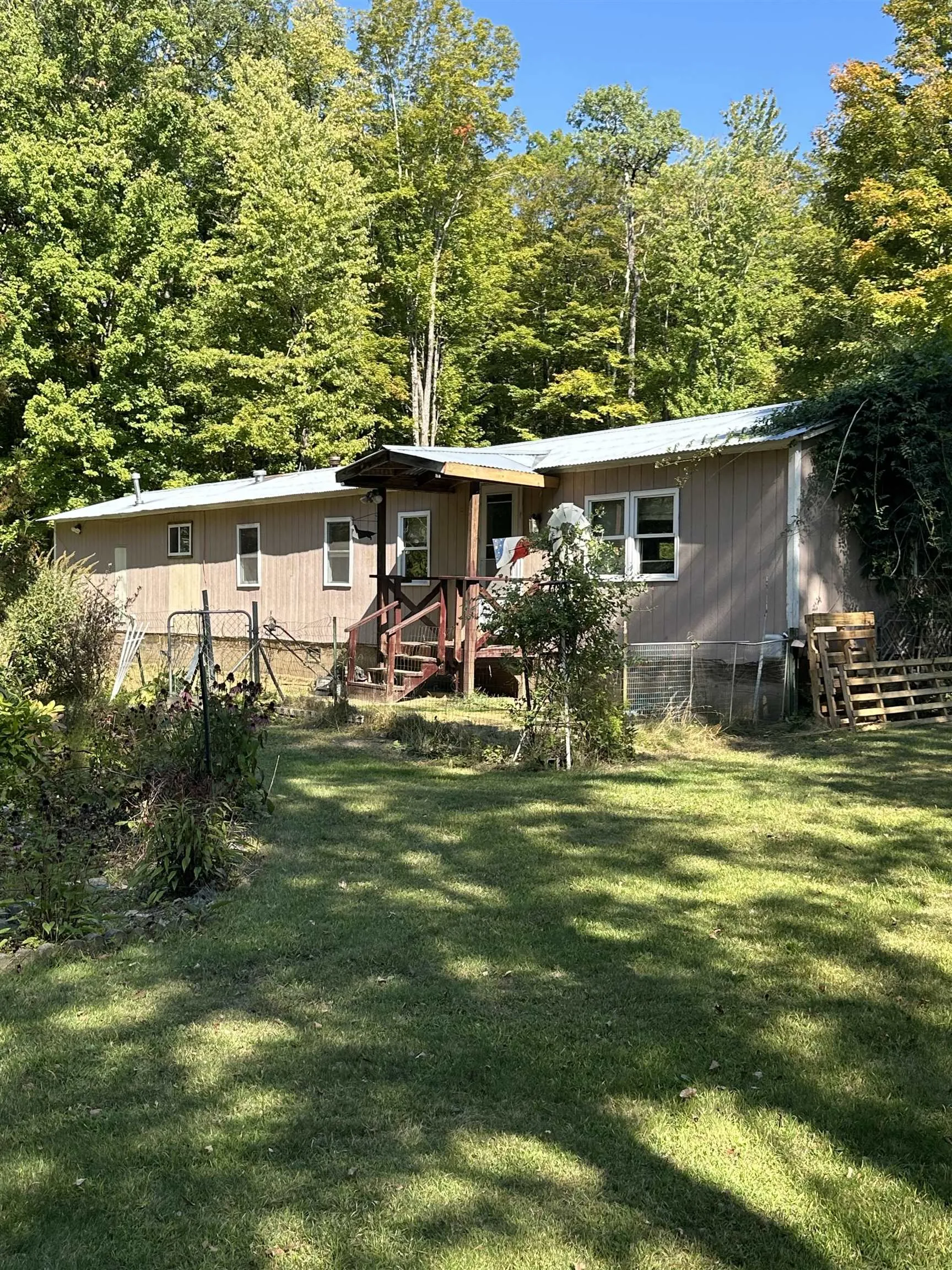 +"PublicRemarks": "Affordable, updated and move in ready! This is a mobile home with upgrades that include modern windows, newer flooring, a spa-inspired bathroom featuring a walk-in shower, contemporary soaking tub with a modern slider door. The electrical has been updated with new box and updated wiring. The layout offers a spacious living room, a spacious kitchen with dining area, and two main bedrooms. Plus, there's a versatile attached room with an outside door. This could be used as a third bedroom, home office, or creative space. Outside, enjoy a large lot perfect for gardening, gatherings, various options. The fenced front area of the yard is ideal for children or pets, and the handy storage sheds adds convenience. Set on a secure pad with tie-downs, this home blends function with comfort. Located just minutes from Fern Lake, Lake Dunmore, scenic hikes, and close to both Middlebury and Rutland—you get the best of peace and accessibility."
