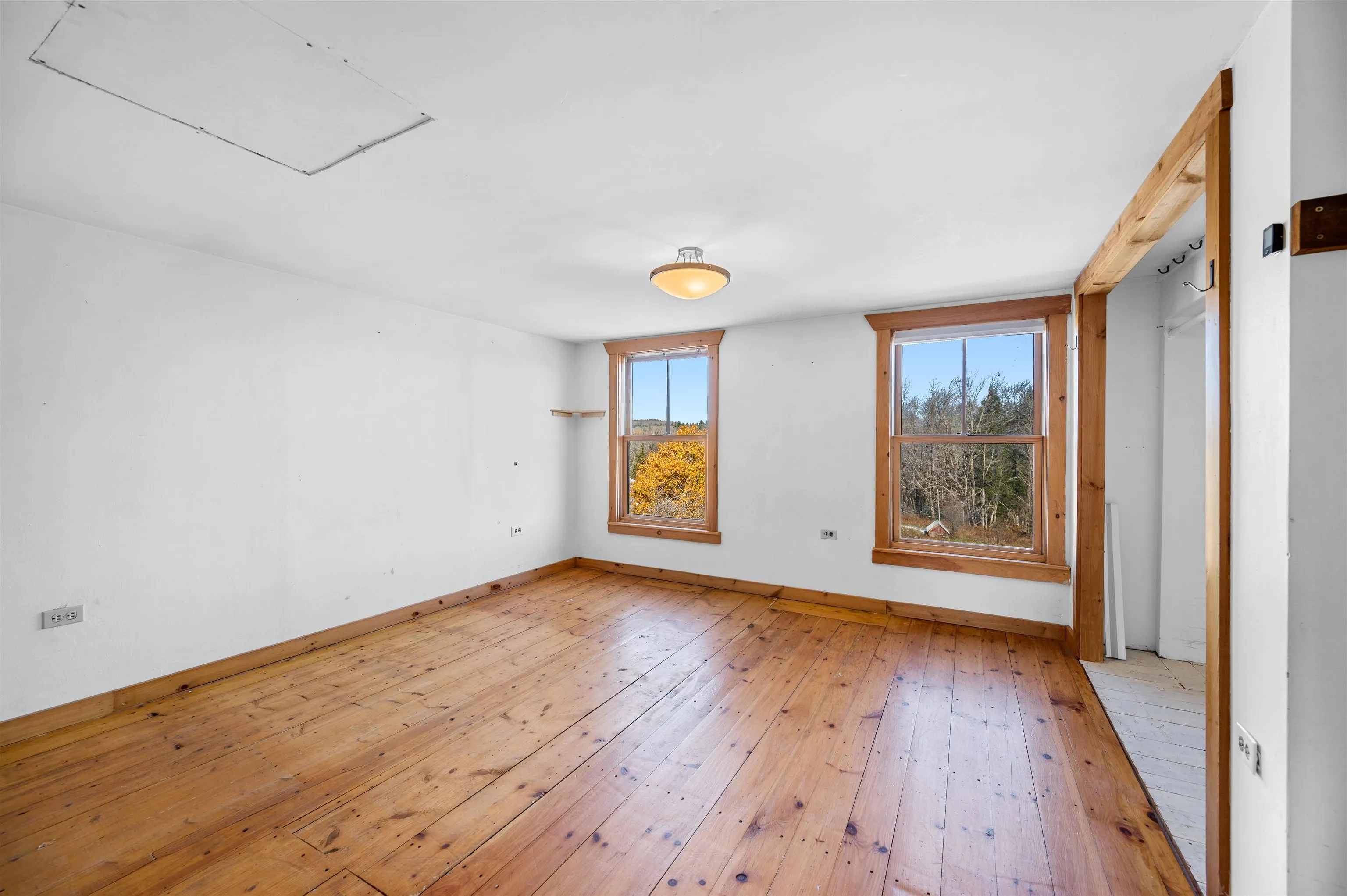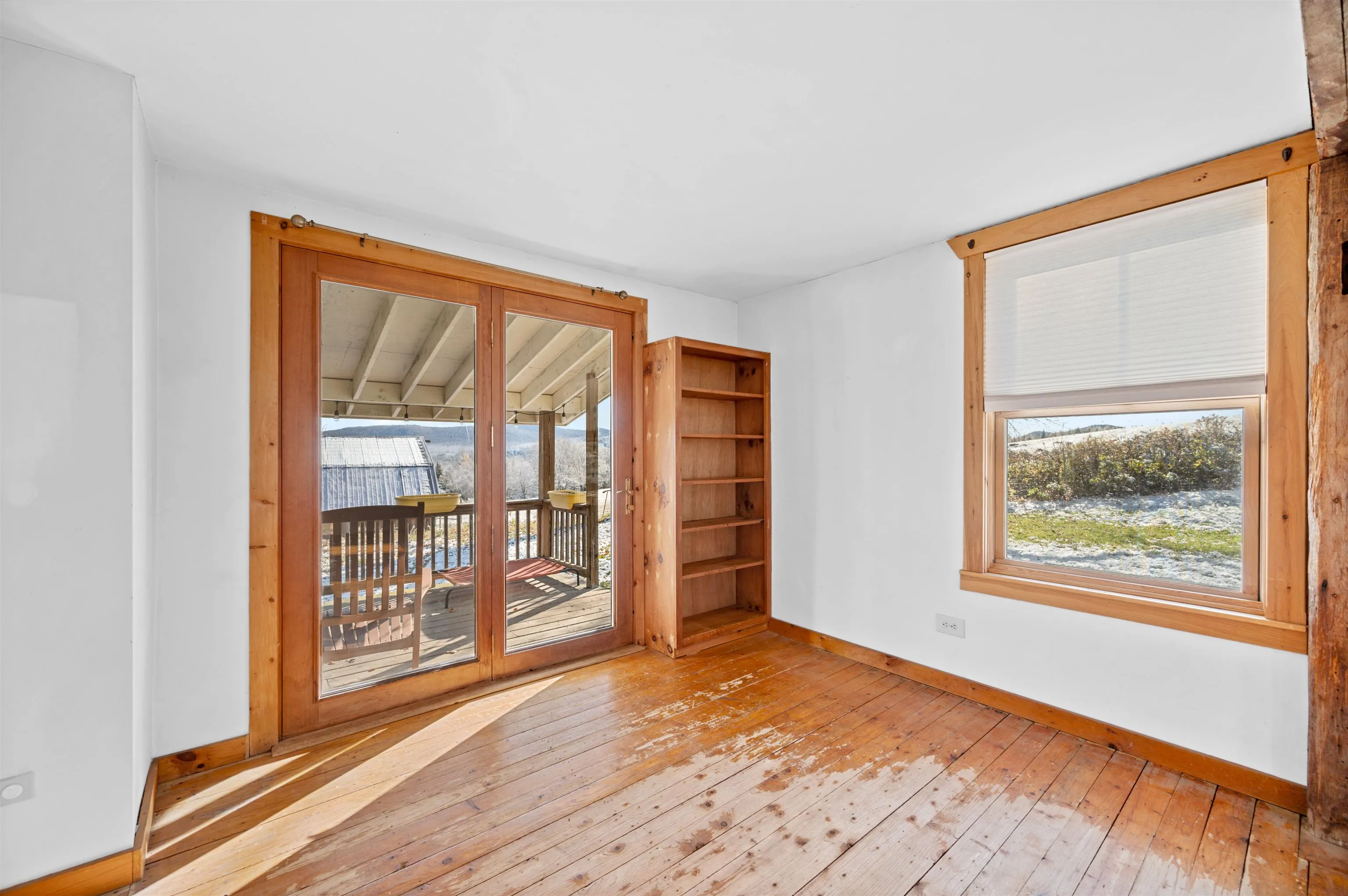 +"Remarks-Public": "Set back from the road on 10 acres of mixed hardwood and evergreen, this newer Plainfield home opens into a bright, high-ceilinged living space where natural light fills the room from multiple exposures. The interior strikes a balance - warm wood tones without going dark, clean lines with character. Hardwood floors throughout. Barn doors slide between rooms. A custom staircase with offset welded spindles connects the main level to the loft above. The main living area flows into the kitchen, and above it, a loft workspace overlooks the open layout. The kind of setup where you can take a video call with trees in the background and actually mean it. Starlink internet is already in place and included. Downstairs, a recently finished addition opens up flexible living space with new windows, ash trim, and fresh paint throughout. A new wood stove anchors the room, and a window seat catches the morning light. The lower level has its own half bath and works as a home office, guest space, or studio. The full bath sits just off the bedrooms with built-in laundry. A heat pump handles heating and cooling across seasons, with propane backup for the coldest nights. Step outside and the property keeps going. A brook runs through the land, audible from inside with the windows open, crossed by a small footbridge. Walking trails wind through the acreage. A fire ring and seating area sit among boulders at the edge of the woods. In the fall, the front row of maples turns - the canopy was selectively opened to let them stand out. In the summer, the trees are set back far enough that the yard stays breezy with few bugs, and after dark the fireflies and stars take over. The home has been well maintained with documented improvements including professionally polished concrete floors and a French drain system that kept the property dry through both recent major floods. Commutable to both Barre and Montpelier while feeling completely removed from town."