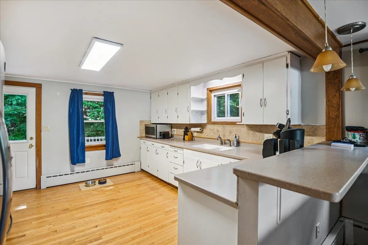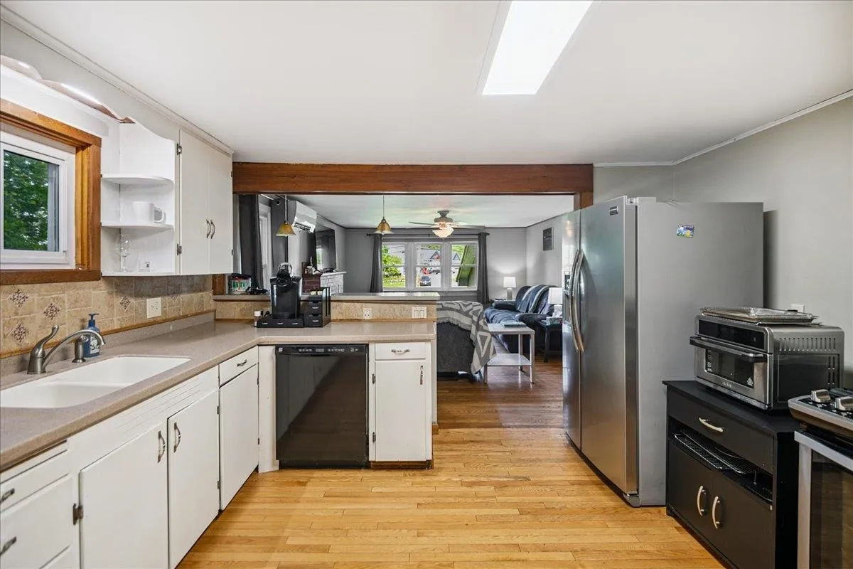 +"PublicRemarks": "FLEXIBLE ZONING, MIXED USE ALLOWING FOR BOTH RESIDENTIAL OR COMMERCIAL OPPORTUNITY. Welcome to this charming 3-bedroom, 1.5-bathroom split-level home in the heart of Middlebury, VT. Set in a peaceful neighborhood surrounded by trees and well-spaced homes, this property offers both privacy and convenience. Step onto the inviting covered front porch and make your way inside to a cozy living room with beautiful hardwood flooring and a classic brick fireplace. The kitchen features updated appliances, including a stainless steel refrigerator and gas range, plus ample cabinet space. The sunny dining area flows nicely into the spacious back deck—recently painted with brand-new railings—perfect for outdoor meals or relaxing after a long day. Big, airy bedrooms provide plenty of space for rest or work-from-home comfort, all conveniently located near a full bathroom and generous storage. The lower level includes a partially finished room, perfect for a game room, gym, or family hangout, plus a versatile bonus area with direct access to the garage—ideal for snowy Vermont mornings. Outdoor updates include replacement of several fascia boards and newer siding around the chimney. Just steps from the TAM Trail for hiking and dog walks, and within walking distance to popular local restaurants, this home also enjoys easy access to town amenities like grocery stores, shops, and workplaces. A wonderful blend of quiet living with town convenience—this Middlebury gem won’t last long!"