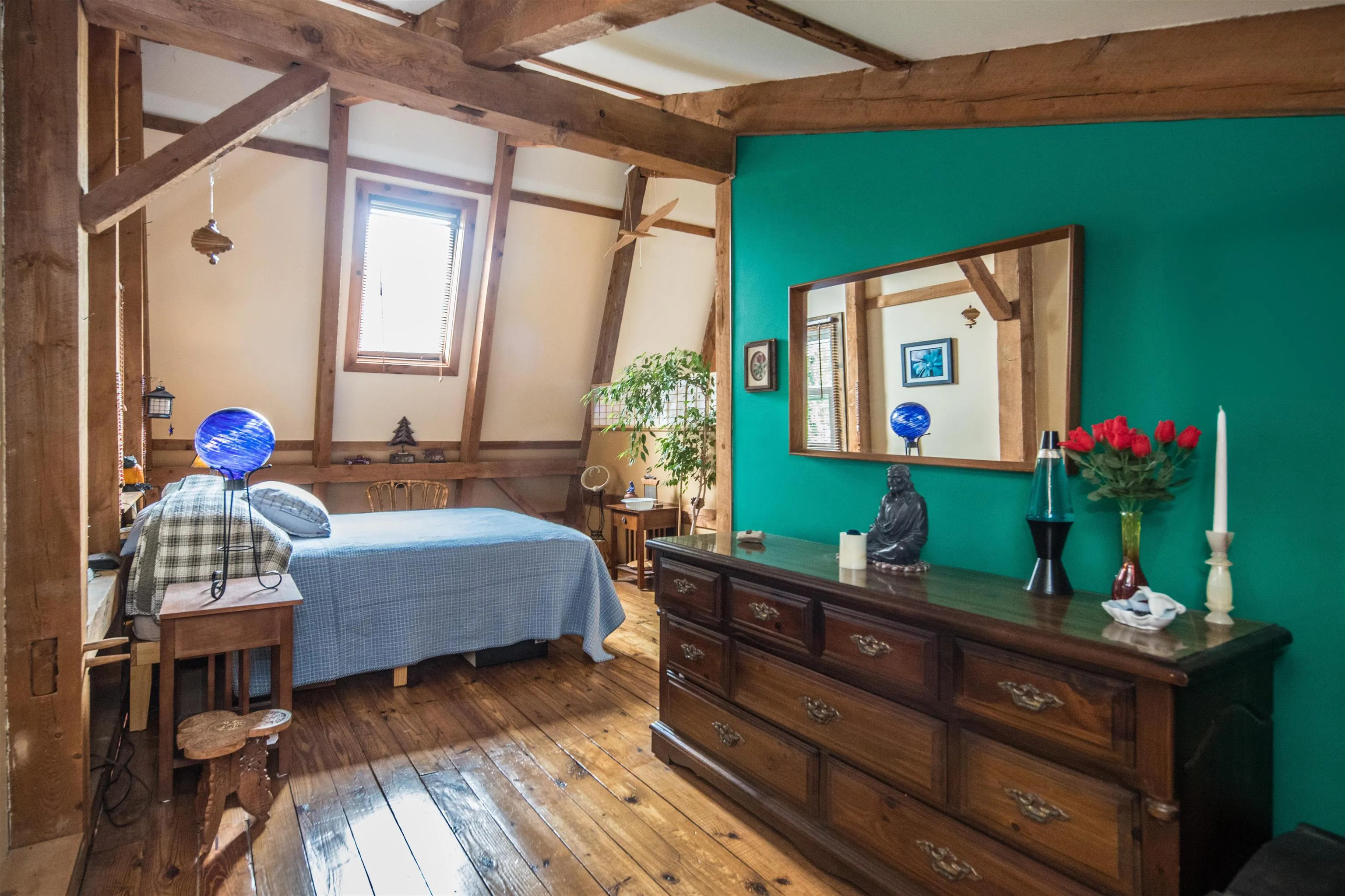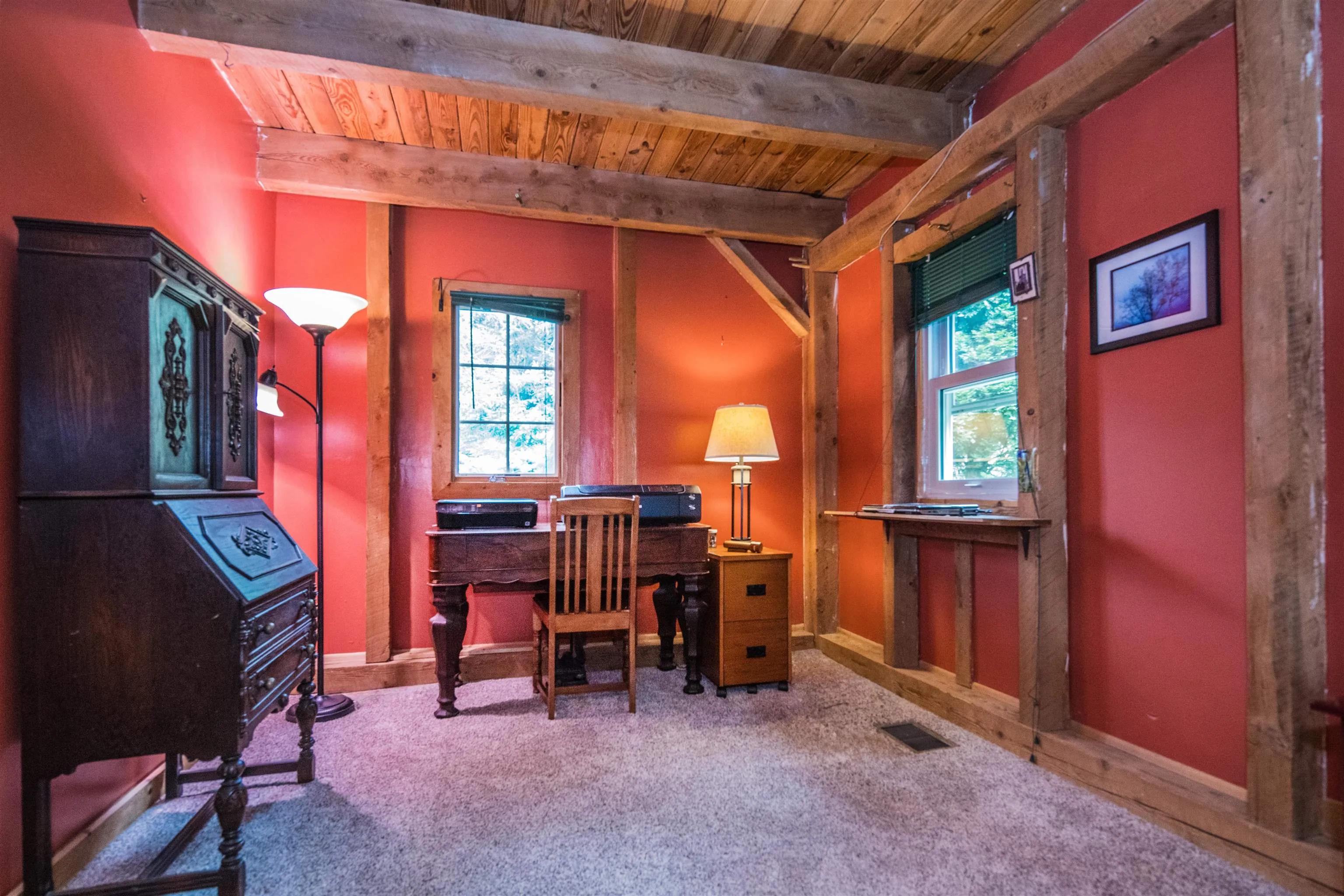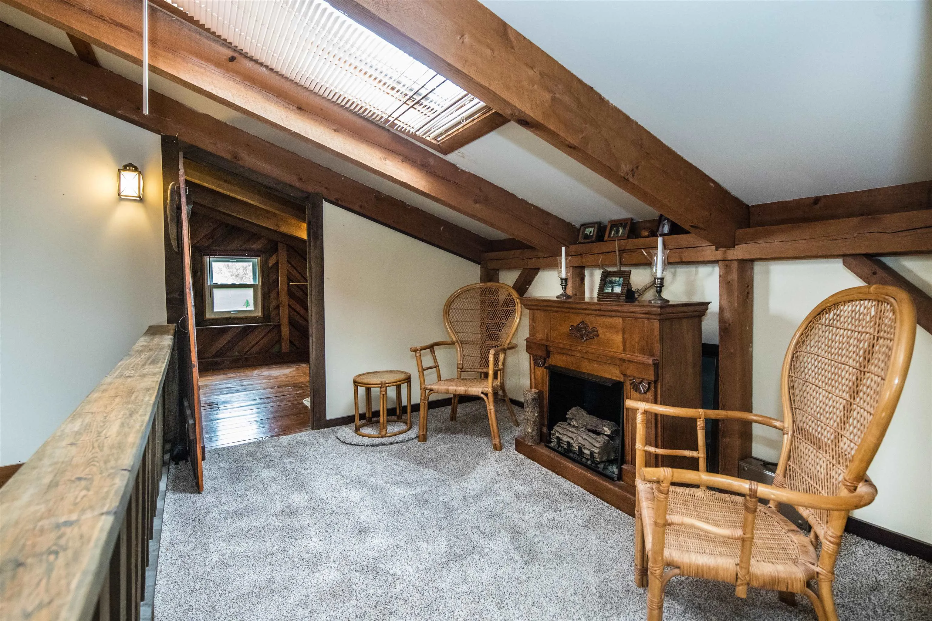 +"Features - Interior": "Blinds,Cathedral Ceiling,Ceiling Fan,Dining Area,Fireplace - Wood,Fireplaces - 1,Kitchen/Dining,Natural Light,Natural Woodwork,Skylight"
