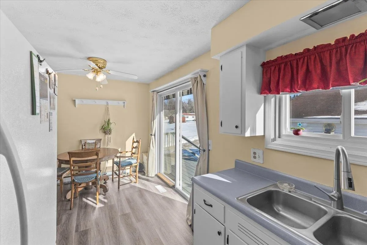 +"PublicRemarks": "Charming home in a fantastic Milton neighborhood! Discover this inviting 2-bedroom, 1-bath Ranch-style home, perfectly situated in a sought-after Milton location. Step inside to find a warm and welcoming eat-in kitchen with a designated dining area, complete with sliders leading to the spacious rear deck—equipped with an electric awning for added comfort while enjoying your backyard views. The spacious living room is filled with natural light and features motorized blinds, while the two well-sized bedrooms provide a cozy retreat. The updated full bath boasts dual vanities and a stylish glass-enclosed shower. A separate mudroom with tile flooring offers practicality and convenience. Additional living space can be found in the partially finished basement, which includes a bonus room, a ¾ bath, and a utility/storage area. Outdoor enthusiasts will appreciate the expansive front and back decks, a partially fenced-in yard, a storage shed, pergola, and a detached 2-car garage. The property also features a newer natural gas furnace, an on-demand hot water heater, and leased solar panels, enhancing energy efficiency. Don't miss this wonderful opportunity to own a home in a fantastic location, located close to schools, restaurants, grocery, shops, I-89 and so much more!"