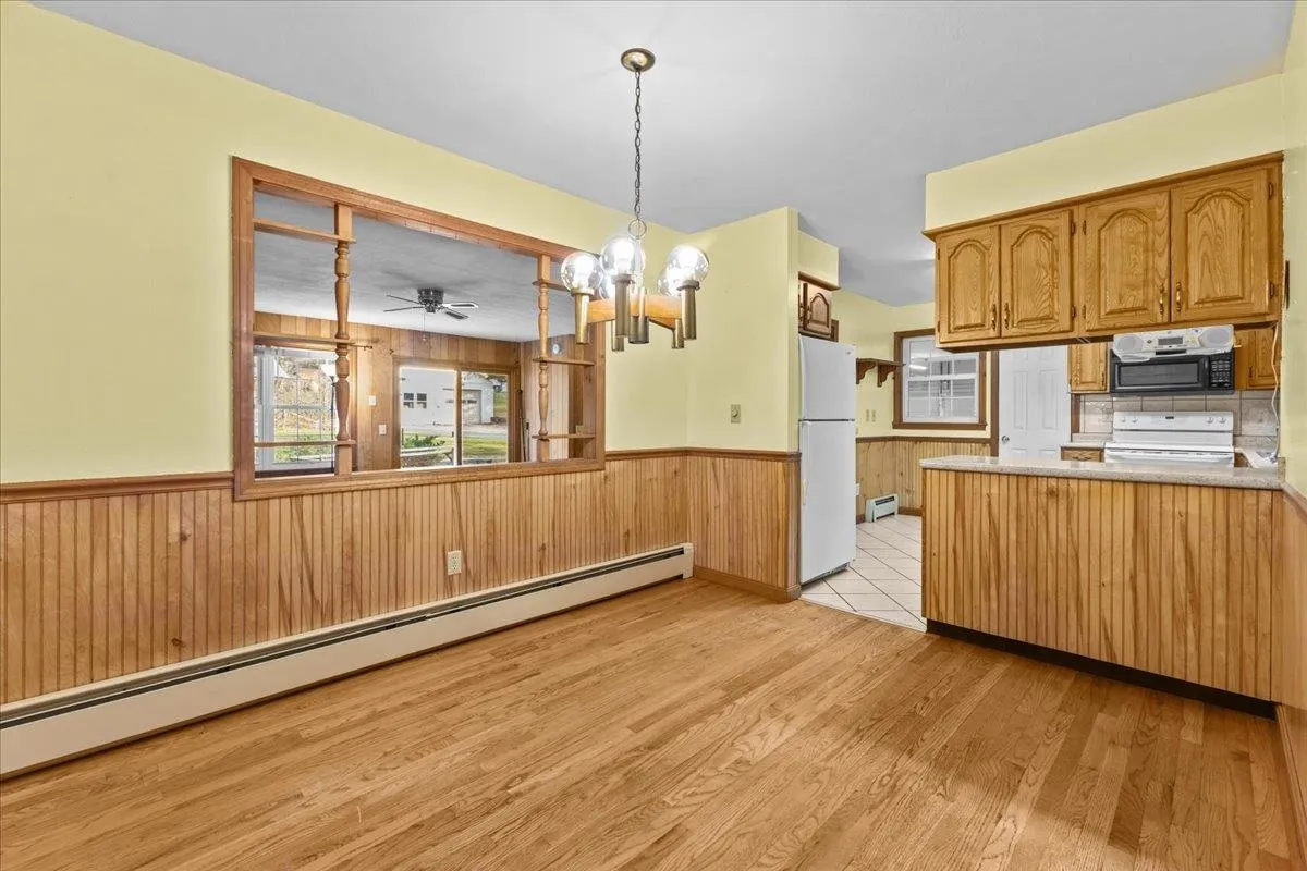 +"PublicRemarks": "Nestled on 5.88 secluded acres in Milton, this charming cape-style home has it all. The first floor shares two living spaces, a kitchen, dining room, bathroom and primary bedroom. Upstairs you'll find two large bedrooms and a second bathroom. This unique parcel hosts hardwood floors throughout and an unfinished basement, great for storage and future potential. This property is ideal for those seeking privacy and space; you'll love the detached, heated and finished 2-car garage which is perfect for hobbyists or additional storage. Outdoor enthusiasts will also appreciate the expansive pole barn with electricity, a garden shed, and a lean-to, offering endless possibilities for projects, storage, or livestock. This property invites you to enjoy the peace and privacy of Vermont living, all within close proximity to town amenities. Check it out to see why it's the perfect place to call home!"
