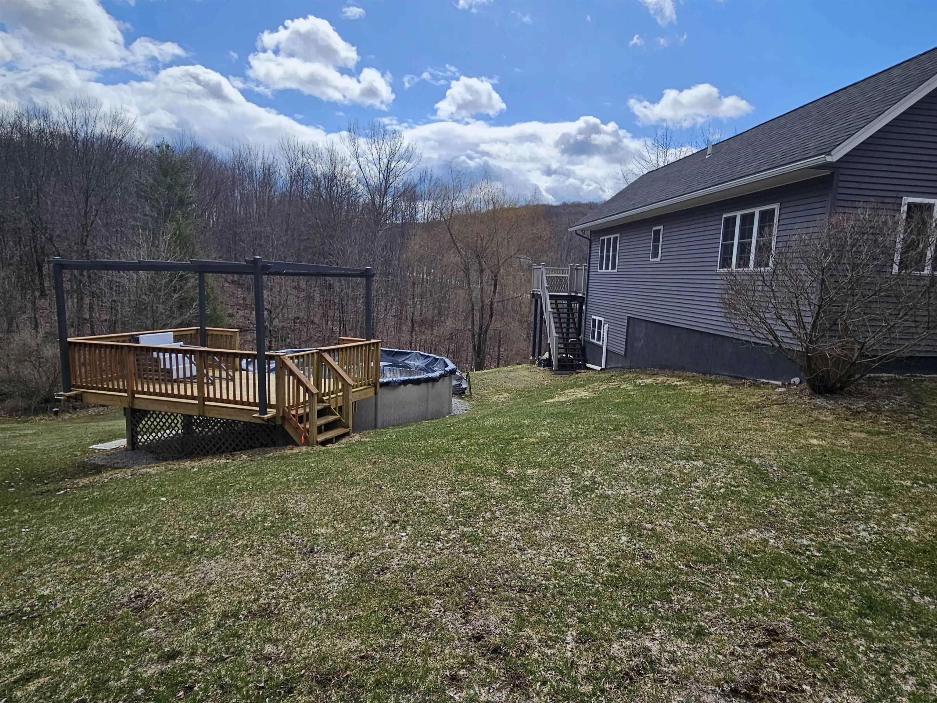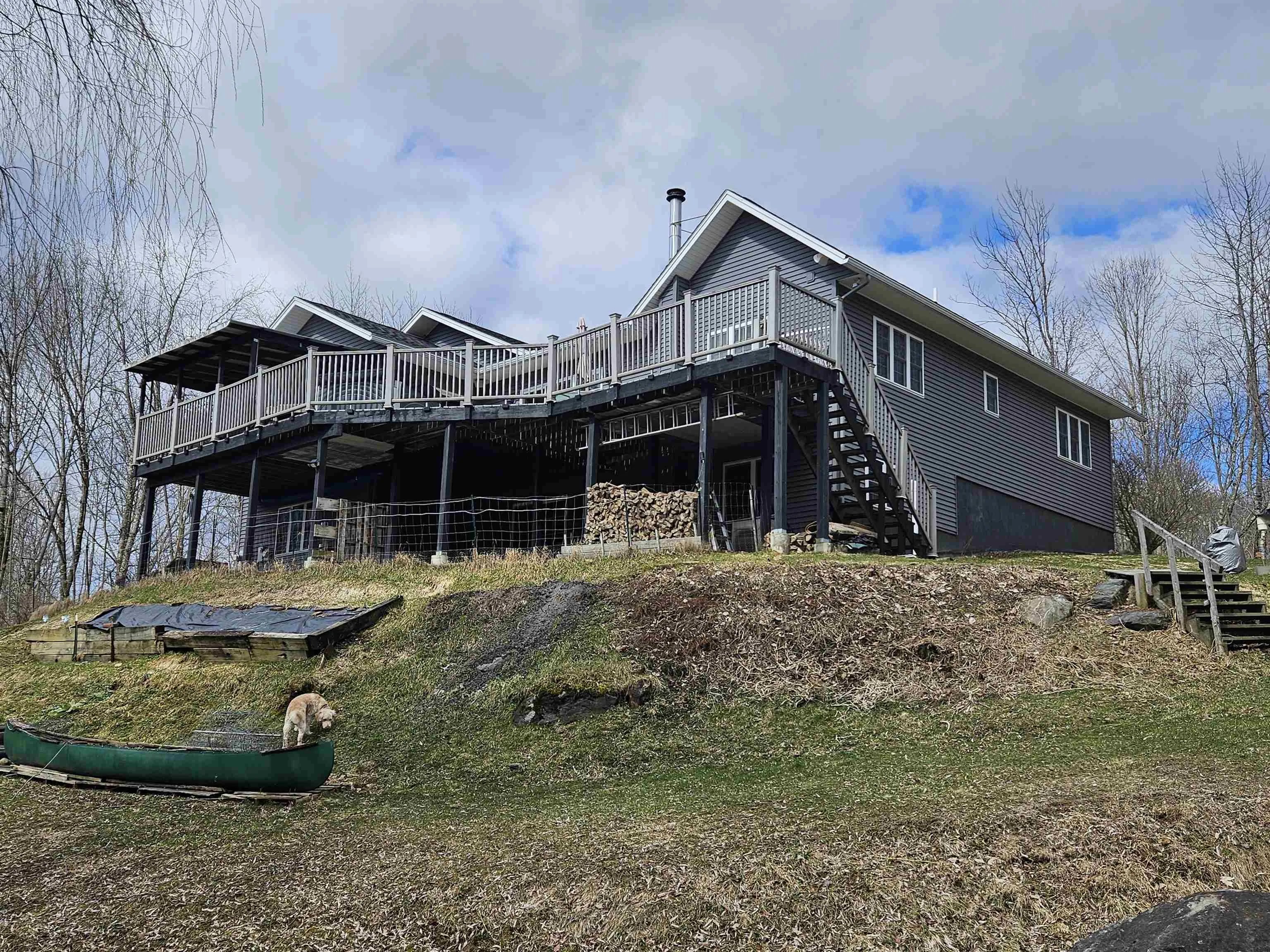 +"PublicRemarks": "Welcome home to this light-filled, single-level retreat on 11.35 acres with a babbling brook and maple trees—perfect for gatherings, bonfires, and outdoor fun. The efficient home offers 3 bedrooms, 3 full baths with radiant heat floors, first-floor laundry, and a recently finished walkout basement with a wood stove and heat pump for heating and A/C. Additional highlights include a spacious two-car garage, ample storage sheds, a large yard with 3 acres of invisible pet fencing offering our friends plenty of room to roam and play, an above-ground pool with a 12x16 deck and arbor. Owners have enjoyed 19 years with no ticks or fleas on their pets. Relax on the main-level deck overlooking the yard, enjoy low electric costs with owned solar panels, Appreciate a peaceful country setting close to schools, amenities, I 89, and Lake Champlain."