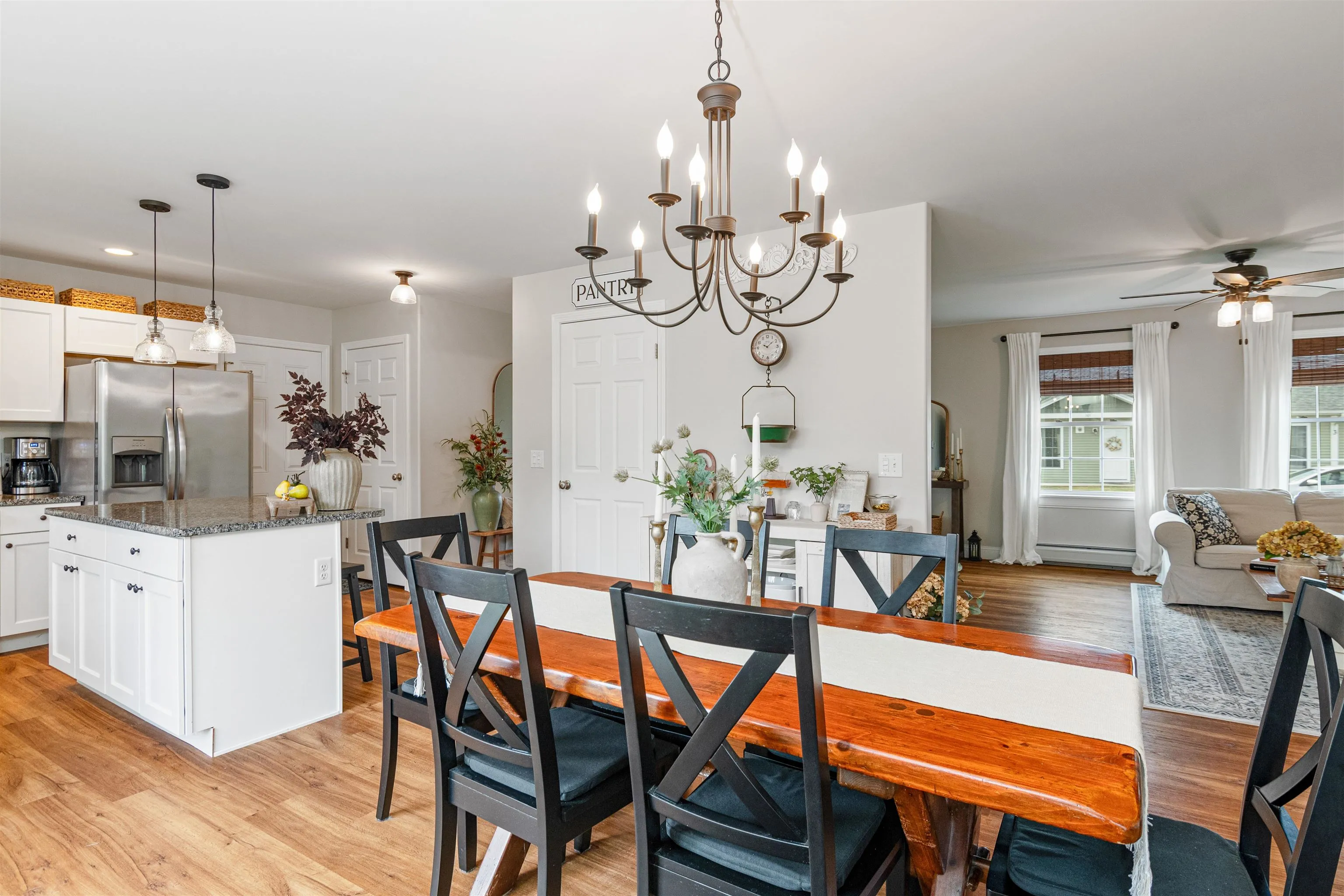 +"PublicRemarks": "Bright, open, and inviting, this stunning 3 bedroom, 2.5 bathroom Milton Colonial built in 2020 is ready for its second set of owners! Upon entry from the lovely covered front porch, step into the open-concept main floor bathed in natural light. The kitchen offers granite countertops, a center island, pantry, and stainless steel appliances; sure to make cooking a breeze. Overlooking the backyard, the dining area allows easy access to the back patio via sliding glass doors for seamless indoor/outdoor living. Open to the dining space, the living room is tranquil and cozy- a perfect place to unwind. The main level also features a convenient ½ bathroom, access to the attached two-car garage, and entry to the unfinished full basement with the potential for additional finished space. Upstairs, find the primary suite, boasting large windows, a ¾ ensuite bathroom, and a walk-in closet. Two other well-sized bedrooms, hall laundry, a full bathroom, and an unfinished space above the garage (great potential for another finished bonus space!) complete the second floor. Outside, enjoy a flat fenced-in backyard including your very own fire pit and a patio for entertaining! Additional home improvements include new gutters in 2021 and new lighting fixtures and faucets throughout in 2021/2022. Centrally located to shopping and amenities in the village of Milton yet just minutes away from I89 for easy commuting! Book your showing today and bask in the beauty of this impeccable home!"