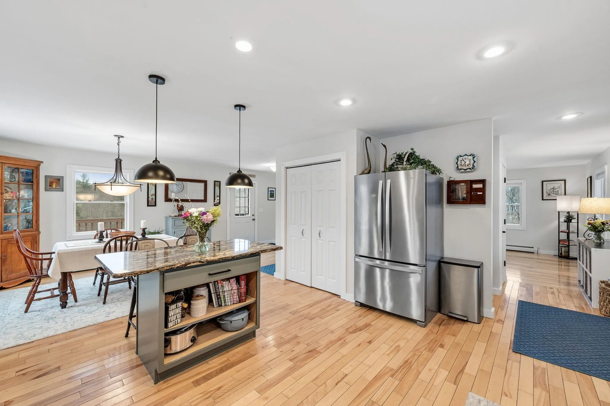 +"PublicRemarks": "Perched in the hills of Norwich, Vermont, this curated "Scandinavian-esk" property offers exceptional contemporary living surrounded by nature's inspiring beauty. Architecturally redesigned by Smith and Vansant in 2010, this home offers an open floor plan with easy gathering spaces bathed in natural light and warmed by the Finnish Tulikivi soapstone stove. The French doors open to a patio, an airy deck, and three season porch which overlook the property's park-like setting. The second and third floors offer multiple bedroom configurations as well as a lovely Primary bedroom with a walk-in closet and a private deck for morning coffee. Stroll along stone pathways through the extensive perennial gardens designed by Ben Falk of Whole Systems Design. Invite friends and family to stay in the contemporary studio guest cottage which overlooks the apple and pear orchard, or in the rustic Writer's Cabin with a wood stove, sleeping lofts, Swedish composting toilet, and kitchenette. The barn offers two parking bays, extra storage, and a workshop. This idyllic 10-acre property with broad Southern exposure and 37 solar panels (a near-net-zero home) is bordered on three sides by the Norwich Town Forest, Upper Valley Land Trust, and National Forest, offering exceptional privacy and direct access to walking, hiking, and skiing trails. Located less than 20 minutes from Dartmouth College/Hanover, NH and VT Law School, 2+ hrs to Boston, 4+hrs to NYC. Showings start May 1, 2026"