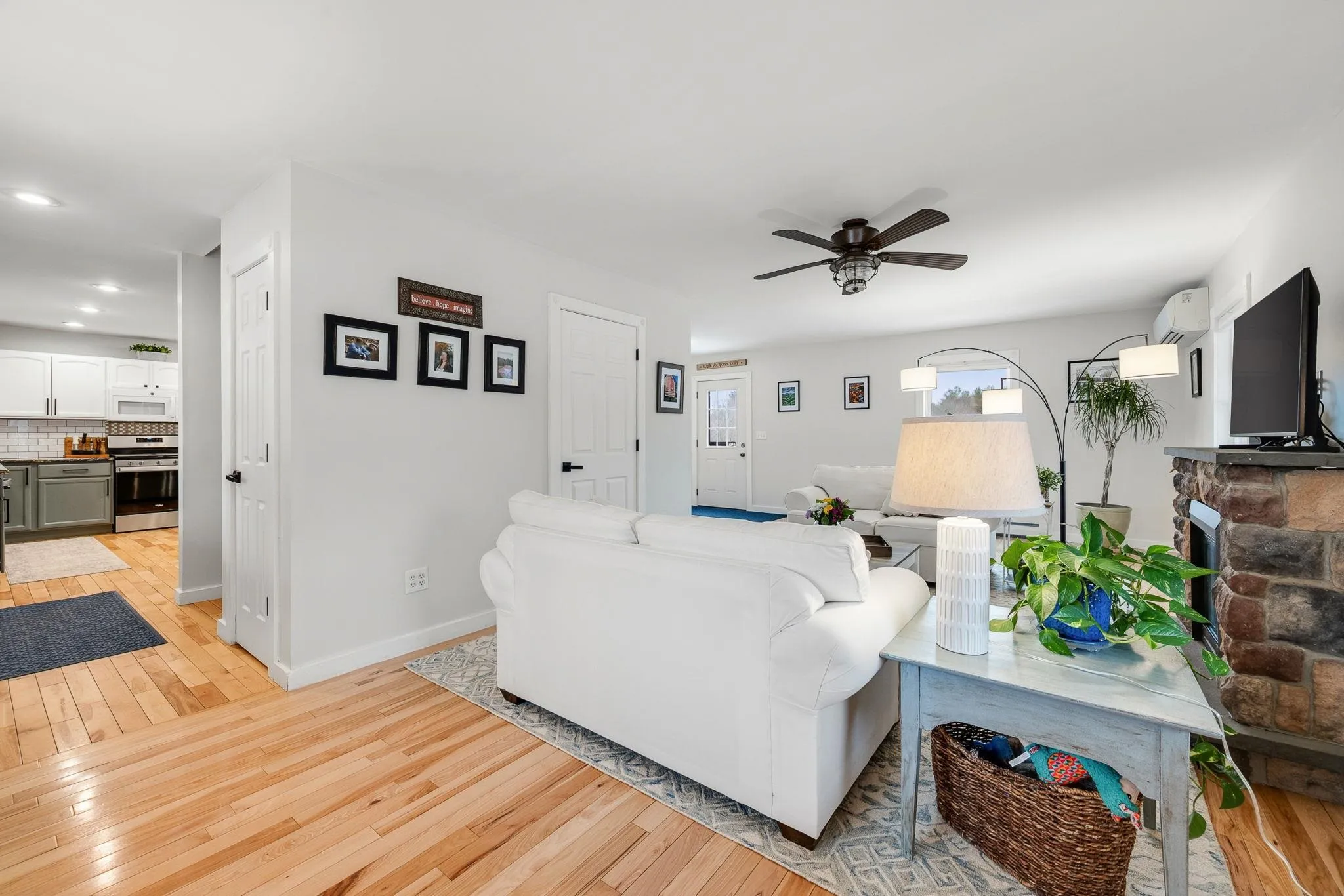 +"PublicRemarks": "Welcome to 815 Hardscrabble Road in Monkton, a turnkey home set on a picturesque 3.33-acre lot. Offering over 1,700 square feet of thoughtfully designed living space, this 3-bedroom, 3-bath property blends comfort, functionality, and style in a quiet Vermont setting. The main level features hardwood flooring throughout and a spacious, updated kitchen with stone countertops and newer stainless steel appliances. The open-concept layout creates a seamless, circular flow between the kitchen, dining, and living areas, ideal for both everyday living and entertaining guests. Step outside onto the expansive wraparound deck, where you’ll enjoy morning sunlight, views of the Hogback Mountains, and overlook the fully fenced backyard. Upstairs, the primary suite offers a spacious layout with an en suite bath and a large walk-in closet. Two additional bedrooms and a full bath complete the second level. The walkout lower level is partially finished, providing flexible space for a home office, gym, or recreation area, along with ample storage and a convenient mudroom/gear zone. Extensive updates make this home truly move-in ready, including two newer mini-split heads, one on each level, updated light fixtures, fresh paint throughout, new carpeting on the stairs and second floor, window treatments, and significant exterior landscaping improvements. The property also includes an EV vehicle charger. Outdoor enthusiasts will appreciate easy access to Raven Ridge Natural Area, Monkton Forest, Little Hogback Forest, and Mount Philo State Park. Conveniently located just 20 minutes to Vergennes and Middlebury, and approximately 35 minutes to Burlington, Burlington International Airport, and University of Vermont Medical Center. Showings begin immediately. Don’t miss your opportunity to own this well-maintained Monkton property."
