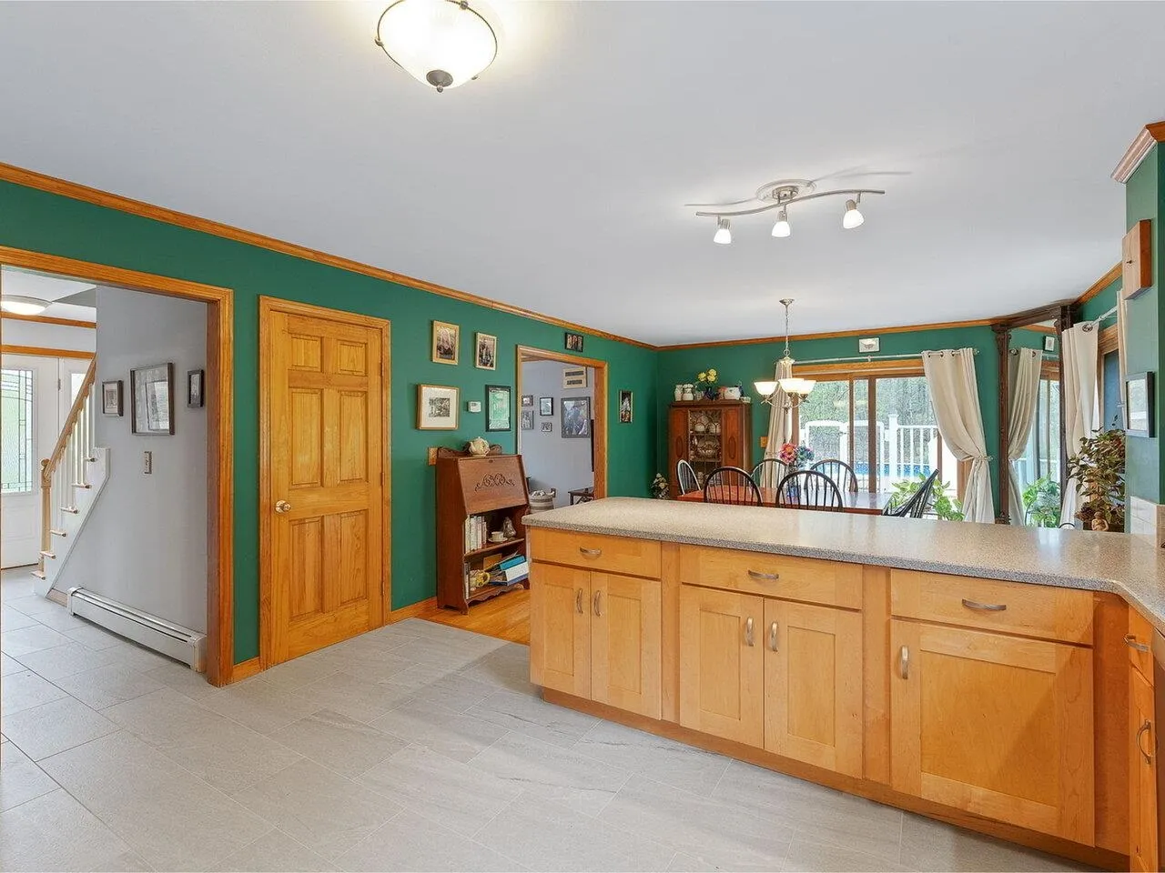 +"PublicRemarks": "Situated on 5 acres, this Monkton cape-style home offers it all! This 3-bed, 2.75-bath home boasts a welcoming layout and beautiful updates throughout. Enter through the garage into the mudroom that doubles as a laundry room, where new tile flooring flows throughout the bathroom and kitchen. The newer induction range matches the ensemble of stainless-steel appliances making the kitchen shine! The open layout is just the start of entertainment opportunities at this home! Stay comfortable all year-round with AC from the heat pumps in the summer and heat from the wood stove in the winter! The first floor also has a sun-filled bonus room with a closet with attached 3/4 bath. The primary bedroom is on the left at the top of the stairs with an en suite full bath and spacious closet. A second full bath is in the hall, with two additional bedrooms to complete the cozy second level. Half of the basement is finished, great for a home gym or office, etc. The unfinished portion of the basement is perfect for the utilities, a workshop, and storage. Recreational possibilities abound at this home. The wrap-around porch and above ground pool are ideal hangout spots in the summer! The hill in front of the home is perfect for winter sledding! The home borders 450 acres of the new Monkton Town Forest, with trails and diverse forestlands. This conserved land also connects to the Watershed Center in Bristol, extending the possible habitats to explore from your own backyard!"