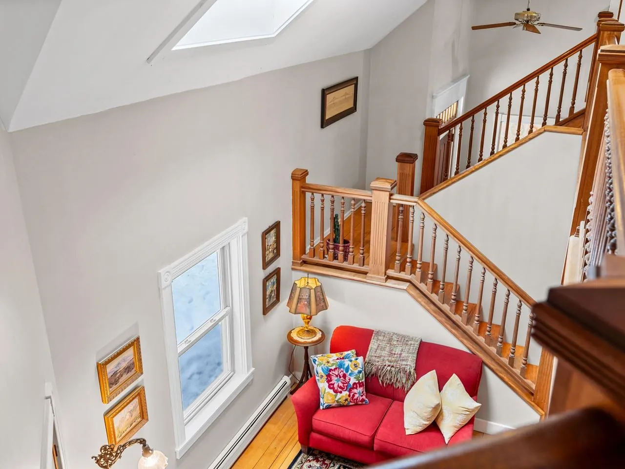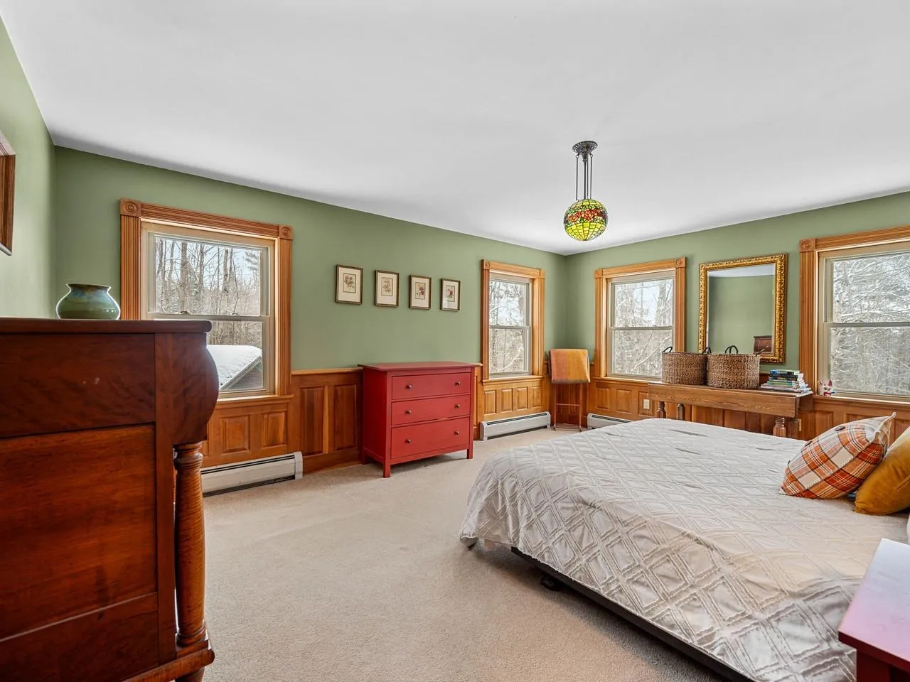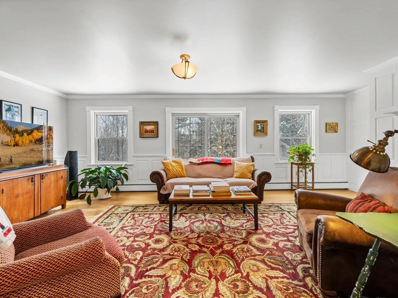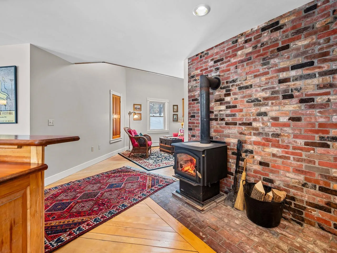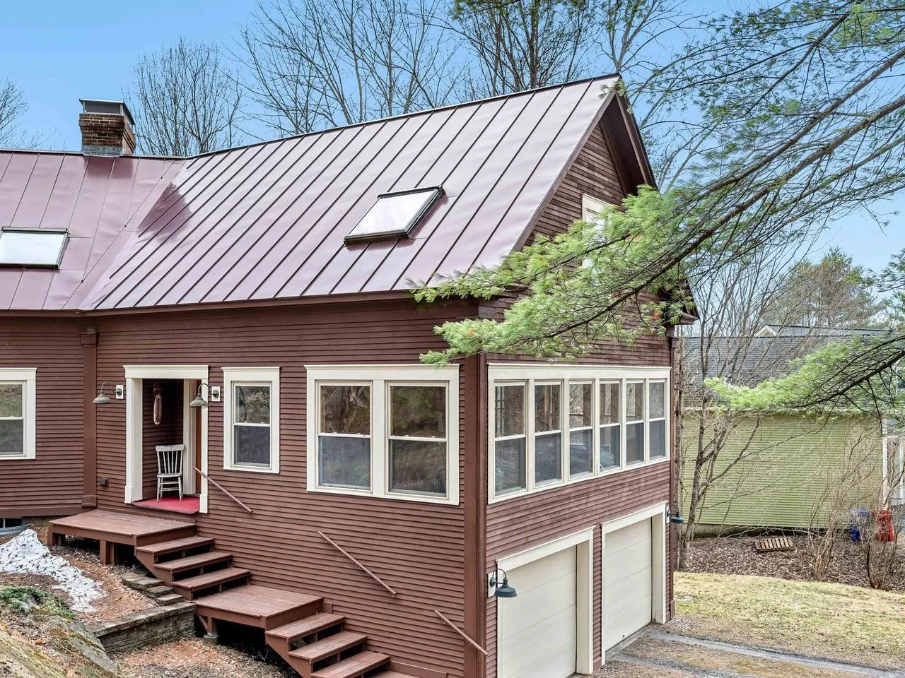 +"PublicRemarks": "Spacious, thoughtfully designed home situated at the end of a tranquil cul-de-sac. Whether you're seeking a great neighborhood, privacy, or room for guests, this property delivers it all. Soaring cathedral ceilings, skylights, and hardwood floors contribute to the lovely interior. The open-concept design features a stylish kitchen which flows seamlessly to the dining space as well as a cozy sitting area...just ideal for gatherings. A wood stove adds to the cozy ambiance. The large living room offers warmth and character with its wood-burning fireplace and extensive woodwork details, while the enclosed porch provides the perfect spot to relax. The first floor is completed with a den that is currently used as a bedroom, full bath, and mudroom. The second floor includes a primary bedroom suite with walk-in closet and 3/4 bath, along with two more bedrooms and another 3/4 bath. The finished living space continues in the walkout basement, highlighted by a spacious family room, bedroom, 1/2 bath, and laundry area. Exceptional energy efficiency upgrades include owned solar panels, Tesla battery power wall, updated insulation, and 200-amp electric. Charge Point electric car charger in the double-car garage. Buderus boiler and standing seam roof add to the peace of mind. 3/4 of an acre of its own, plus enjoyment of Association's common land with pond. Enjoy the serene surroundings yet be downtown and on I-89 in mere minutes."