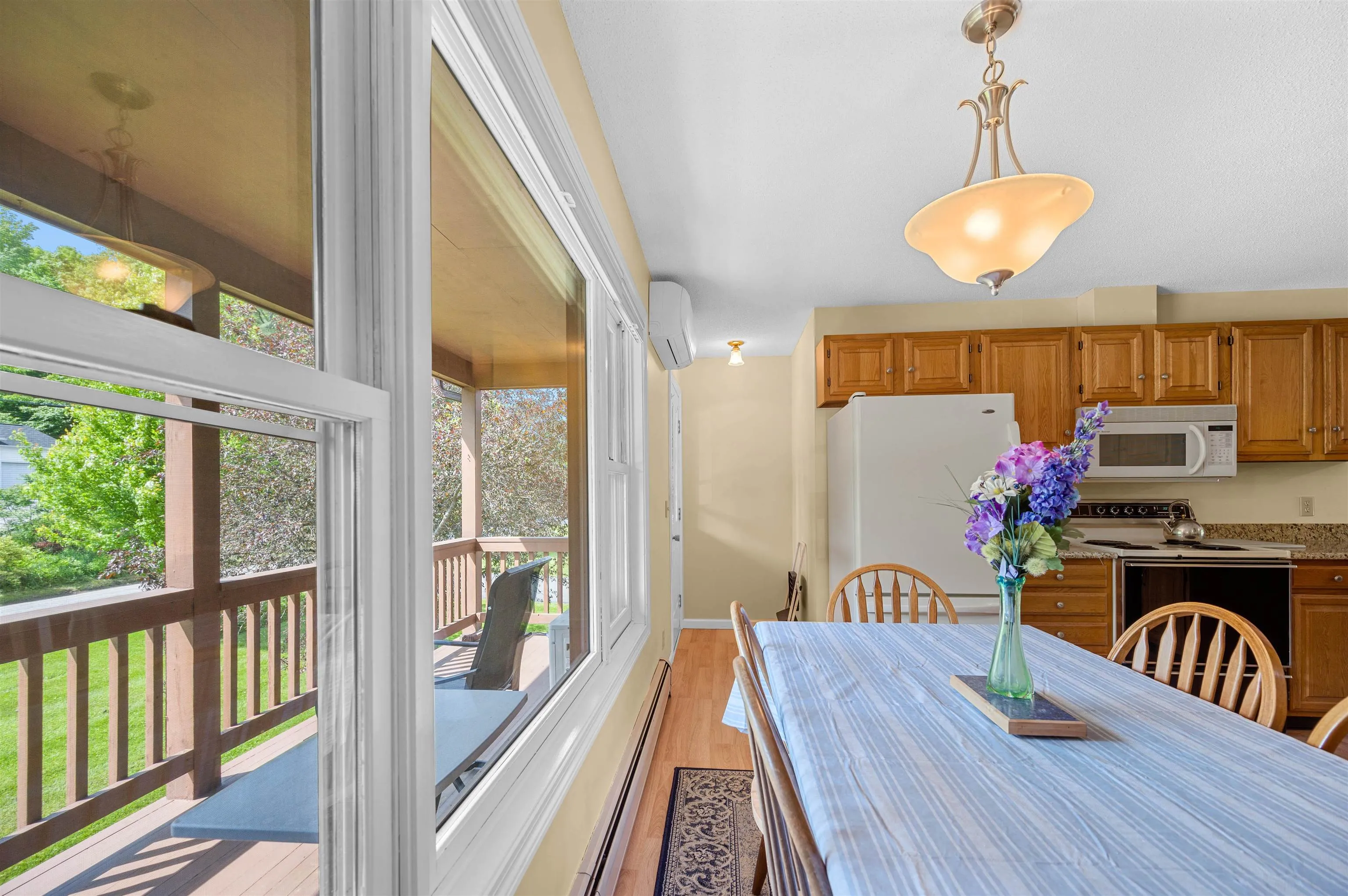 +"PublicRemarks": "Tucked away on a quiet street in a well-maintained neighborhood of homes and condominiums, this second-floor garden-style condo offers timeless one-level living with generously sized, open spaces designed for the way you live. The spacious living room and large kitchen-dining area each open to separate porches, creating seamless connections to the peaceful surroundings. The thoughtful floor plan includes two bedrooms, separated by a full bath with a laundry closet for added convenience. Stylish updates include granite countertops in the kitchen, upgraded six-panel doors, and energy-efficient Harvey double-hung windows with thermal pane glass. A mini-split heat pump provides efficient heating and cooling, while supplemental heat and hot water are provided by an oil-fired hot water baseboard system. Step outside to enjoy a brand new Trex deck—durable, low maintenance, and perfect for relaxing outdoors. A finished garage adds valuable storage and utility space to this complete package. Located just 2.25+/- miles from downtown Montpelier and minutes from Central Vermont Medical Center and I-89 Exit 7, this home offers both comfort and convenience."