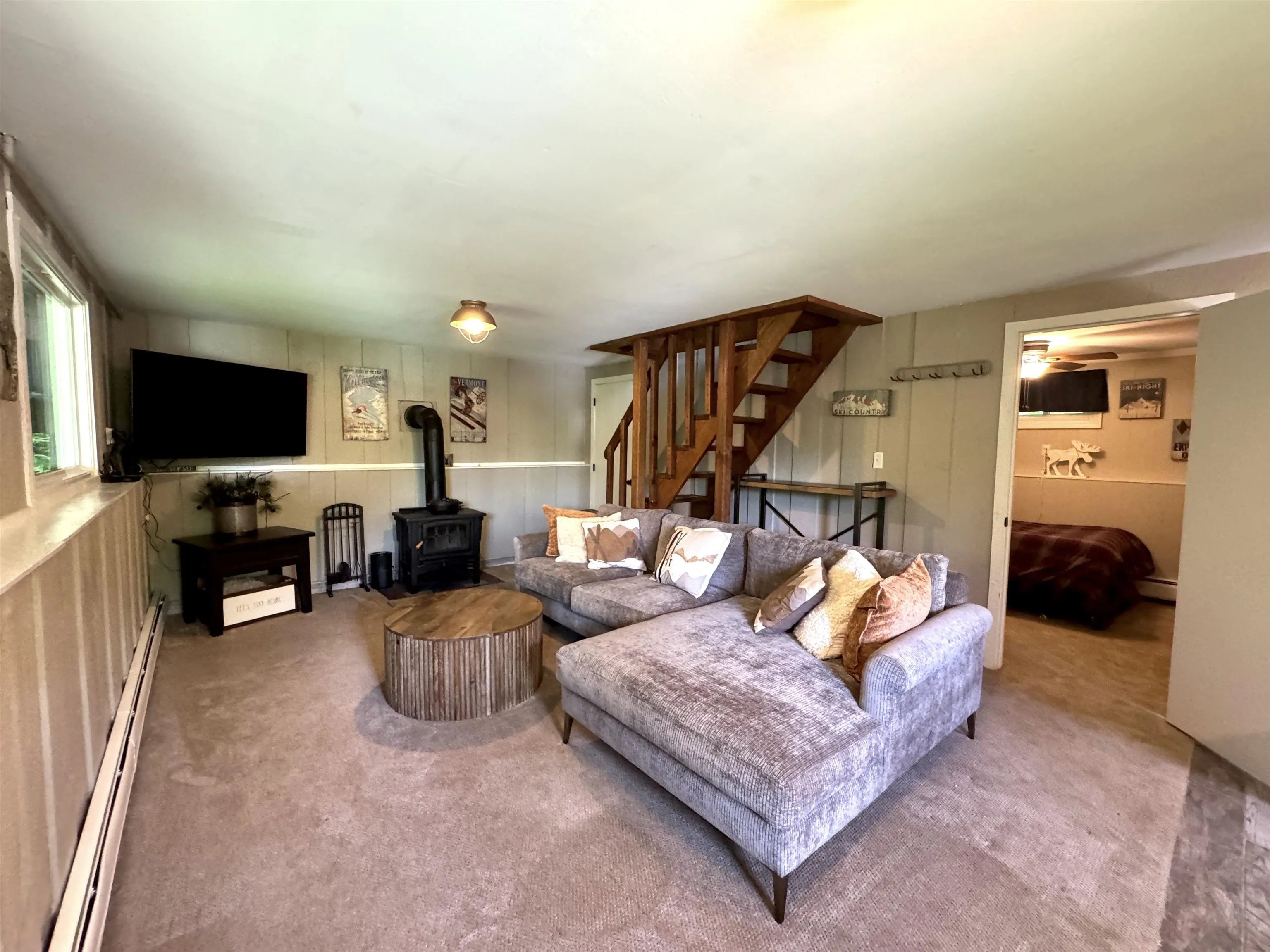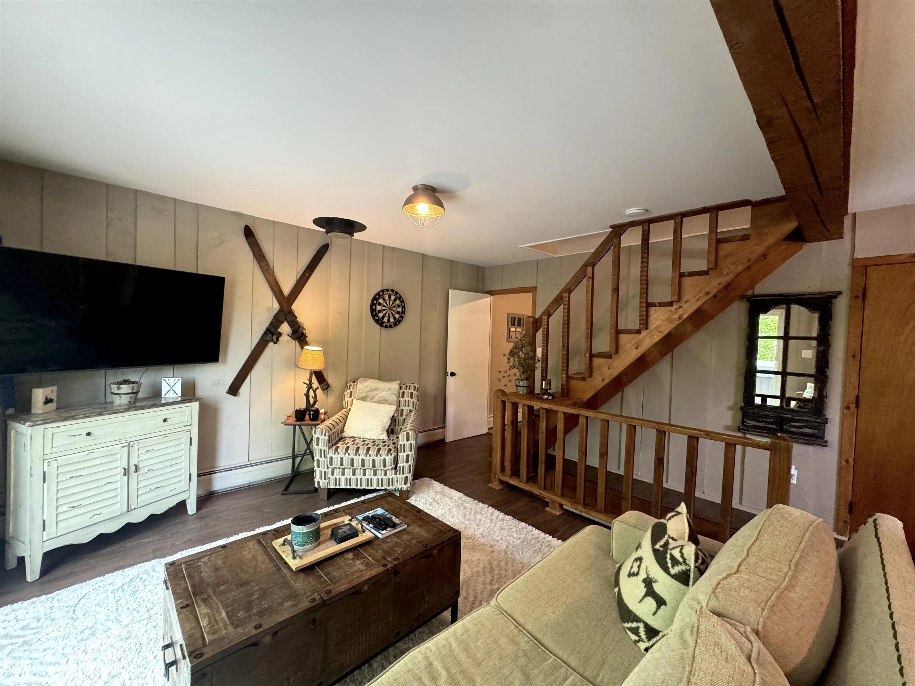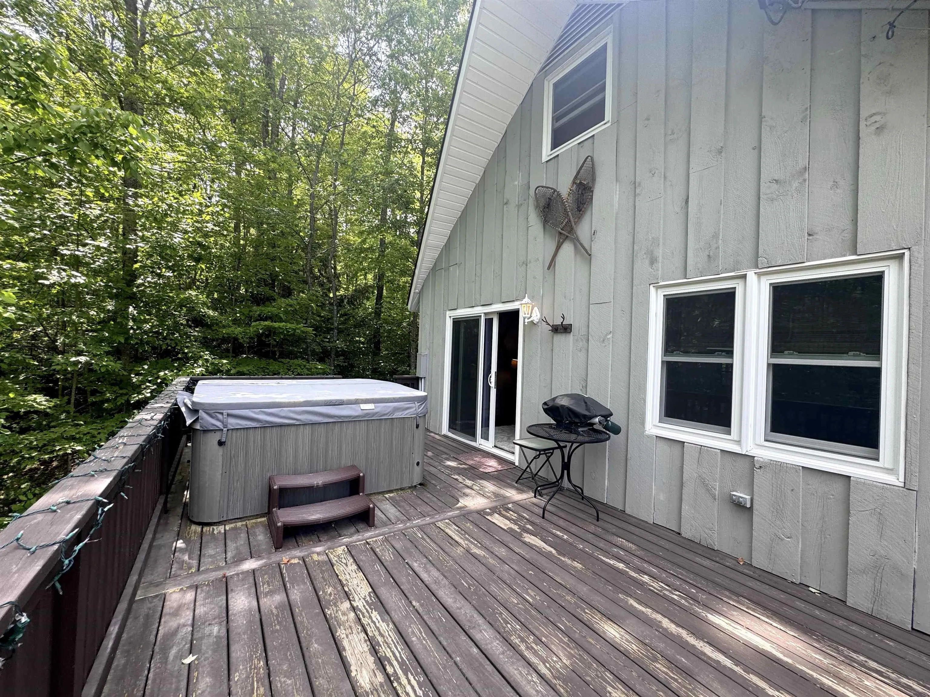 +"PublicRemarks": "Tucked among the trees and just minutes from skiing, golf, and year-round adventure, this classic Vermont chalet offers comfort, character, and flexibility—whether you're looking for a weekend getaway or your full-time home. A charming stone wall and sturdy stone steps lead up to the house, adding character and a warm Vermont welcome. The lower level offers space to take off your ski gear and unwind—complete with gear hooks, a comfy sectional, direct outdoor access, and two cozy bedrooms, making it the perfect hangout zone after a day of adventure. Upstairs, the warm, wood-accented living area invites you to unwind after a day on the slopes, with rustic beams and a sliding glass door that opens to a spacious deck and hot tub. The open-concept kitchen and dining area are perfect for gathering, with stainless appliances, natural wood cabinetry, and a built-in pantry that keeps everything organized and within reach.The second level completes the home with two cozy bedrooms under charming sloped ceilings. Set on a private lot with a welcoming stone entry and surrounded by nature, this home captures the best of Vermont’s laid-back lifestyle."