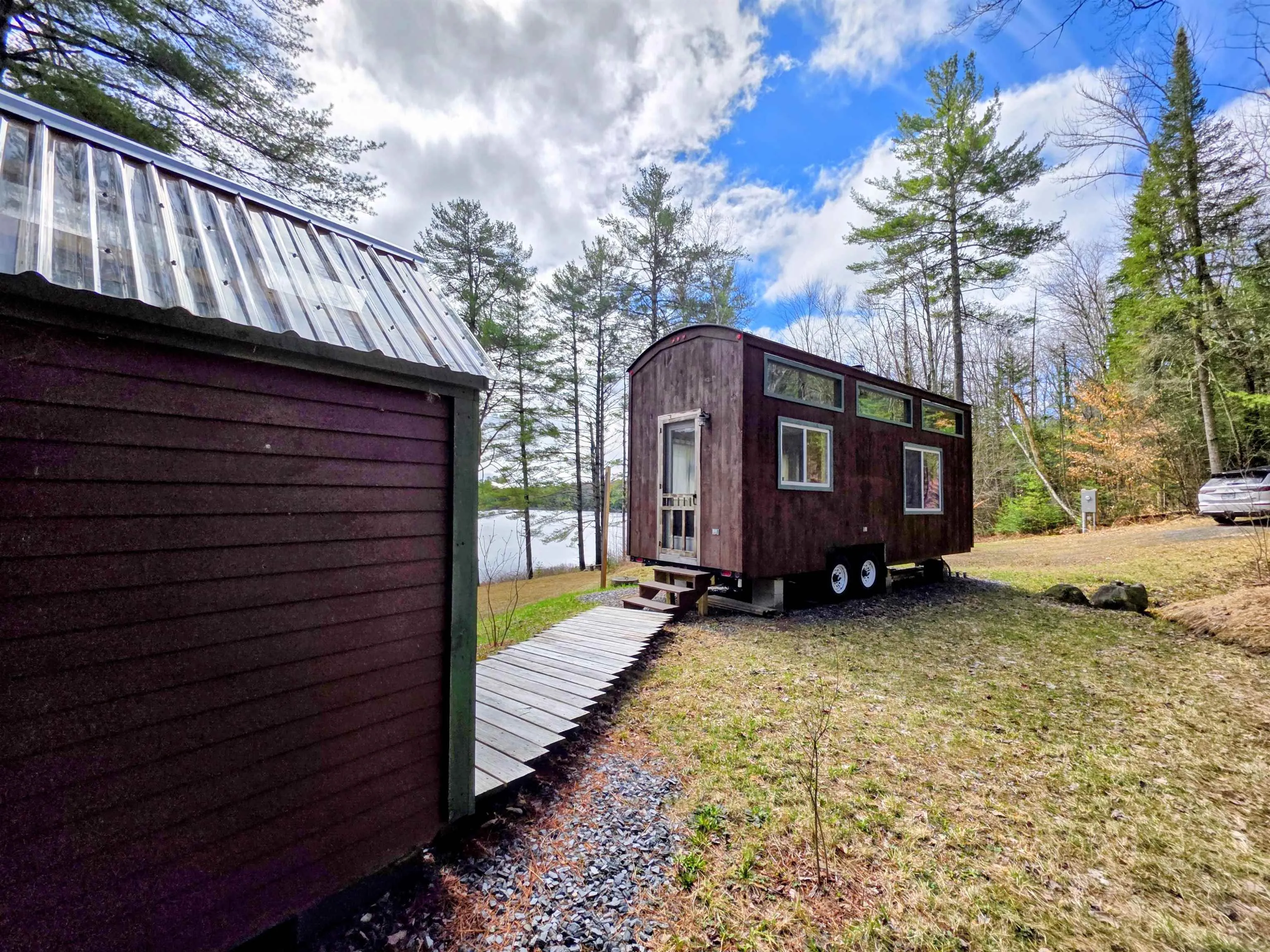 +"Remarks-Public": "Set along the peaceful shores of Round Pond in Newbury, Vermont, this one-of-a-kind retreat tells a story of creativity, intention, and connection to nature. Thoughtfully transformed over time, the property invites you to slow down and experience life differently. Perched on a gentle knoll with unobstructed views of the pond and the landscape beyond, the custom-built tiny mobile home is perfectly positioned to take in the natural beauty while trees to the rear and side provide a sense of privacy and seclusion. Inside, a warm and inviting space awaits, complete with a woodstove, loft sleeping area, and large windows that frame the surroundings like living artwork. Just steps away, the shoreline draws you in with a private firepit and a charming screened bunkhouse positioned to capture tranquil water views and the gentle rhythm of the pond. The original shed has been beautifully renovated into a cozy bunkhouse, providing additional sleeping or creative space, while a carefully designed outhouse with composting toilet adds both function and unexpected comfort. Power has been brought to the property and the driveway has been improved for easier access. A dug well exists on site but is not currently connected or in use. Days here unfold naturally, with loons calling across the water, turtles basking along the shoreline, and the quiet presence of kayaks gliding by. Two kayaks will convey with the property, making it easy to explore the pond from the moment you arrive. Whether seeking a seasonal getaway, an artist’s retreat, or a unique waterfront escape, this property offers an experience as much as a place."