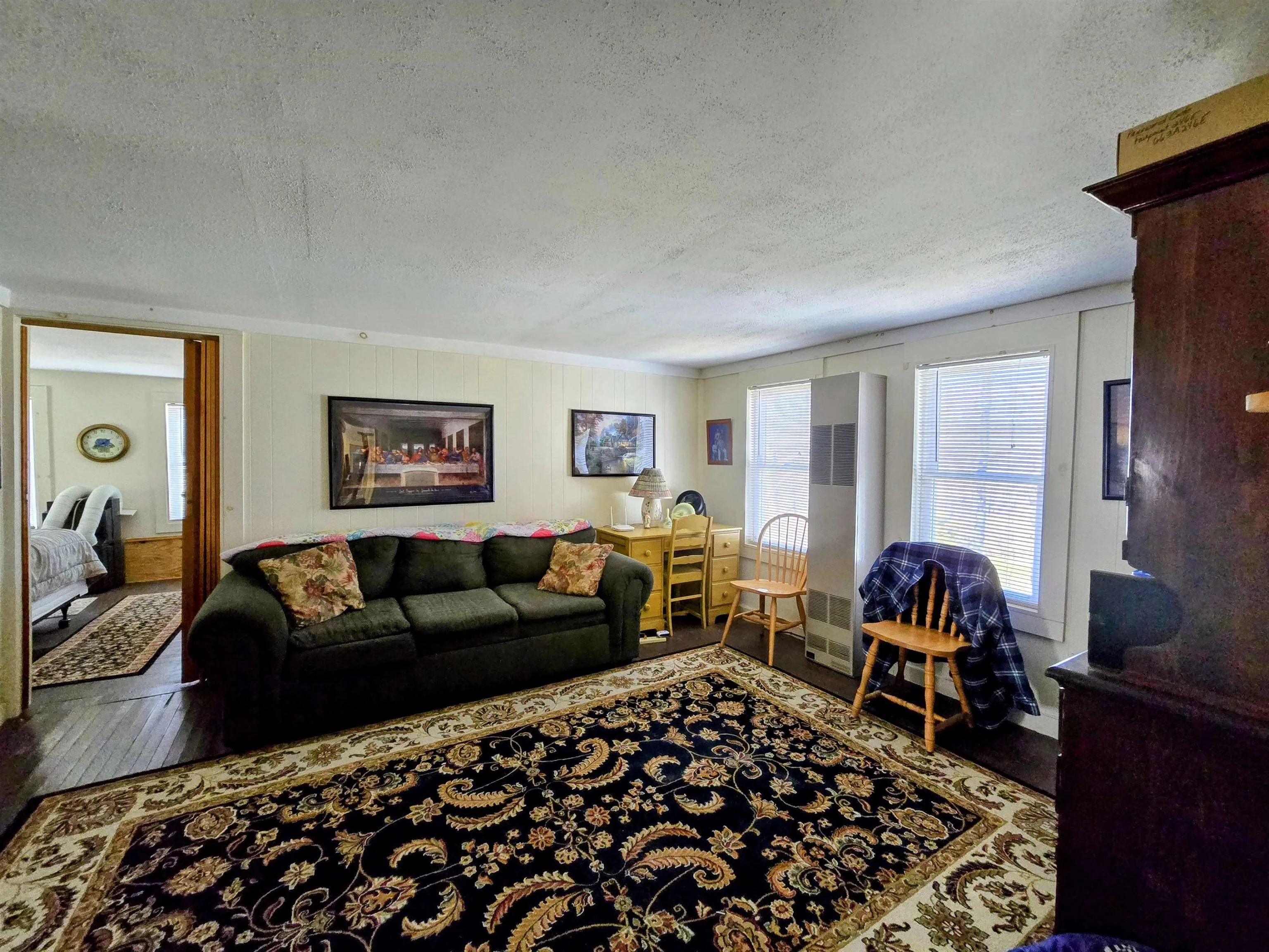 +"PublicRemarks": "Classic 1792 farmhouse set on a beautiful open parcel with long-range views and timeless Vermont character. This well-cared-for home blends historic charm with everyday livability, featuring wide plank flooring, exposed beams, and inviting living spaces filled with natural light. The spacious country kitchen flows easily to the dining and living areas, making it ideal for both daily living and entertaining. A welcoming covered porch overlooks the lawn and surrounding countryside, offering the perfect spot to relax and take in the setting. The home includes multiple bedrooms and flexible space for a home office or guests. Attached garage and additional outbuilding provide excellent storage and utility. The land offers a mix of open lawn and field, ideal for gardening, recreation, or simply enjoying the privacy and views. Conveniently located with an easy drive to nearby towns, yet offering a true country feel. A rare opportunity to own a piece of Vermont history with space, setting, and potential."