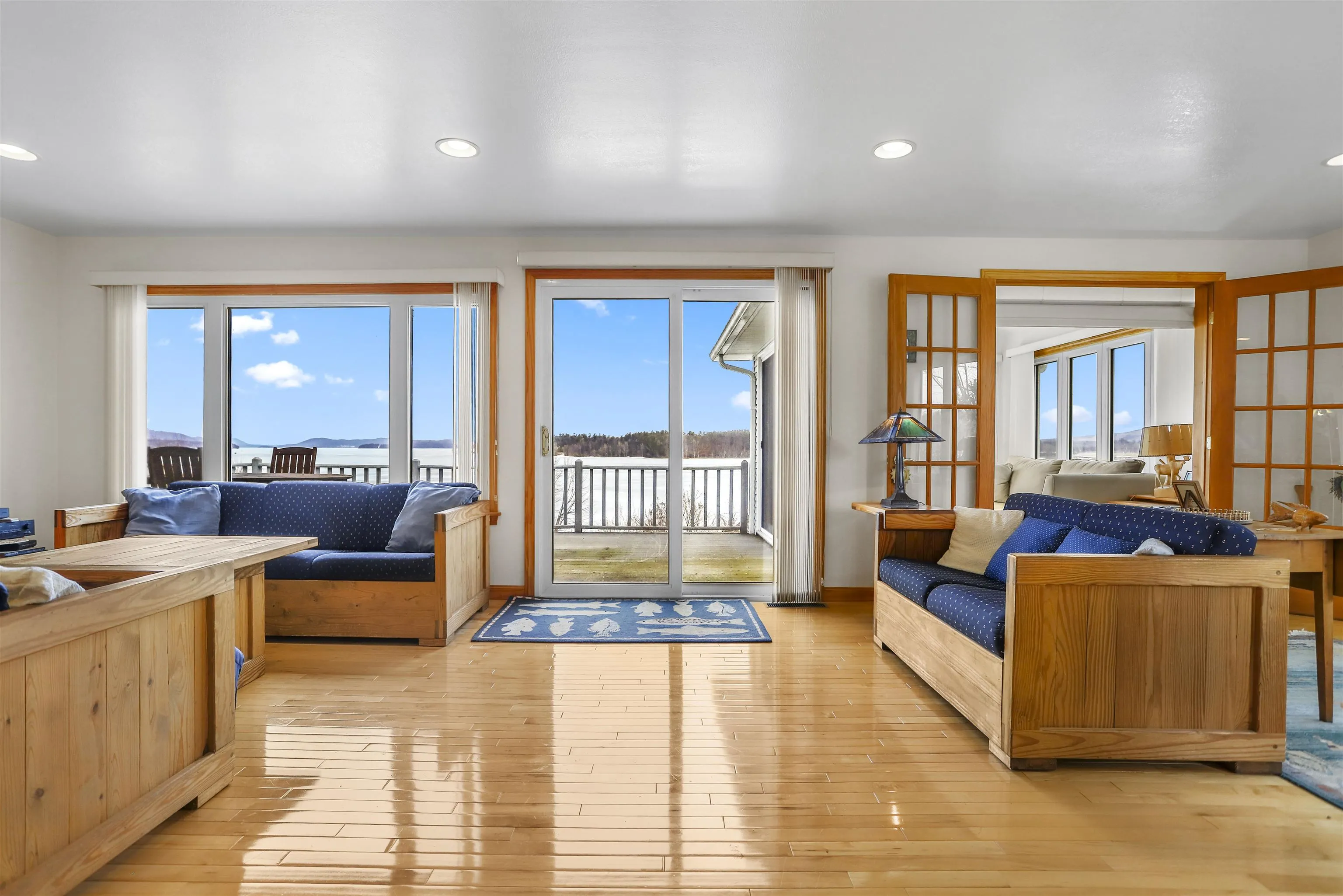 +"PublicRemarks": "Year round home with amazing panoramic views of Lake Memphremagog, mountain ranges and long into Canada. This Ranch-style home was constructed in 1966 and was extensively renovated in 1999/2000. The sellers are offering this property as mostly furnished to include the 30’ aluminum dock (furnishings list available). All situated on a spacious .56 acre triple lot with the railroad owning the water-frontage and many owners on the street accessing the lake & docks through this land with no deeded rights/access to such. This home features a large open floor plan, lovely lake views from most every room and access via 3 sliders to the over-sized composite deck (12’x34’). The impressive main level offers birch hardwood floors, an eat-in kitchen, bright living/dining areas, sunroom, front entry, 2 bedrooms to include the primary en-suite, an additional full bath, mudroom and a 2-car attached garage. The walkout lower level also offers exceptional lake views and is comprised of a family room, guest room/office, ¾ bath with laundry, utility/storage area and direct access to the covered patio. Detached shed, spacious lawn area with numerous fruit trees and even an outdoor shower. Serviced by public water & sewer, oil heat, central AC and high-speed Xfinity internet/cable. Quiet neighborhood setting within walking distance from downtown Newport and the nearby Newport Marina. You will surely enjoy the stunning sunsets and all that this property has to offer!"