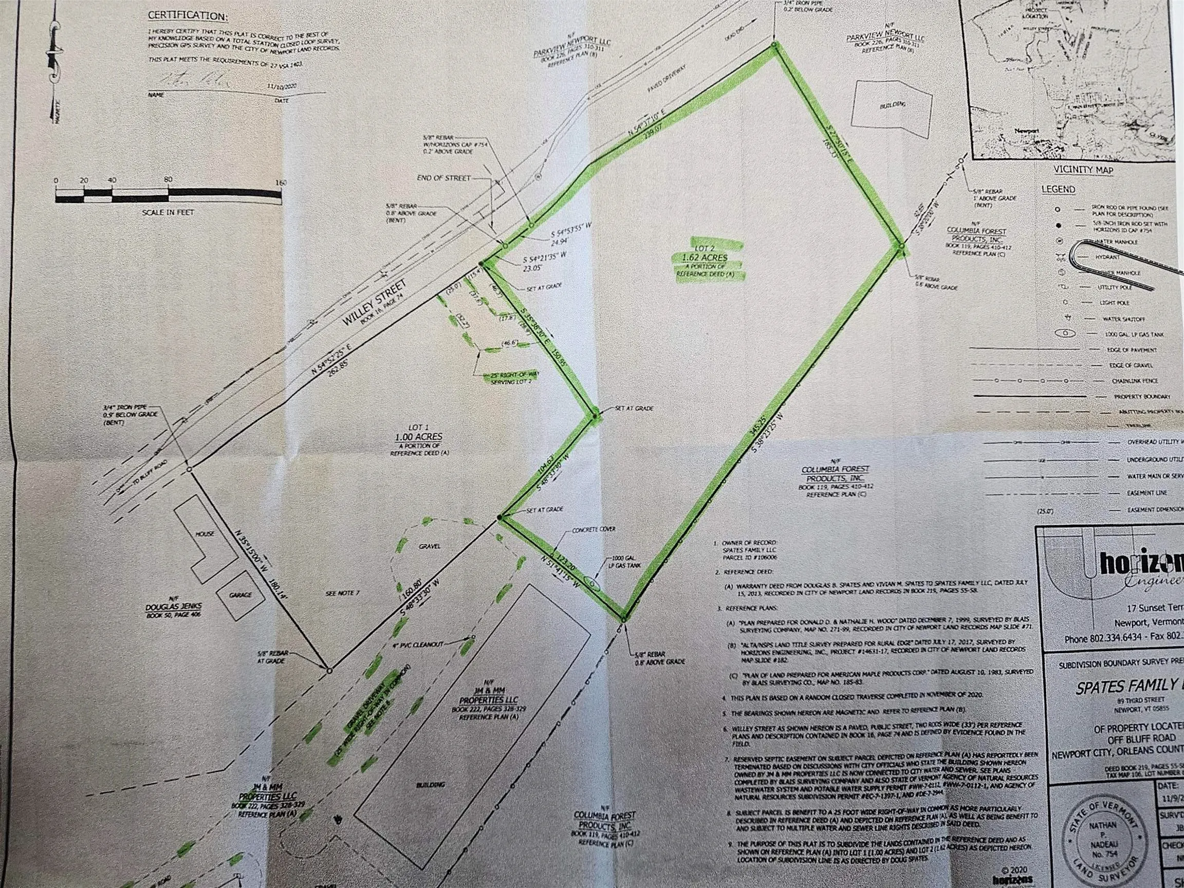 +"Remarks - Public": "Large 1.62 acre lot in in Newport City, zoned Industrial District “IND”. Vacant land with mostly open area and wooded boundaries. Zoning allows for the establishment of manufacturing employment opportunities in the community with a lengthy list of permitted uses to include office buildings, manufacturing, warehouse, contractor’s yard, etc. This property has a private end of road setting with right of way access off from Willey Street and/or from Bluff Road. City water/sewer and power available nearby for connection. This is a convenient location in town with several professional neighboring businesses in a small commercial park type setting."