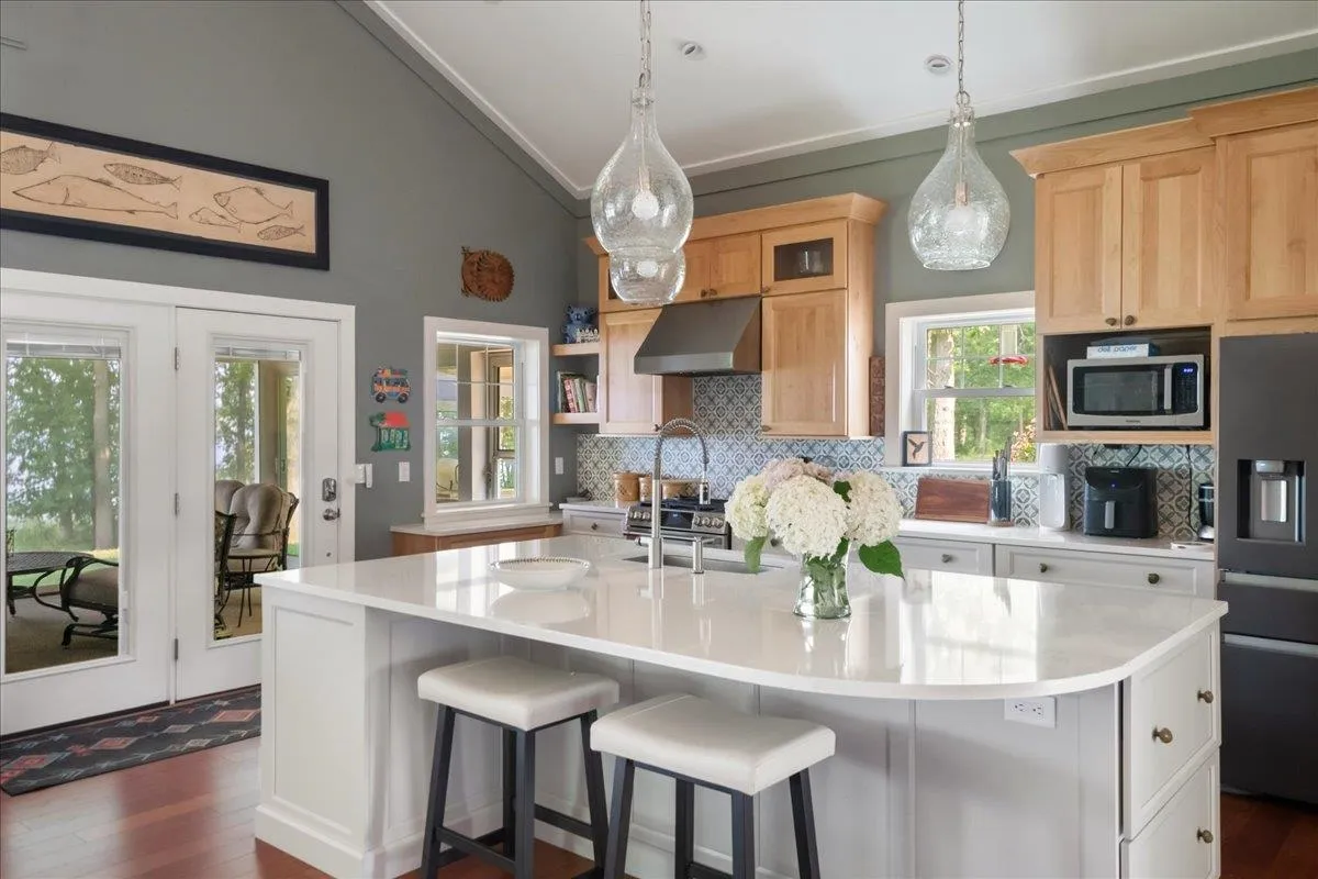 +"PublicRemarks": "This thoughtfully updated home offers both style and modern comfort, with extensive renovations throughout. This property presents a unique opportunity to create a multi-generational estate or fantastic guest retreat. The existing home was meticulously renovated both inside and out in 2021 and 2022. The adjacent building lot has a wastewater design in place for a four-bedroom residence. The homes would be separated by a gracious lawn, allowing for both proximity and privacy. The house and buildable lot offer 620’ of lake frontage down a gradual slope, a rare feature you won’t find at every waterfront home. The property also includes a secluded trail to an additional 217’ of private waterfront on Squires Bay—ideal for peaceful summer walks or winter cross-country skiing. Enjoy the cozy warmth of radiant heat on both floors and central air conditioning for year-round climate control. Comfort is further enhanced by a woodstove with custom-built stone fireplace. Recent improvements include a fully renovated kitchen and living room, improvements to allow for fully wheelchair accessible living on the first floor, the addition of a versatile screened porch, solar panels, Hardie siding, as well as an outdoor cooking area and outdoor shower. A room has also been finished above the garage, providing the perfect setting for a quiet home office or craft room. This is a home where smart updates meet quality craftsmanship - move-in ready and built for everyday ease."
