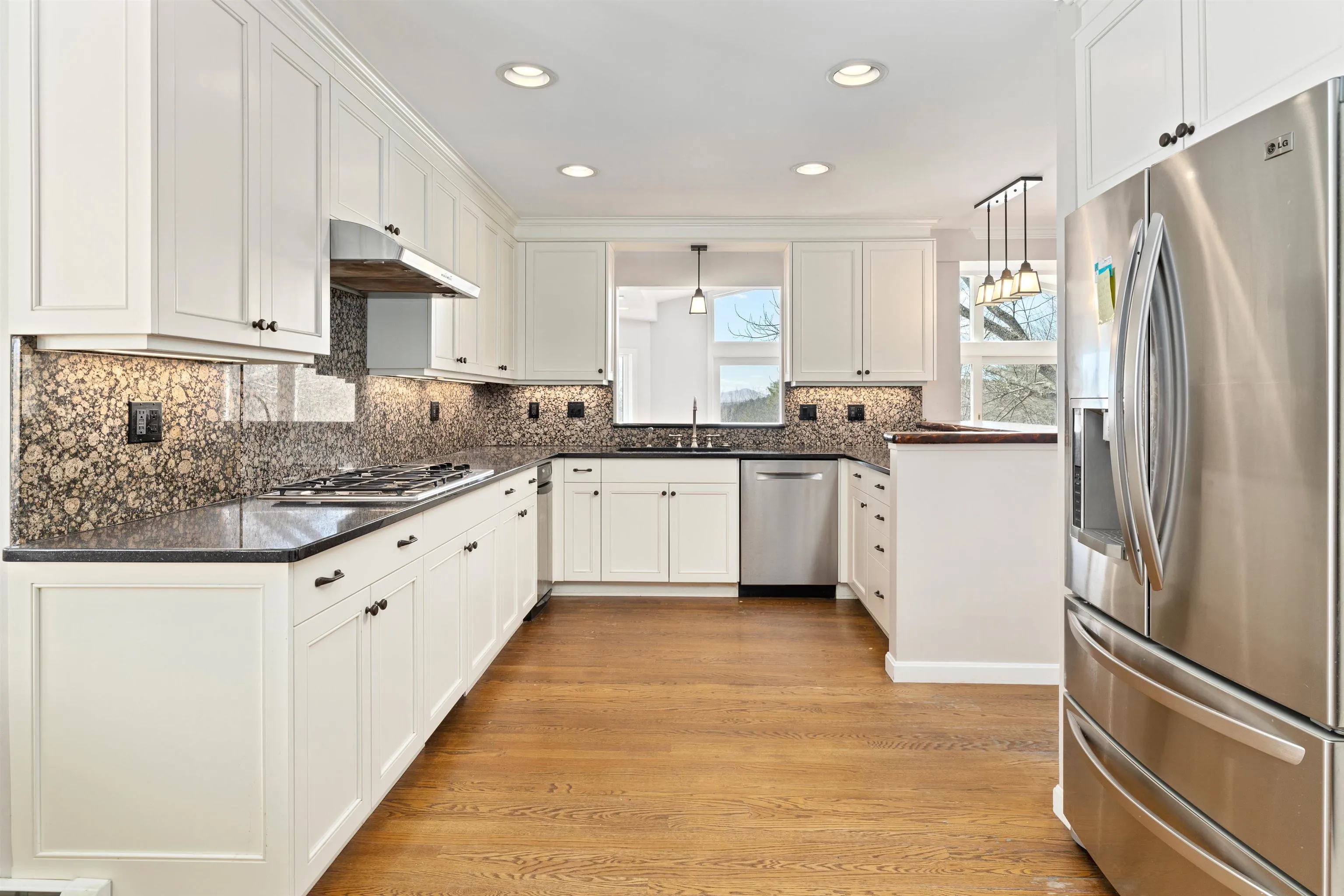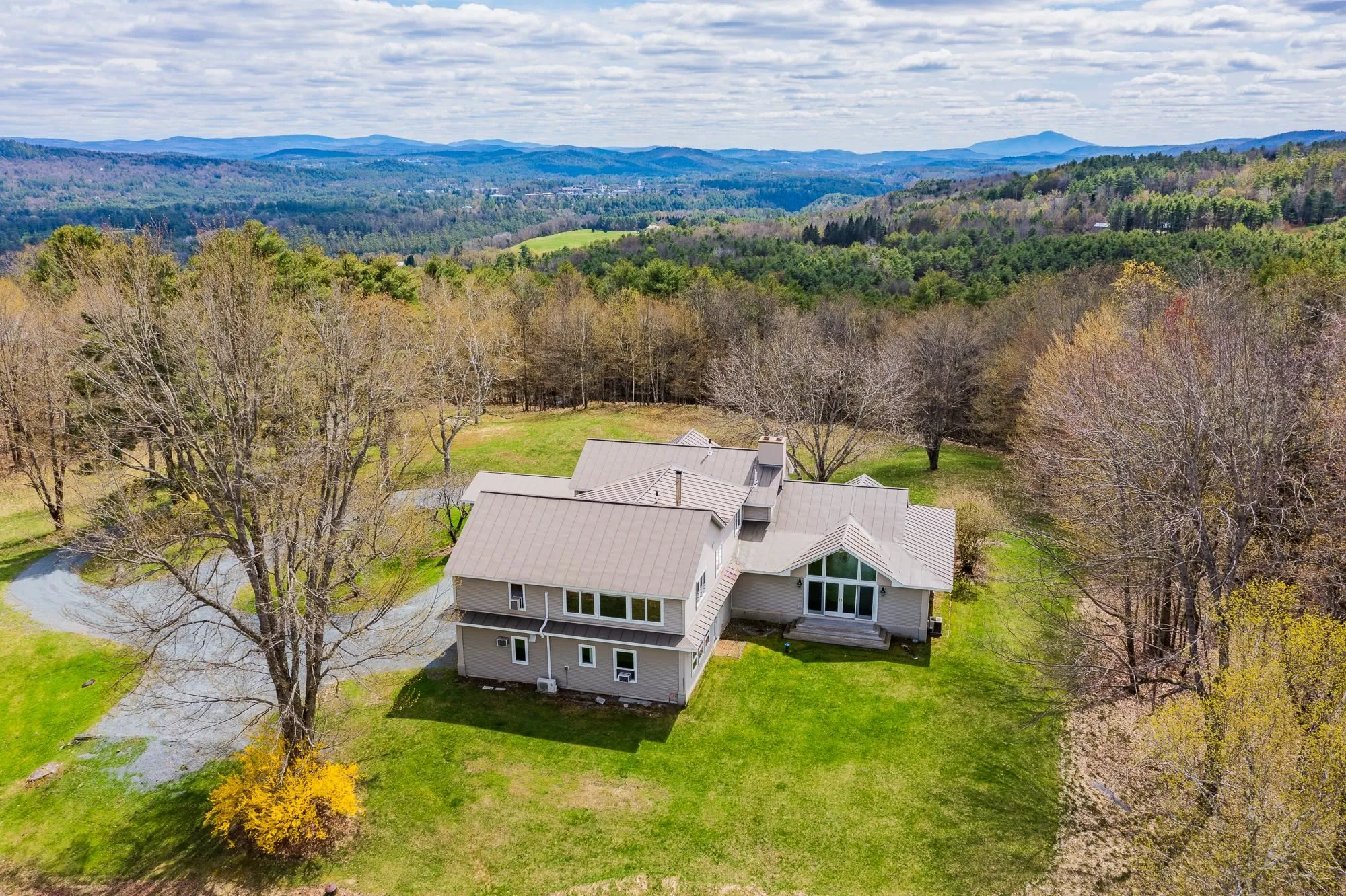 +"PublicRemarks": "Stunning Norwich contemporary on 10 acres with views of Ascutney! Minutes from downtown, yet peaceful and private, this property has so much to offer. Four bedrooms, 3.5 bathrooms - first floor bedroom suite option, upstairs primary suite with walk in closet and office, two additional bedrooms with full bathroom, and lovely library with built-ins. Elegant and spacious living spaces downstairs - fireplaces, large windows, vaulted ceilings, updated kitchen and great sun exposure throughout! Decks and gardens facing the mountain view!"