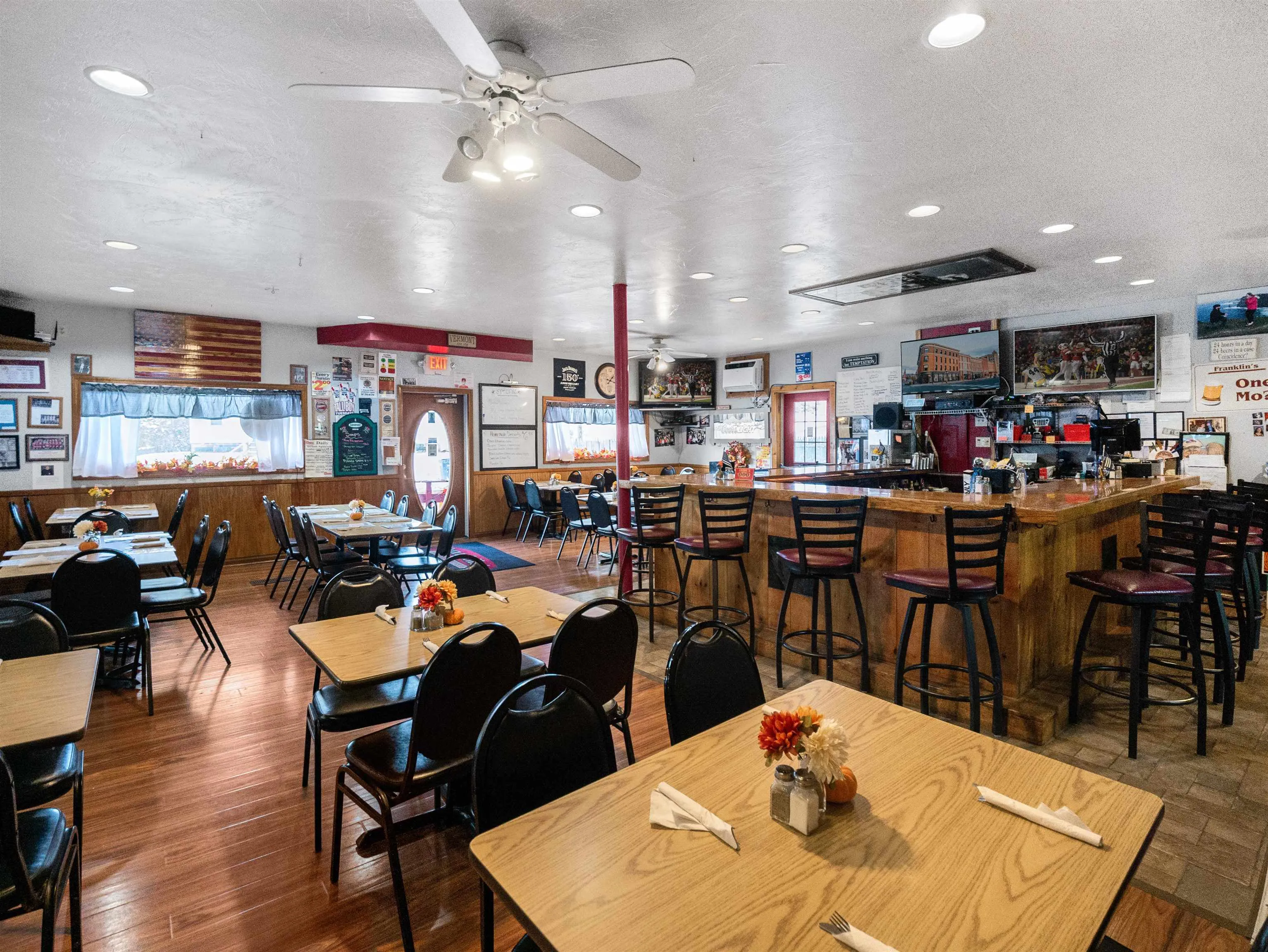 +"PublicRemarks": "Franklin’s Restaurant has been a generational gathering place in the historic town of Proctor, attracting a loyal local following with its small town warmth and welcoming atmosphere reminiscent of a certain popular TV show. Anchoring an important part of the town’s social life, the almost 4000 square foot building, complete with two income producing apartments, sits on a 16.78 Acres of land constituting two separate parcels: 5.66 of which host the restaurant/multi-family business, and 11.12-Acres which include the historic Sutherland Falls Quarry, whose unique beauty opens the door to several other income possibilities (such as expanded outdoor catering capabilities and residential development/subdivision). The Restaurant and Multi-family building are available with just the 5.66 acres alone for $499,000, found at MLS#5030231. The Restaurant itself, with innumerable upgrades (list found separately) seats 72 people plus outdoor seating and is a complete and functioning turnkey operation with a loyal staff, convivial atmosphere, wood floors, pool table, attractive bar and state of the art kitchen. Inventory and all furnishings are included in the transfer. Come inspect this promising opportunity today!"