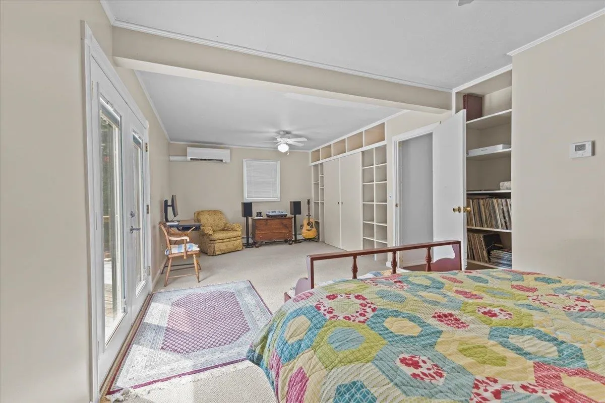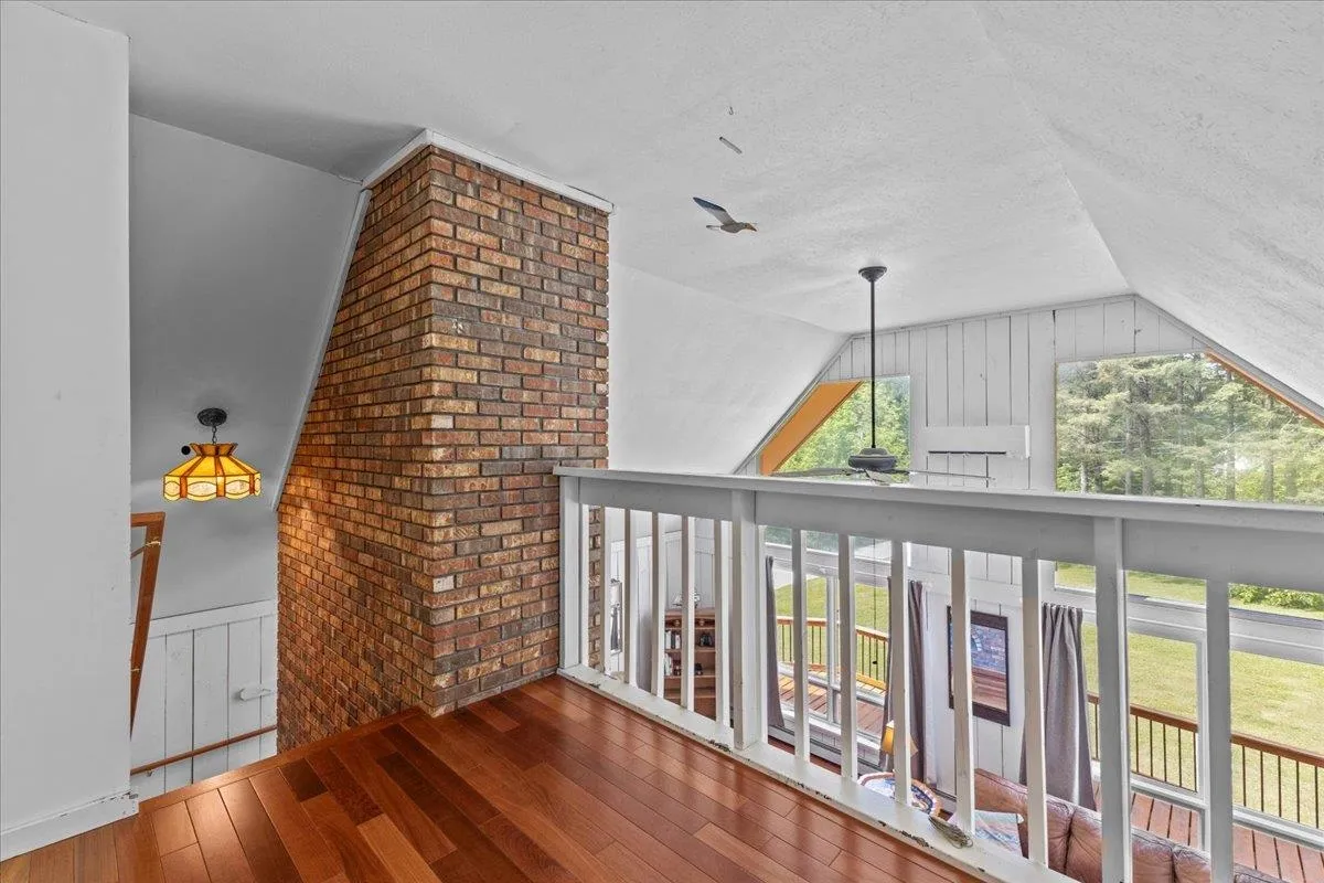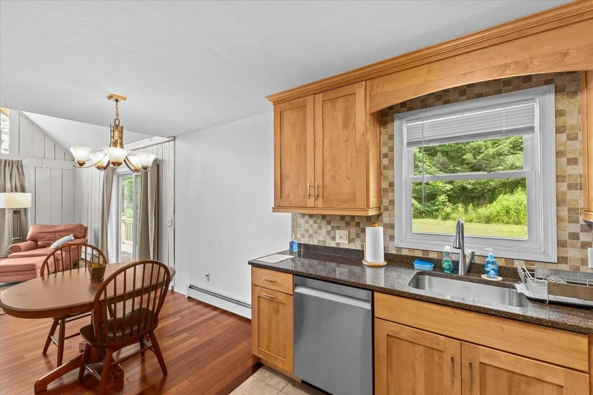 +"PublicRemarks": "This classic Richmond A-frame home is situated on a 1.27 acre private lot that has been meticulously manicured and pruned making for a phenomenal tranquil retreat just minutes from all that the town and area has to offer. This home has a unique floor plan giving it a one of kind charm. As you enter from the large wrap-around deck, you are greeted with a large open living space with gorgeous cherry hardwood floors, tall vaulted ceilings, Mitsubishi heat pump for heating and cooling, and a wall of windows giving the home tremendous natural light. Just off the living area is the home's upgraded kitchen featuring granite counters, custom cabinets, six burner stainless steel stove and tiled floor. Just off the kitchen is the first floor's remodeled full bath featuring tiled shower, tiled walls and a soaking tub. Towards the back of the first floor is the primary bedroom area which has another heat pump for heating and cooling and a slider leading to the back of the wrap-around deck and overlooking the home's great backyard. The second floor features en-suite bedroom with cherry hardwood floors and 3/4 bath and just outside the bedroom is an extra lofted living space. This space is great as it is but for those looking for more space, it has great potential to expand the living space. The true gem of the home is outside. The wrap around porch looks out over three separate yard areas providing tons of opportunities to enjoy the outdoors. This home is a great find and a must see."