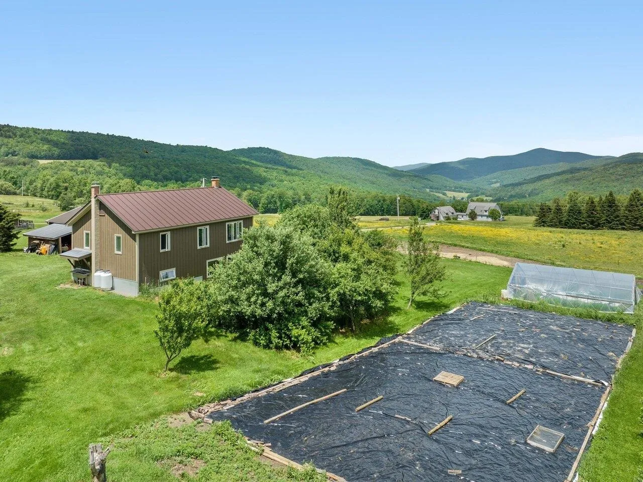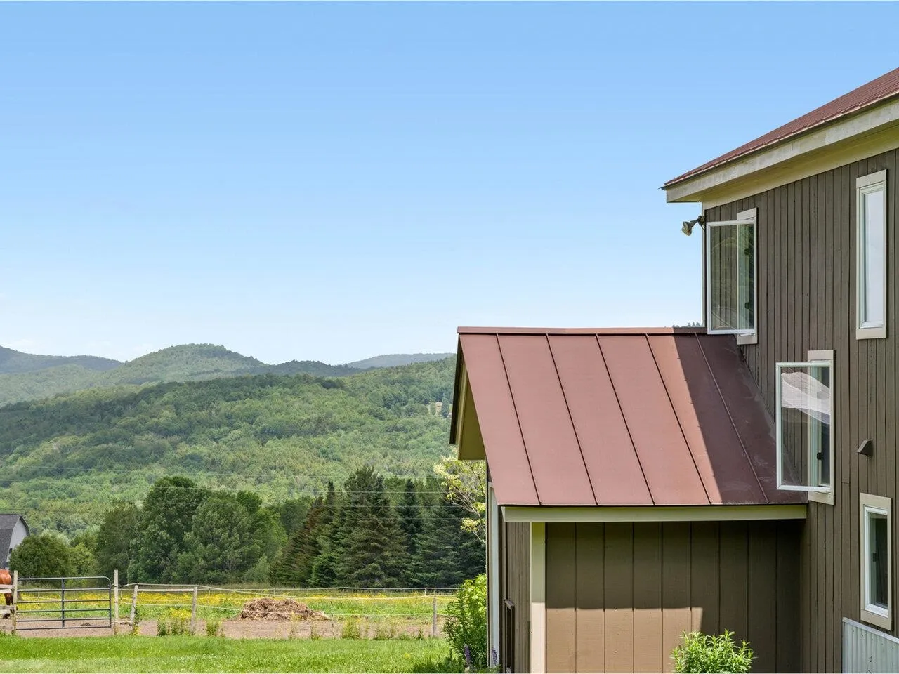 +"PublicRemarks": "Sunny updated home with soaring mountain views and everything you need for the homesteading lifestyle! 10.8 beautiful acres with fenced pastures, track system for horses, 2-stall barn with spacious hay loft, 10' x 20' goat shed, greenhouse, sugarhouse, and 2-car garage w/ tractor lean-to, workshop, and storage. The house itself shines with attractive modern design. Mudroom entry for all your gear. Sun-drenched open kitchen/living/dining area enjoys stunning views of the distant mountains and valleys. The updated kitchen boasts four ovens and custom cabinetry with clever pantry space. The open living area features a wood stove and access to the front deck to enjoy the spectacular scenery and cool breezes. A Harman pellet stove also supplements the propane fired boiler. Two updated baths and 3 roomy bedrooms. Walkout family room on the first level features new flooring. Fresh exterior paint job and standing seam metal roof. Verdant vegetable garden beds, berry bushes, and fruit trees. Established perennial beds complete the thoughtful landscaping. Walking trails in the woods and the VAST trails are just down the road. Easy drive to 1-89, Norwich University, and downtown Northfield."