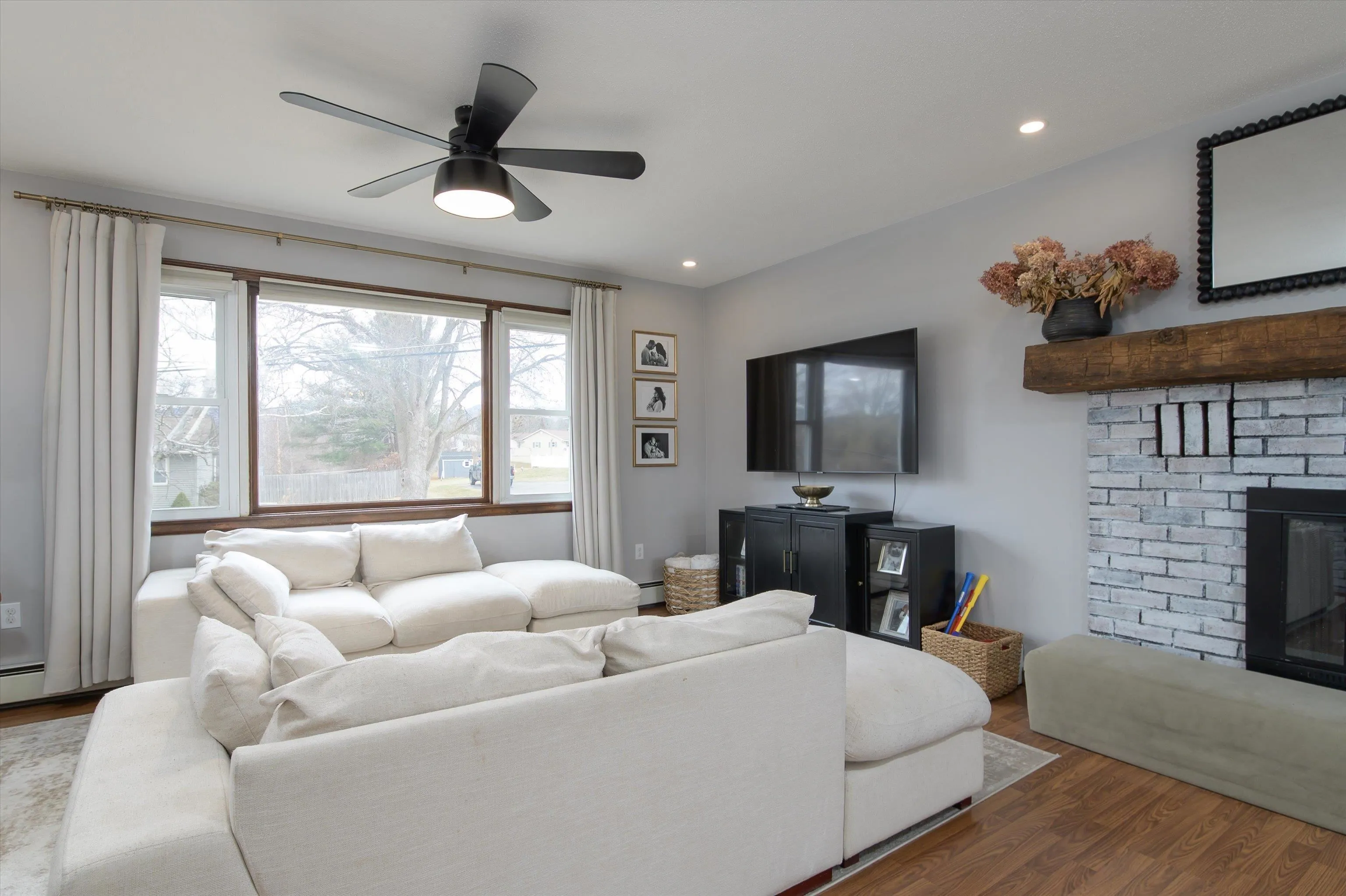 +"PublicRemarks": "Personality and character welcome you the moment you enter this sweet well-maintained Cape! The bright living room features a picture window, wall sconces, a gas fireplace and attractive built in bookshelves. A cozy den, also with built ins, offers an ideal space to relax, read a book or watch your favorite program. The eat in kitchen provides multiple storage cabinets, updated countertops, and engineered flooring. One bedroom and a full bath are on the 1st floor, while the 2nd floor offers two generous sized bedrooms and a half bath. Nostalgic glass doorknobs and natural wood paneling add to this home’s warm feeling. Hardwood flooring flows through the living room, den and 1st floor bedroom. The full basement provides abundant storage space and laundry facilities with washer and dryer. A large deck overlooks a backyard with lovely perennials just waiting to pop for spring! A convenient garden/tool shed is tucked within the fenced yard. Numerous improvements include a gas fireplace 2015, kitchen renovation 2016, 1st floor bathroom renovation 2017, new living room picture window and front door 2024, front roof re-shingled 2025, new carpeting 2025, new dehumidifier 2025. Drainage system w/new sump pump installed by Northern Basement Systems in back corner of basement 2025. New gutters within past 6 years. Close by are the bus line and I-89 for easy commuting. Richards Park and Gilbrook Nature Area nearby; Winooski’s River Walk, farmers’ market, shops & restaurants minutes away. Some rooms irregular. All dimensions approx."