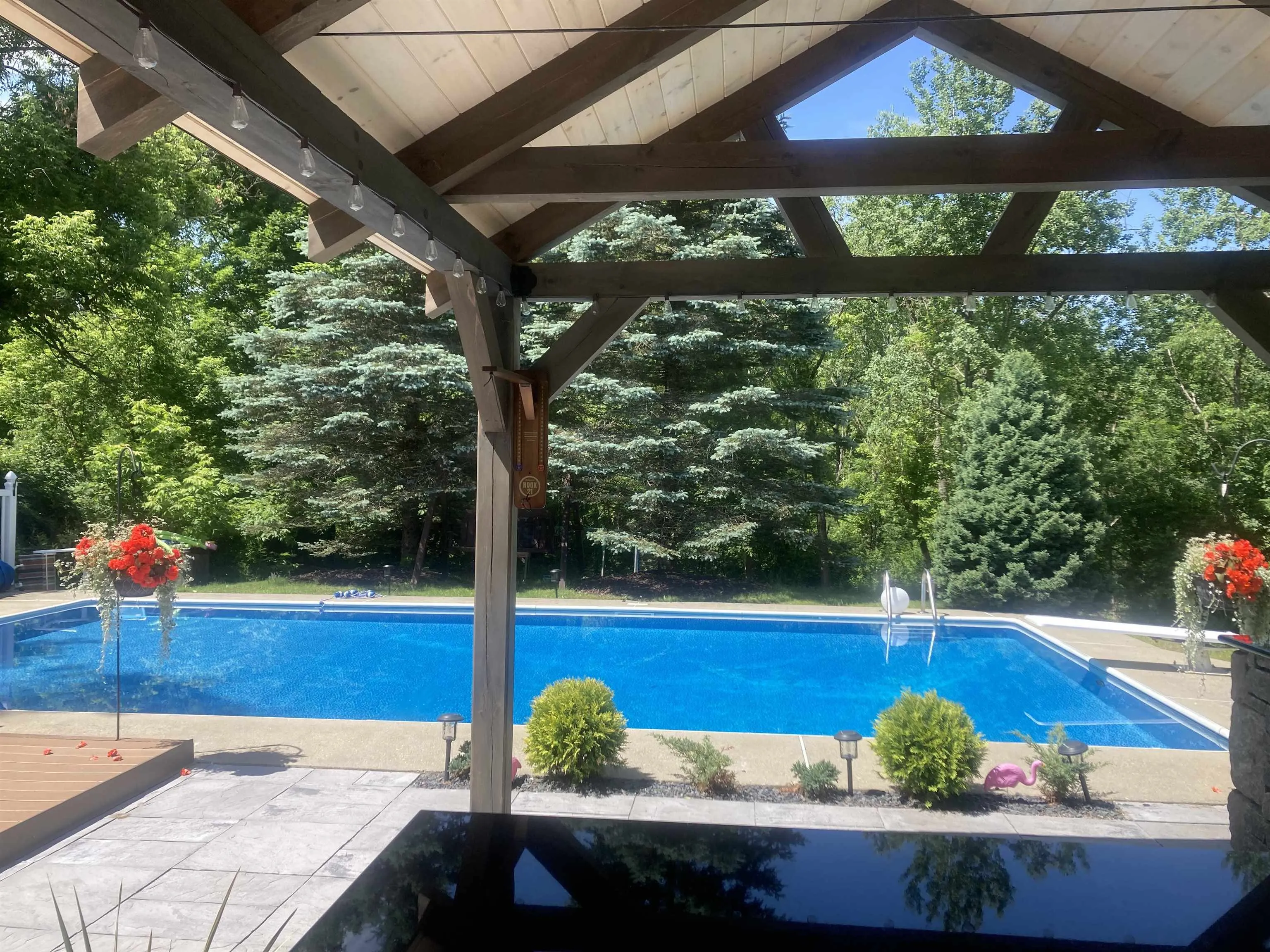 +"PublicRemarks": "HUGE PRICE REDUCTION! Welcome to this exceptional 3 BR, 2B residence with nearly 3000 sq ft of thoughtfully designed living space. An entertainer's paradise delivers the rare combination of single-level convenience and resort-style amenities that will make every day feel like a vacation. The heart of this home showcases a custom kitchen featuring elegant cherry cupboards and gleaming granite countertops, perfect for culinary adventures. Soaring 11.5-foot ceilings in the massive sunroom flood the interior with natural light, creating an atmosphere of openness and grandeur that's simply breathtaking. Oversized private primary bedroom with laundry area. Step outside and prepare to be amazed. The outdoor living spaces rival any upscale retreat, featuring an inground pool, a dedicated pool house, and a charming gazebo for lazy afternoon relaxation. Host unforgettable gatherings at the pavilion complete with an outdoor kitchen, gather around the firepit under starlit Vermont skies, or challenge friends to a match on the volleyball court. The generous guest suite offers flexibility for extended family, guests or an amazing home office. 3-car garage which provides ample workspace and a huge unfinished space above the garage. The location proves equally impressive, with convenient access to shopping, medical facilities, and outdoor recreation. Close proximity to world-renowned Killington Ski Area and picturesque Lake Bomoseen."